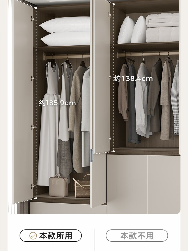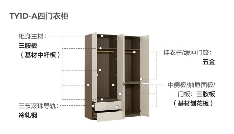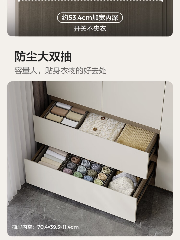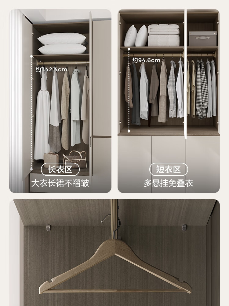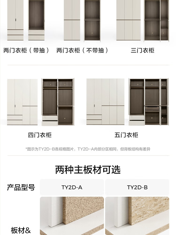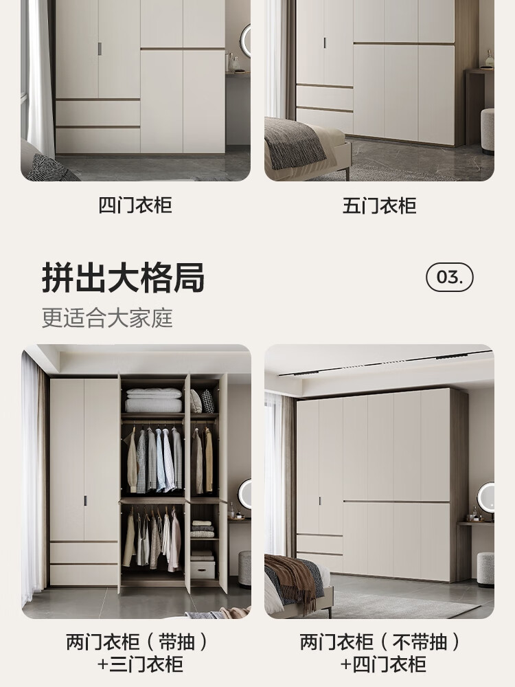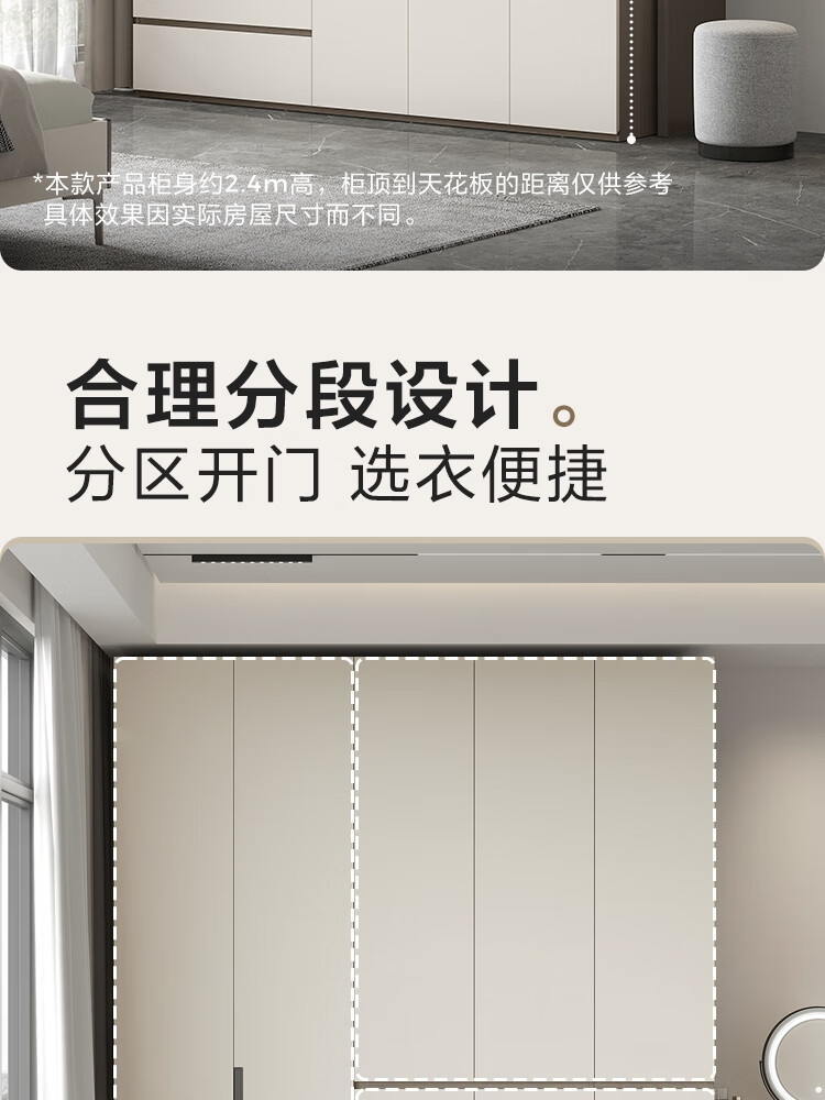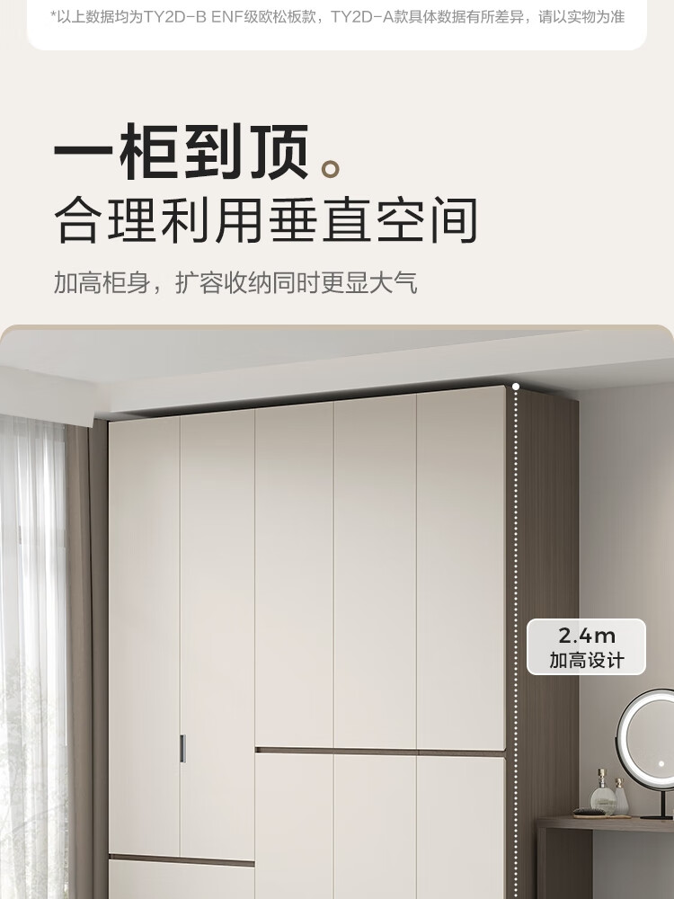 Lin's Home Finished Wardrobe Bedroom Household Cabinet Segmented ENF Level Optional Storage Cabinet Wardrobe Storage Cabinet TY2D 1.59*2.4m|ENF Level Main Material|Double Drawing Four Doors