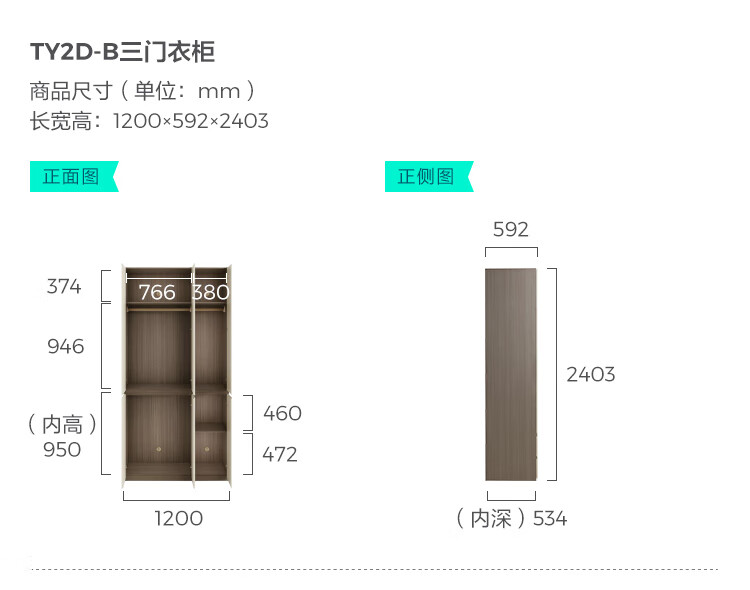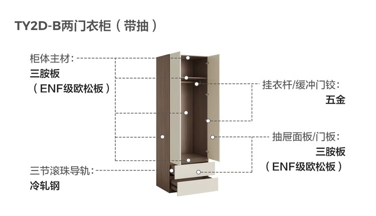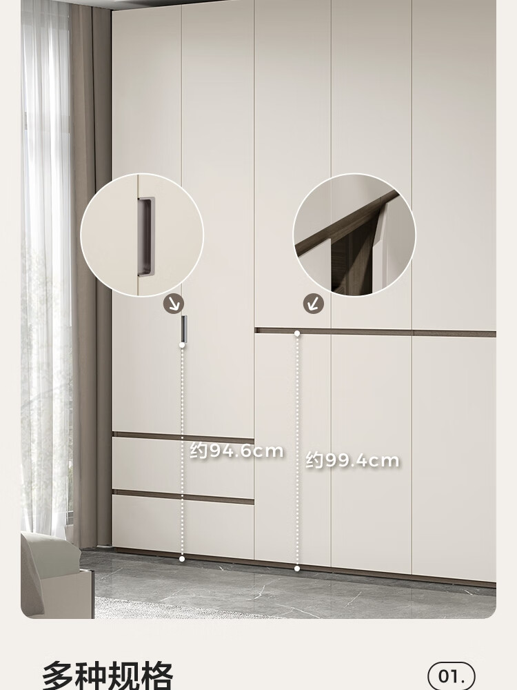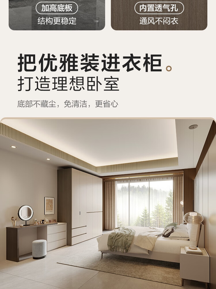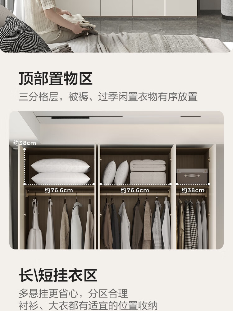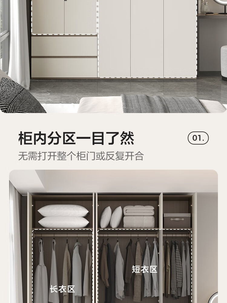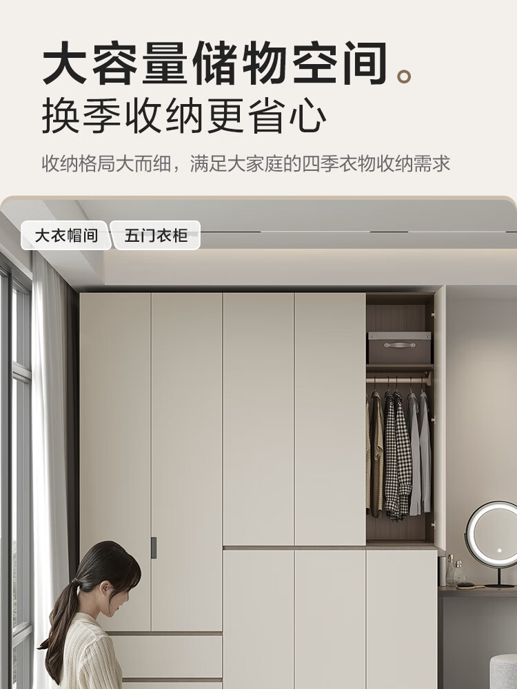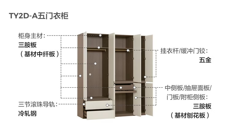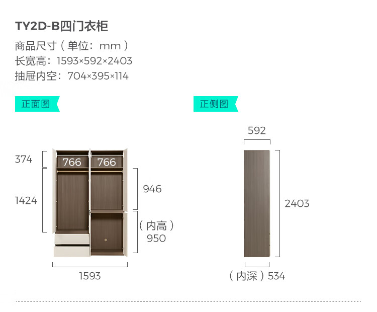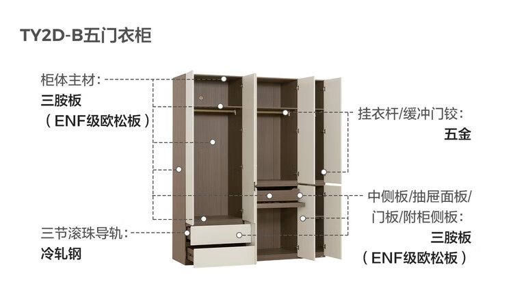 Lin's Home Finished Wardrobe Bedroom Household Cabinet Segmented ENF Level Optional Storage Cabinet Wardrobe Storage Cabinet TY2D 1.59*2.4m|ENF Level Main Material|Double Drawing Four Doors