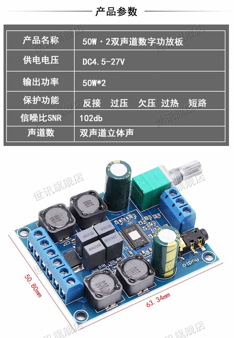 High power digital power amplifier board TPA3116D2 audio amplifier module dual channel 2*50W 5V/12V/24V
