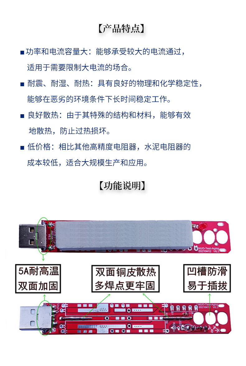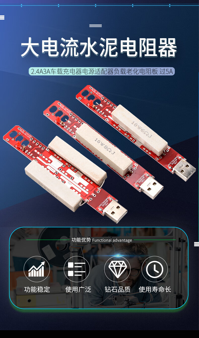 USB high current cement resistor 2.4A3A car charger power adapter load aging resistance board 9V2.2A (without fast charge) no specifications