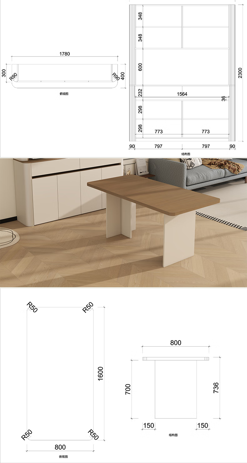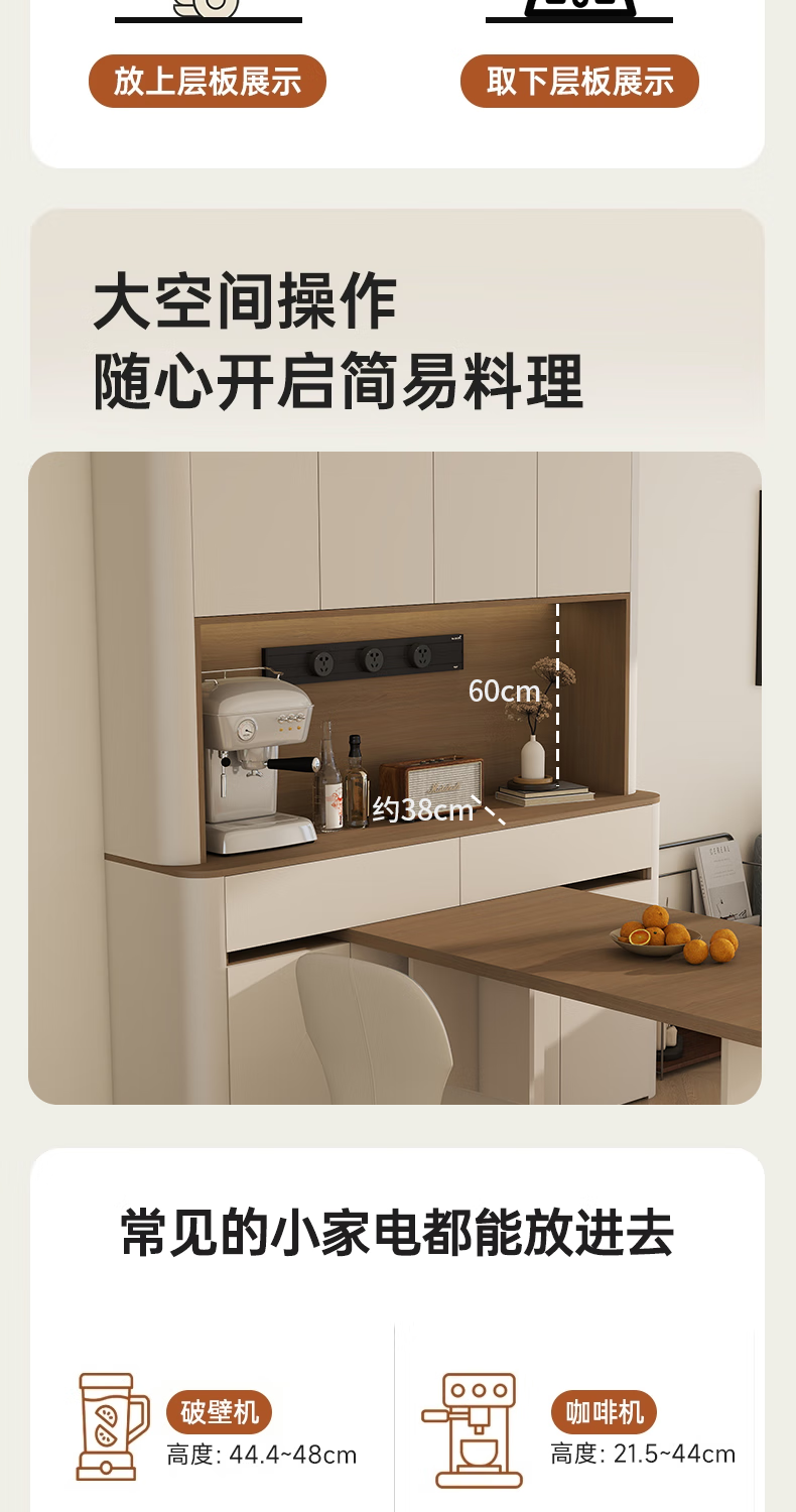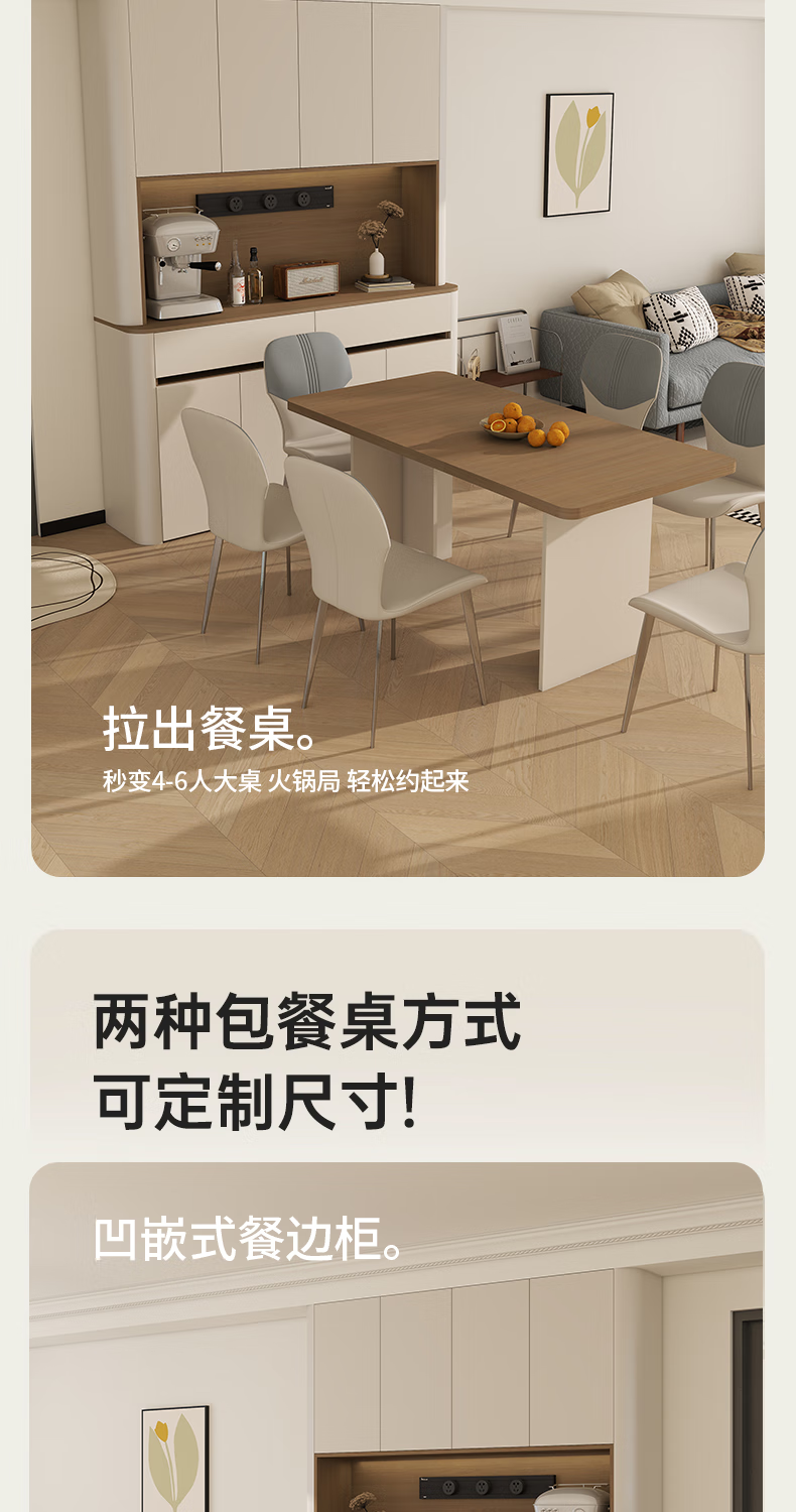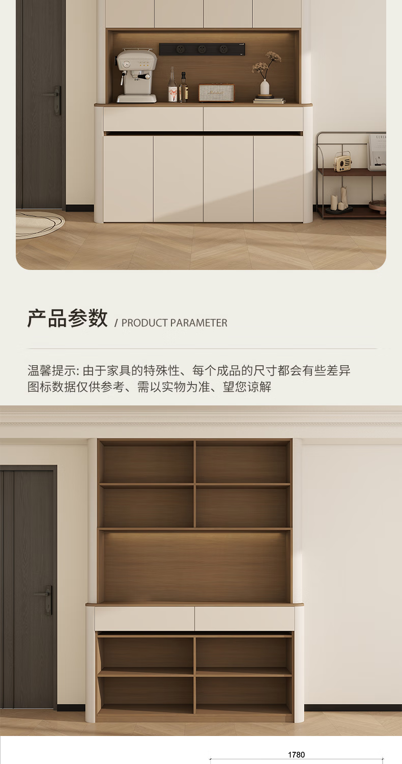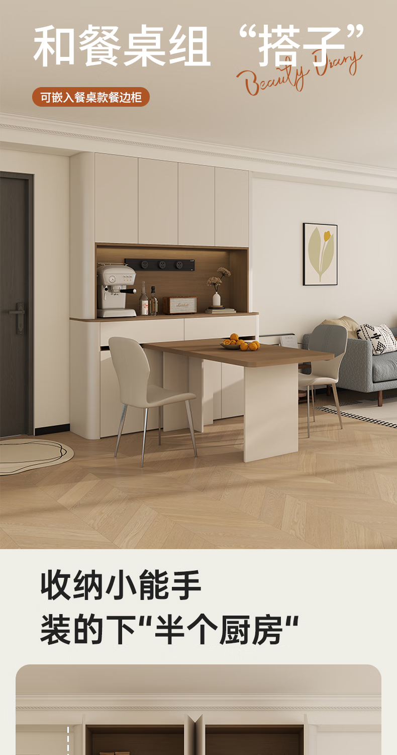 Luozhu Xiaoju solid wood retro-style sideboard can be embedded into the dining table and wall-mounted living room home storage cabinet side table storage cabinet A) Length 138 Height 95/Cream White + Indy Walnut
