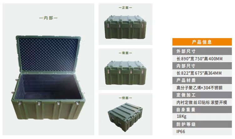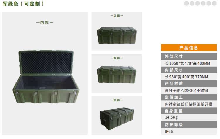 Rotational molding box emergency supply box outdoor waterproof airdrop box transport box equipment box storage box military green (400*300*250) M suitcase