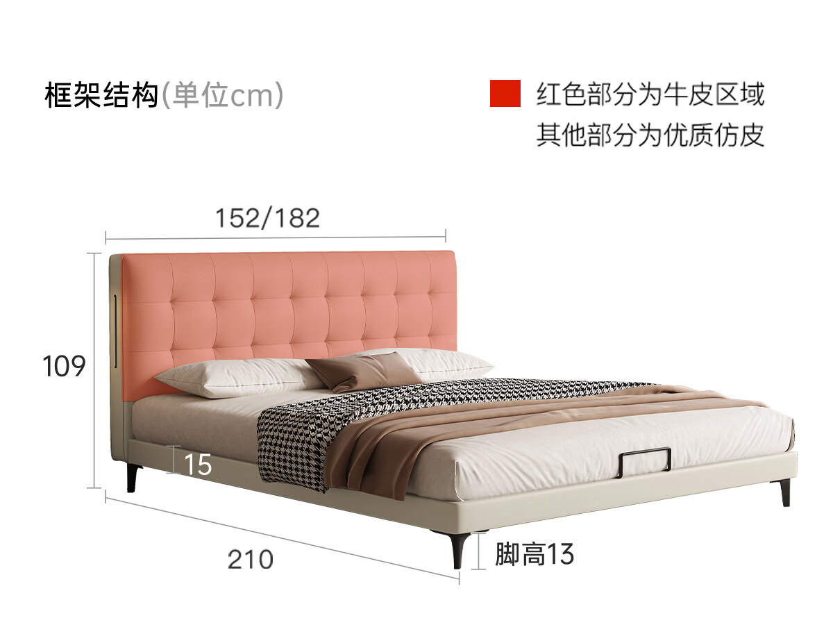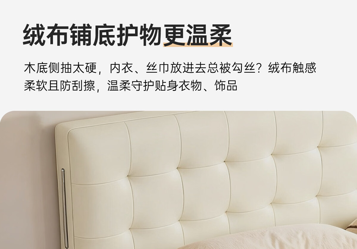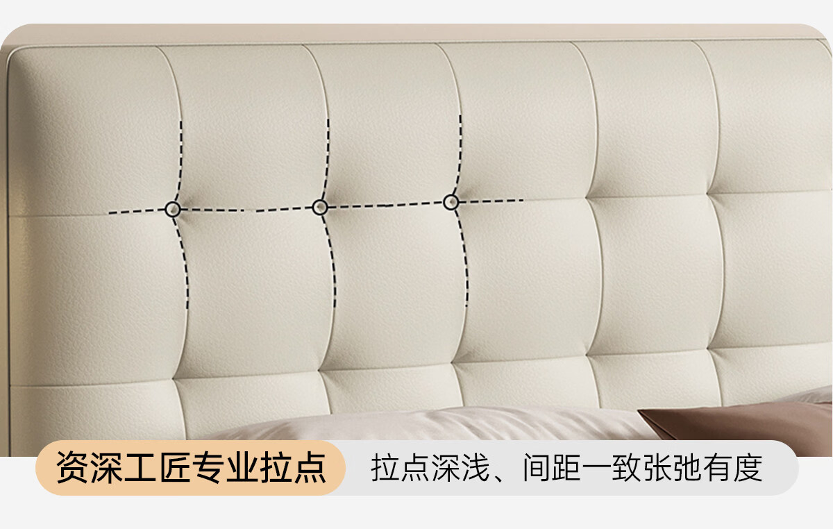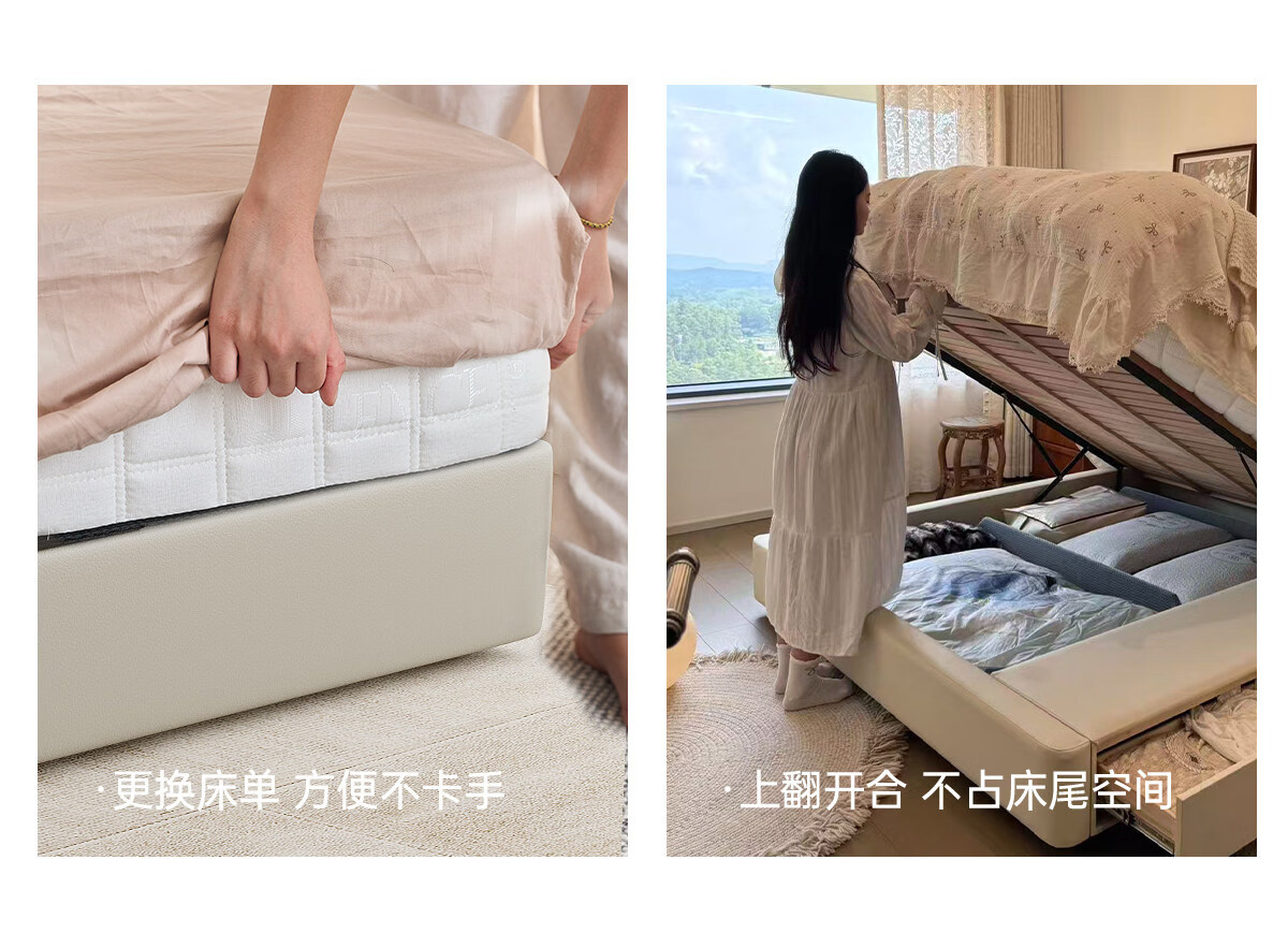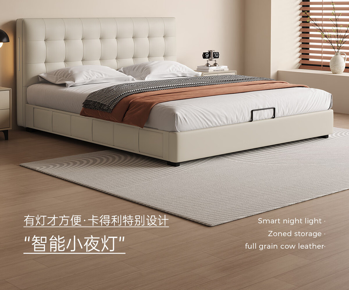 Kaderi waffle bed cream style French medieval retro style thin bed headboard leather bed small apartment storage double bed beech wood rib frame Victory series single bed frame structure 1800mm*2000mm