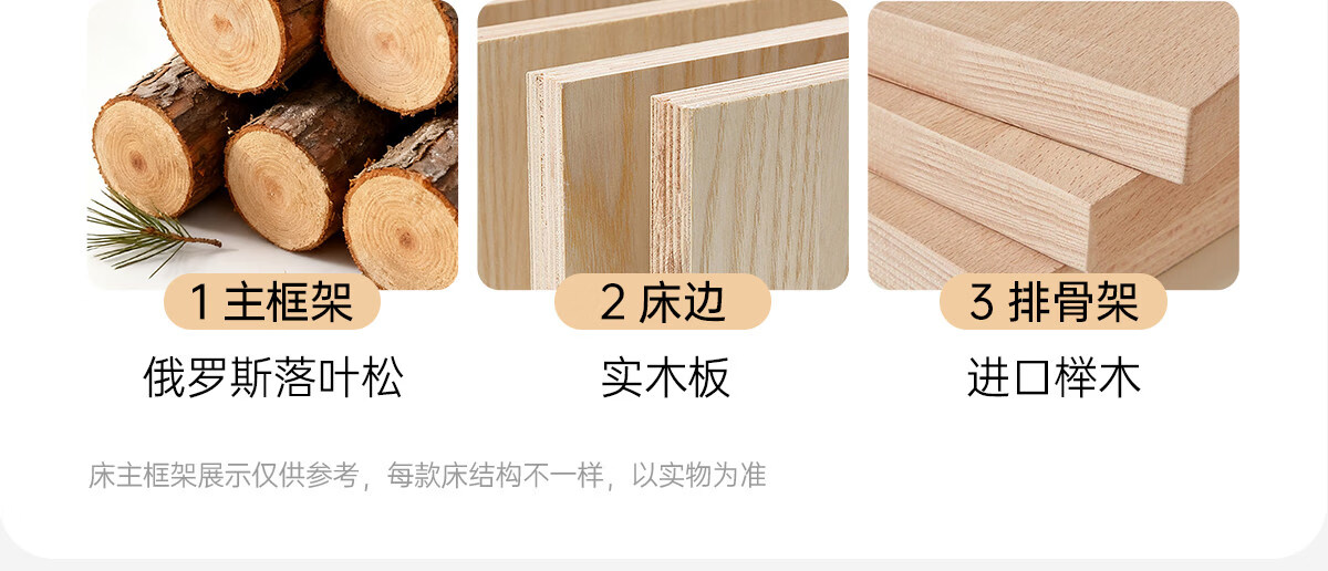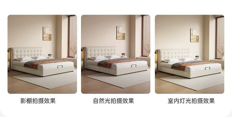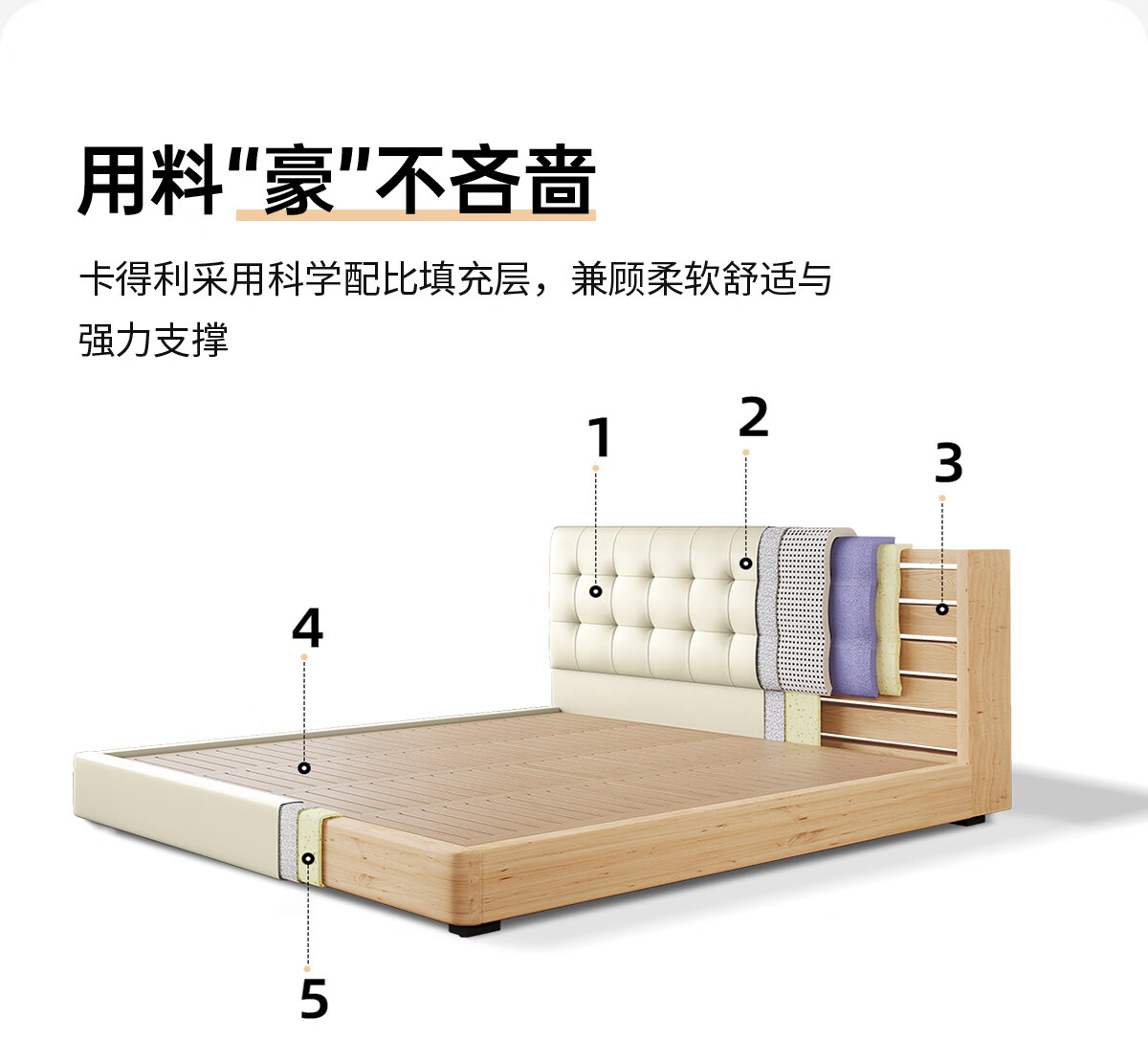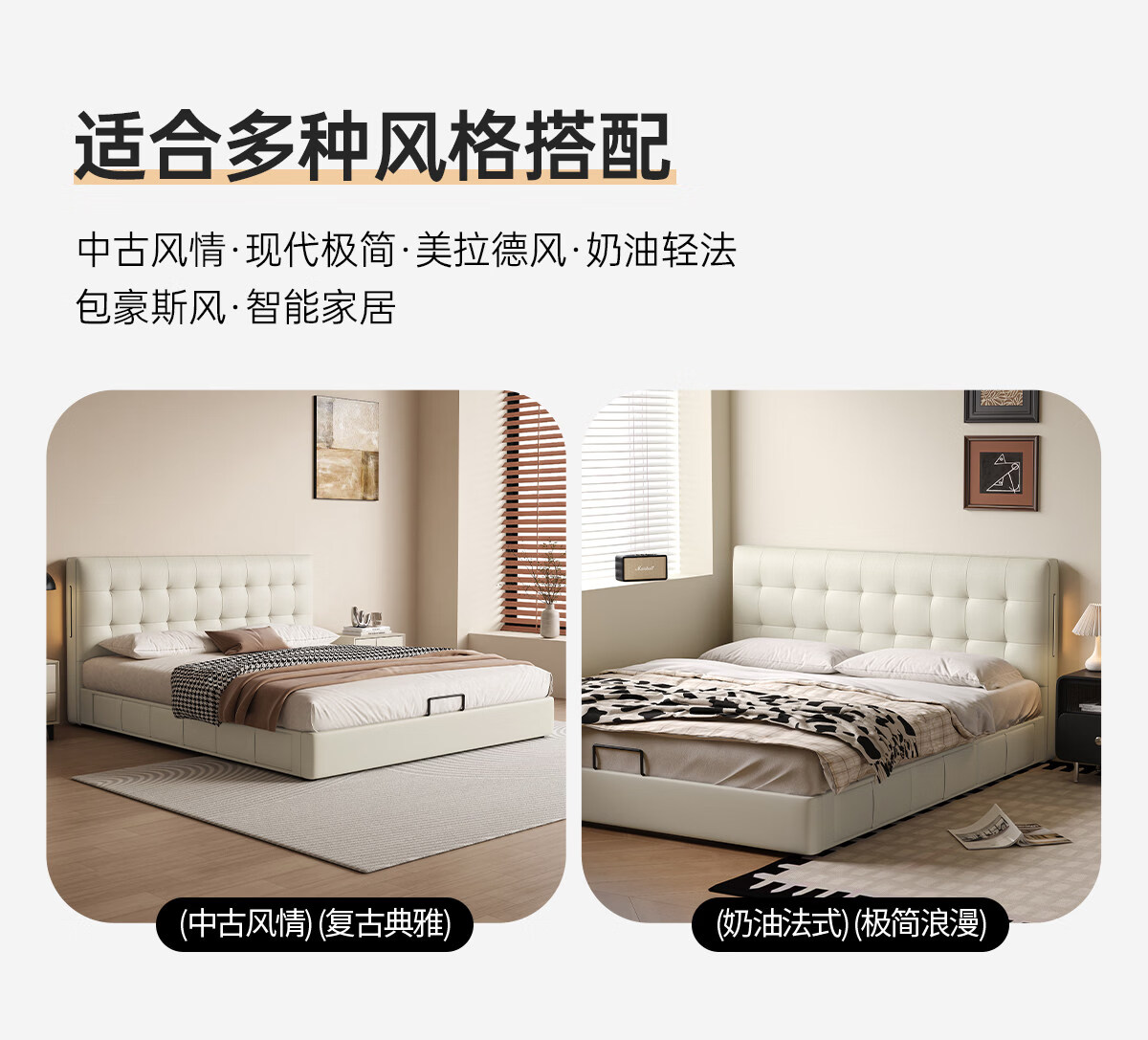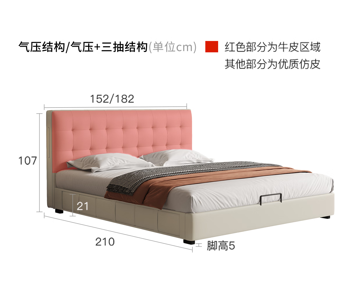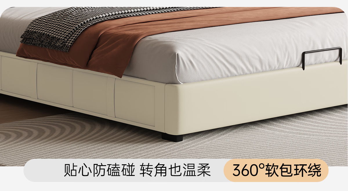 Kaderi waffle bed cream style French medieval retro style thin bed headboard leather bed small apartment storage double bed beech wood rib frame Victory series single bed frame structure 1800mm*2000mm