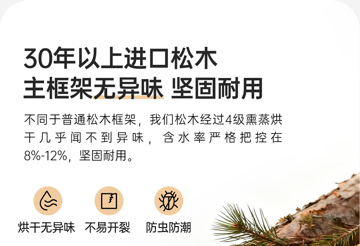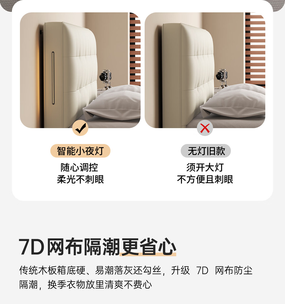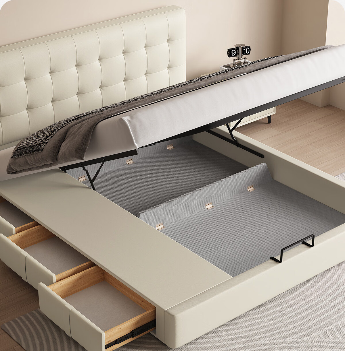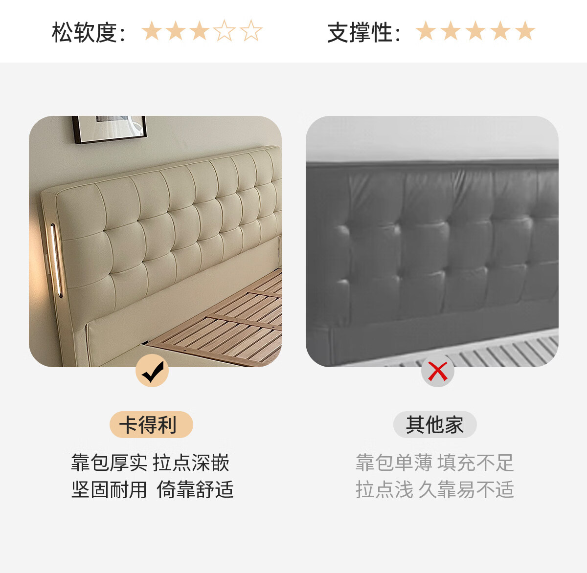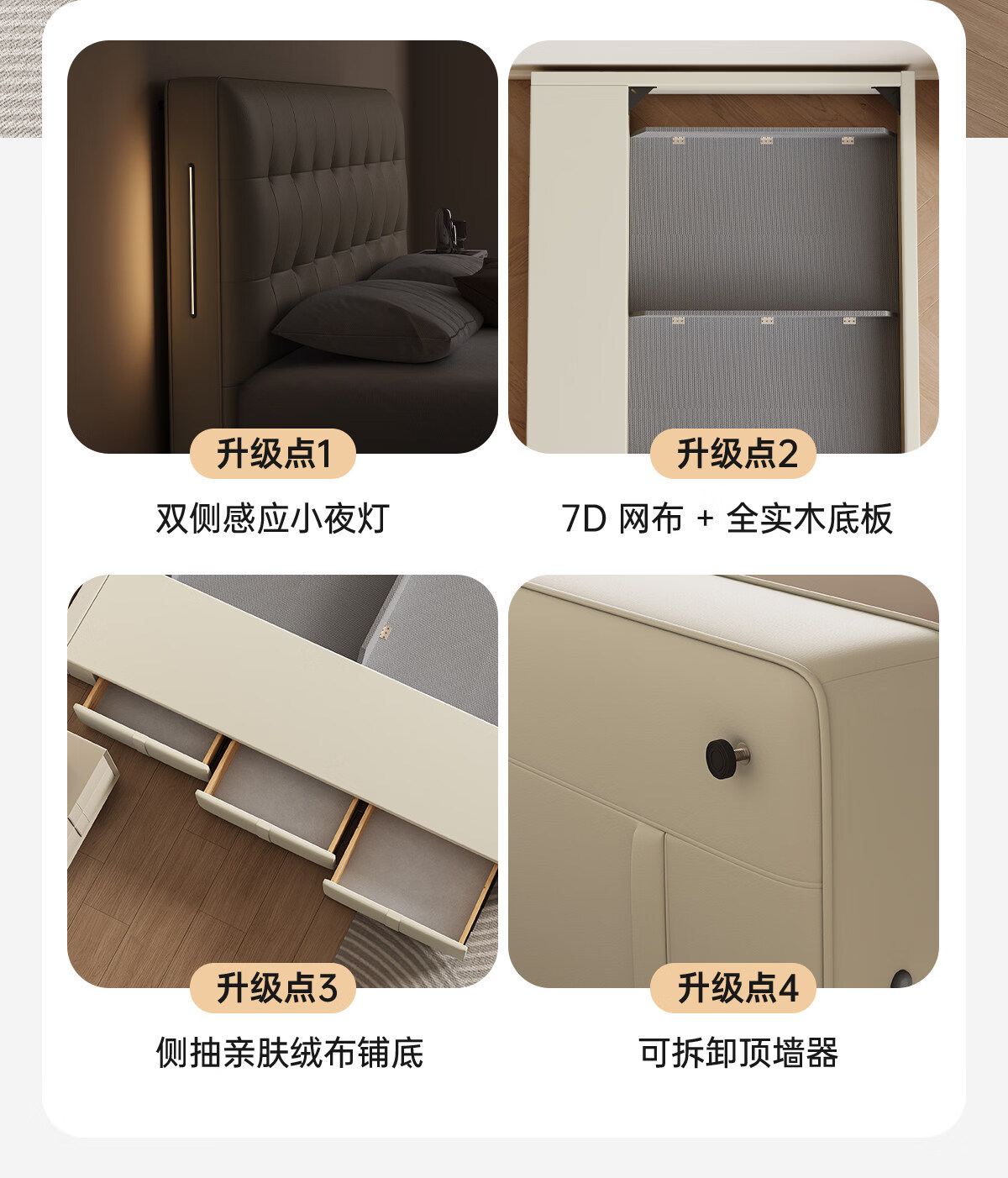Kaderi waffle bed cream style French medieval retro style thin bed headboard leather bed small apartment storage double bed beech wood rib frame Victory series single bed frame structure 1800mm*2000mm