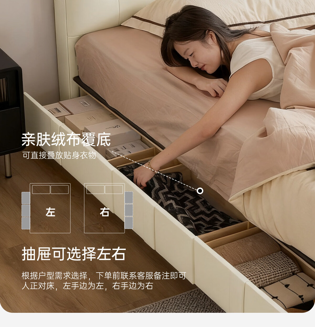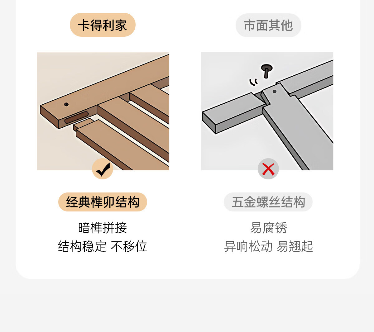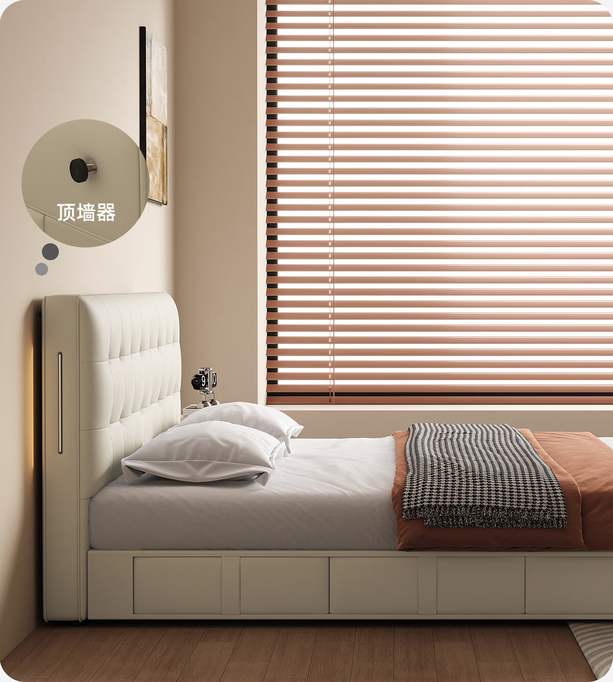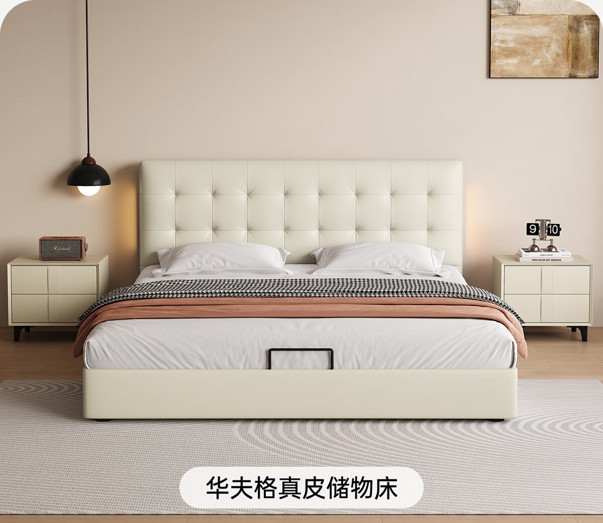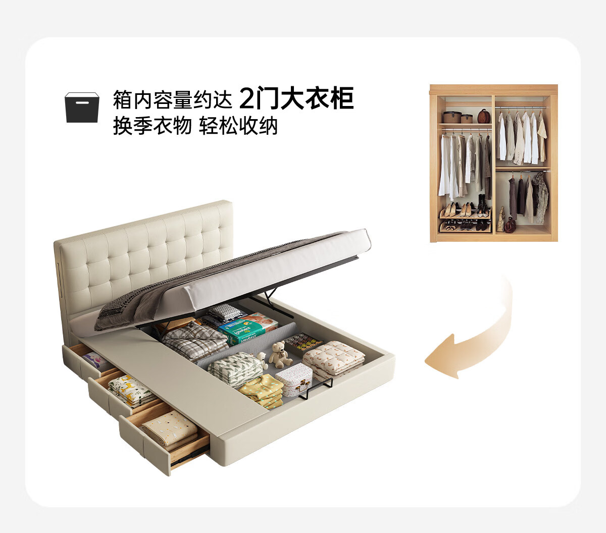 Kaderi waffle bed cream style French medieval retro style thin bed headboard leather bed small apartment storage double bed beech wood rib frame Victory series single bed frame structure 1800mm*2000mm