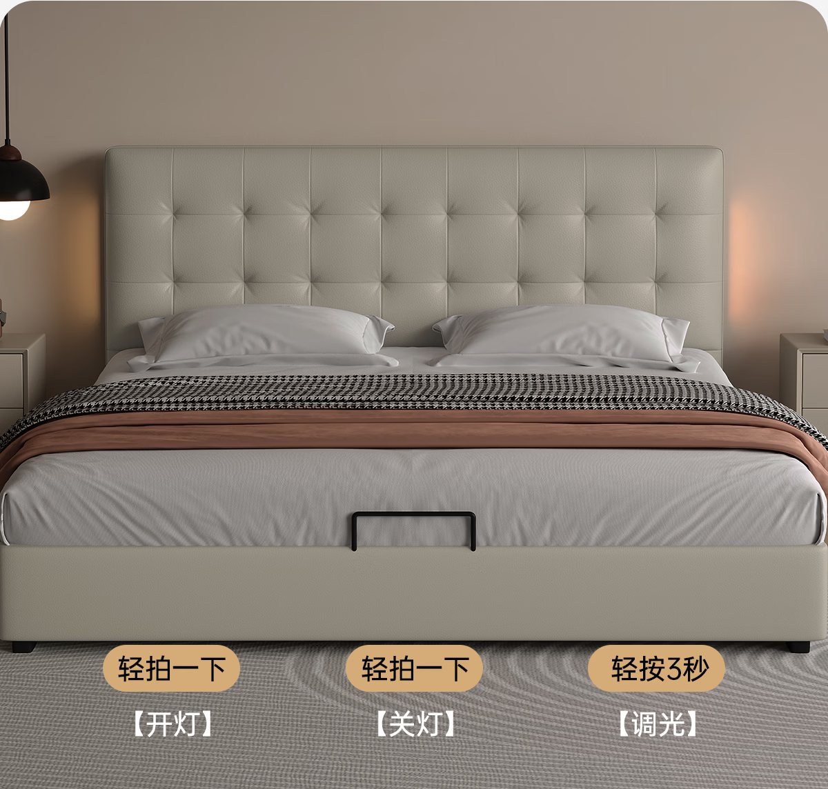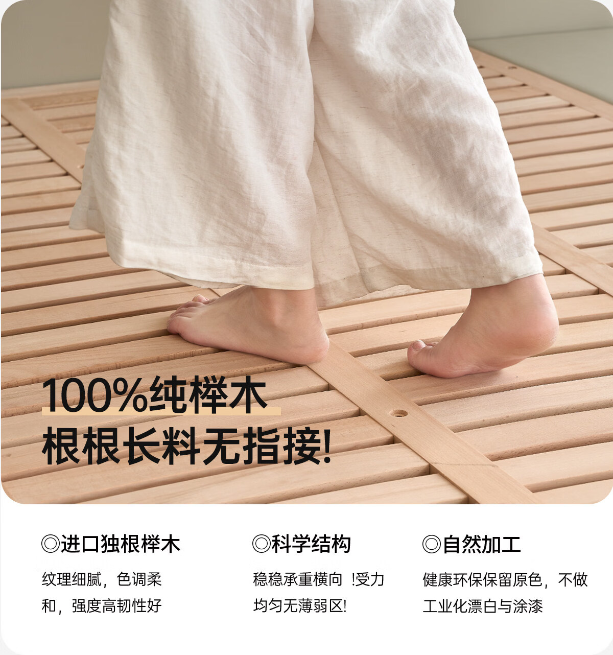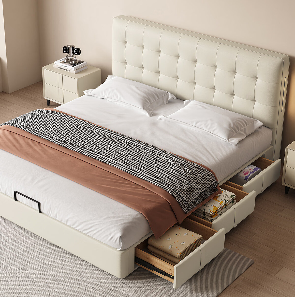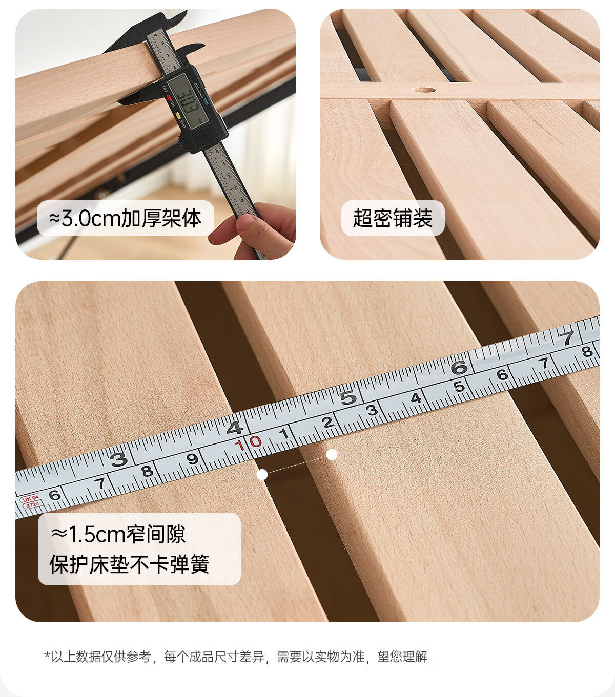 Kaderi waffle bed cream style French medieval retro style thin bed headboard leather bed small apartment storage double bed beech wood rib frame Victory series single bed frame structure 1800mm*2000mm