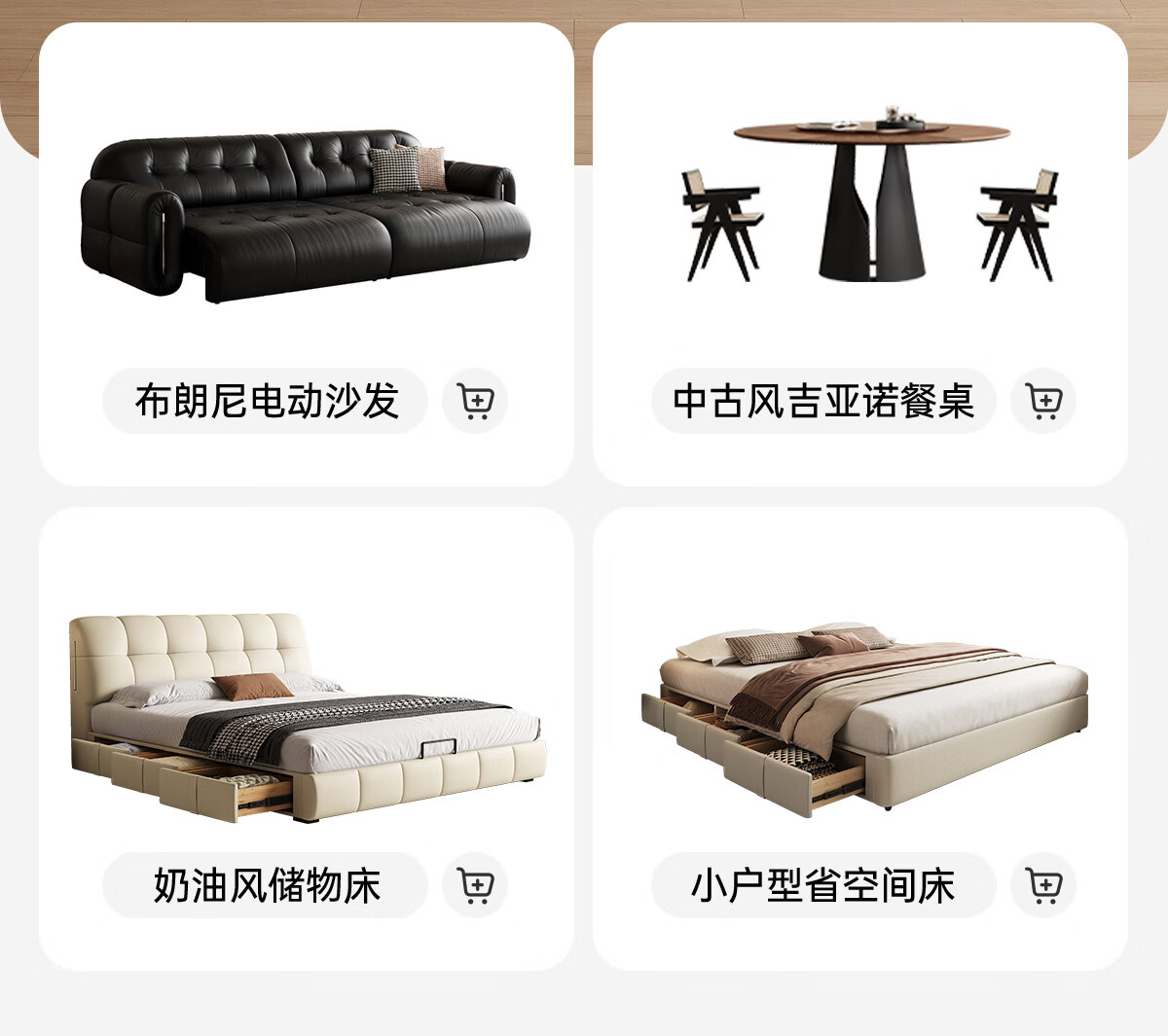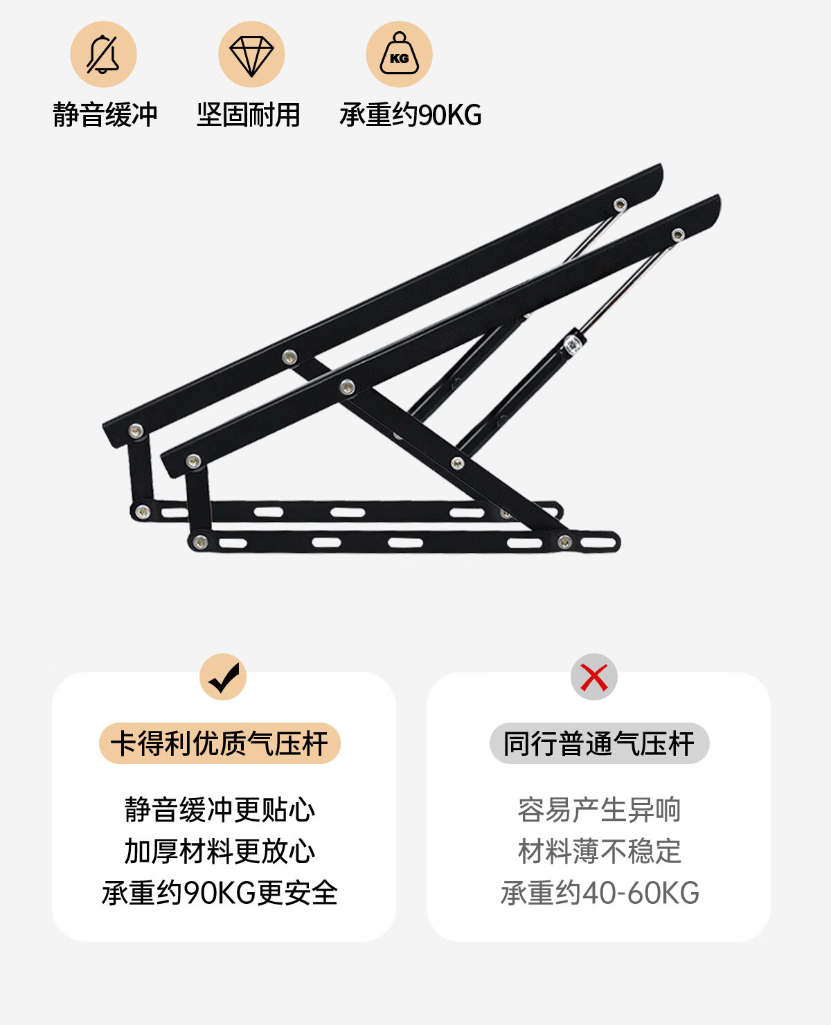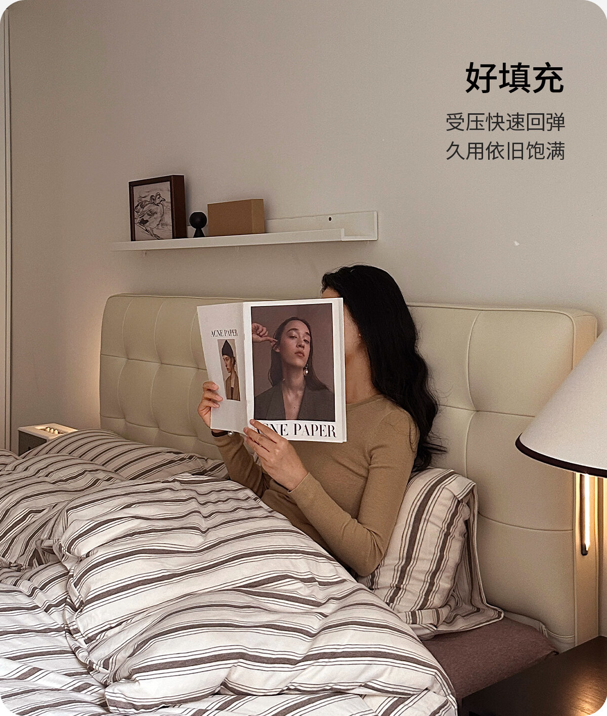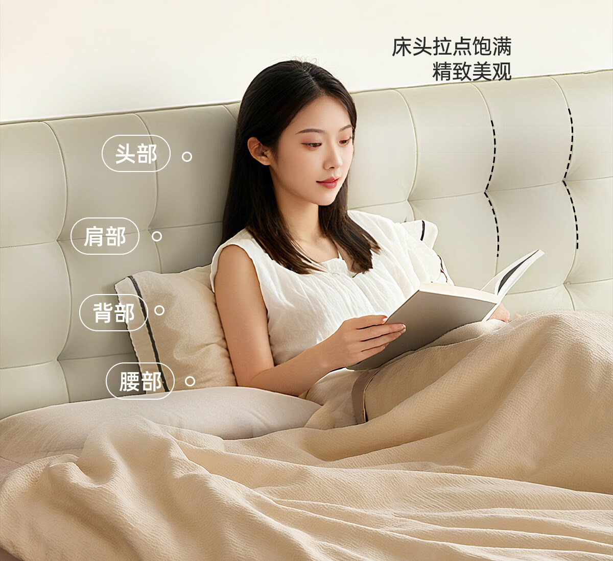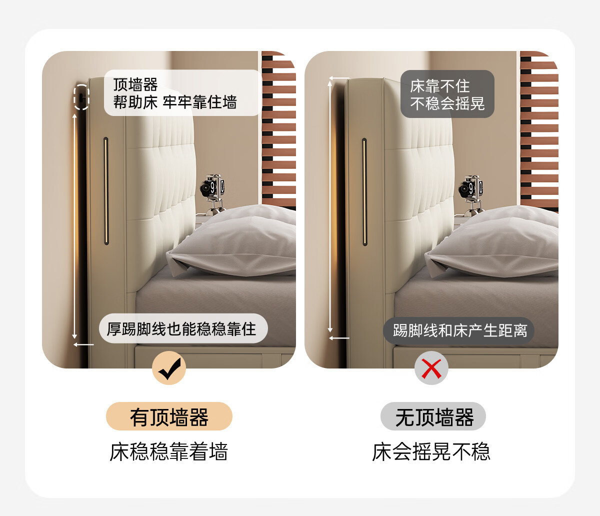 Kaderi waffle bed cream style French medieval retro style thin bed headboard leather bed small apartment storage double bed beech wood rib frame Victory series single bed frame structure 1800mm*2000mm