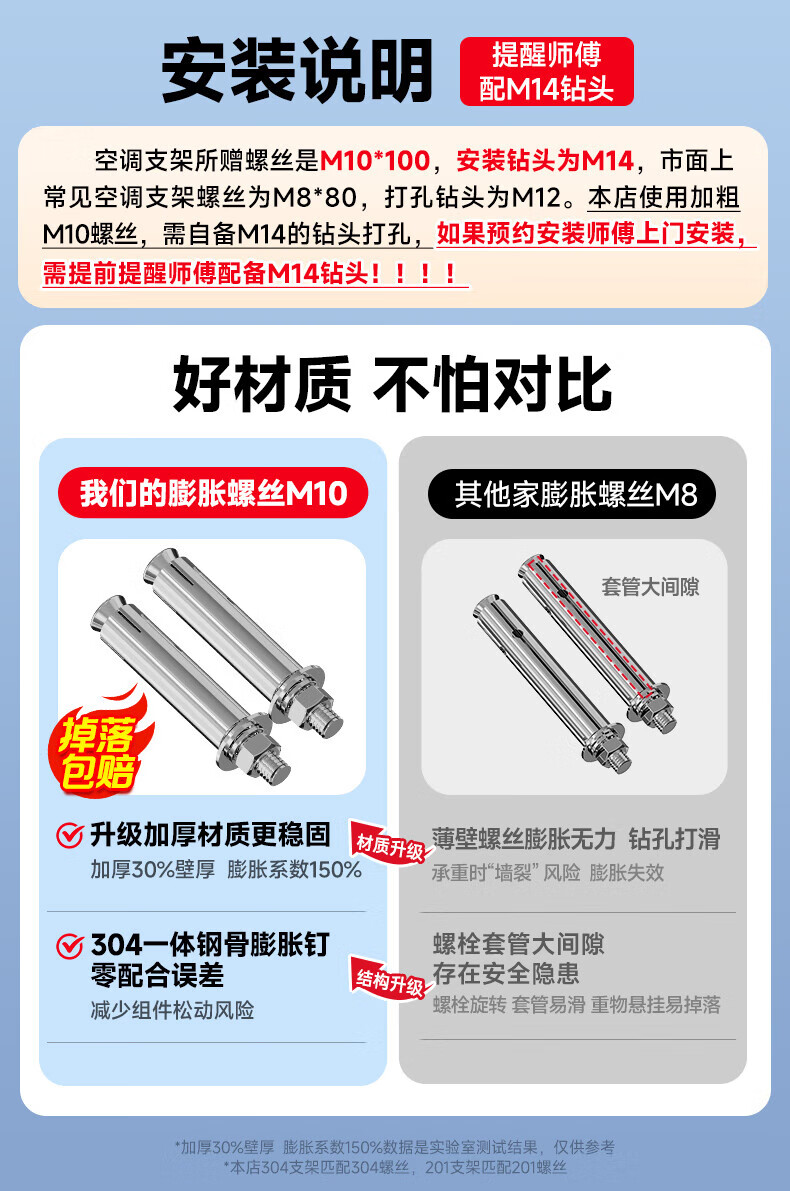 Beishi thickened stainless steel air conditioner bracket, air conditioner outdoor unit bracket, suitable for Greeme, Oaks, Hisense, Shenhua, Changhong, Konka, Haier, TCL, Hualing, Xinfei, Skyworth, Xiaomi, etc. Suitable for Xiaomi air conditioners 1-1.5P standard stainless steel