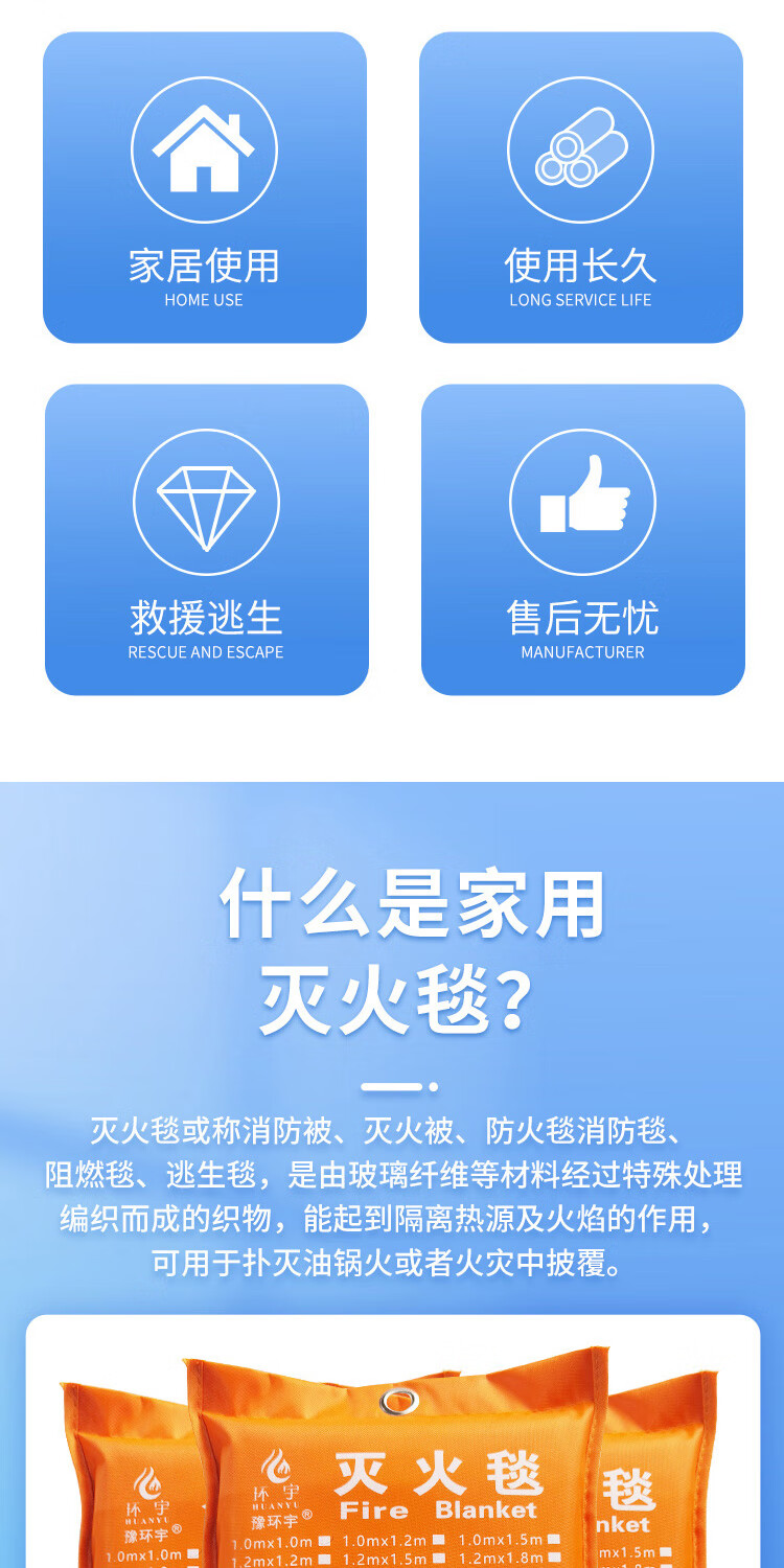 1m*1m silicone fire blanket boxed fire blanket escape blanket fire fiberglass home vehicle school shopping mall etc. orange silicone bag 2.0mx2.0m