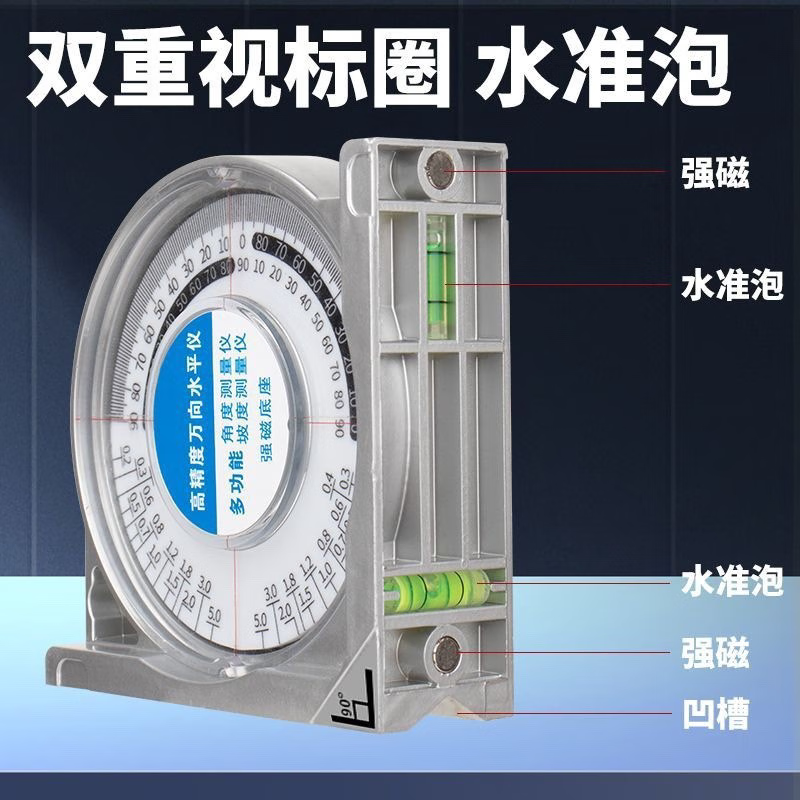 Factory direct sales multi-function angle measuring instrument, high-precision slope meter with magnetic level, vertical angle pendulum, silver