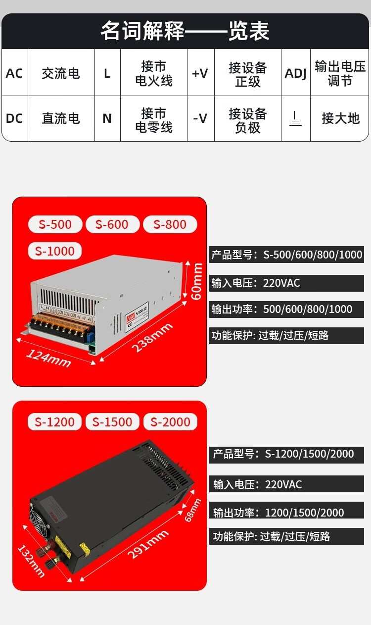 Yue Changsheng ZUIDID switching power supply 24V high power 500/600/1000W adjustable DC transformer 220V to 36V4 S-500-24