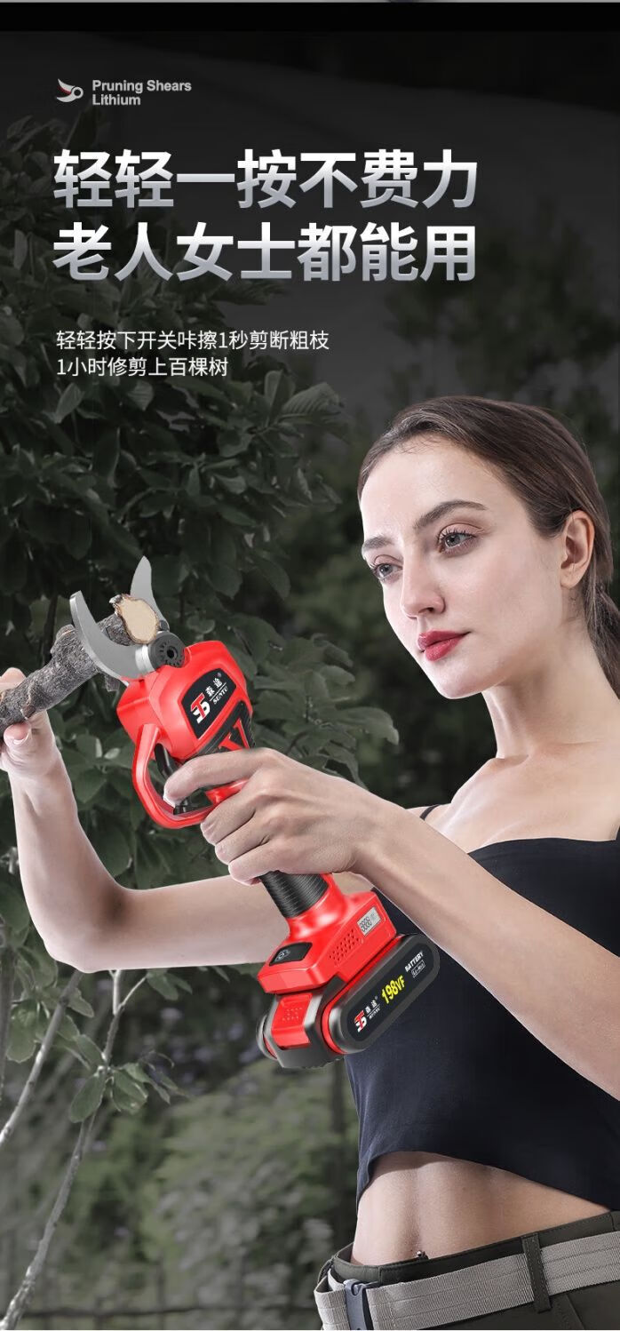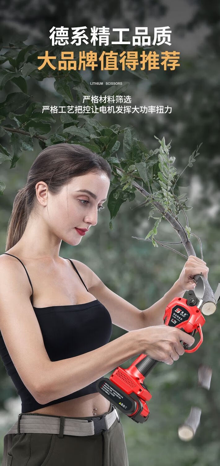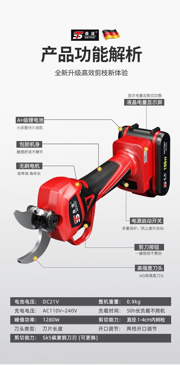 Milan Germany imported German electric pruning shears branch pruning wireless fruit tree shears lithium battery rechargeable garden 4.0 cm upgraded model + single battery + hand saw