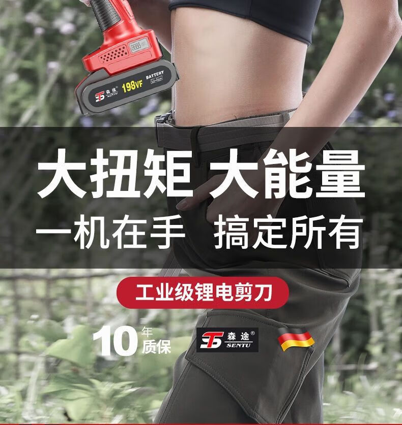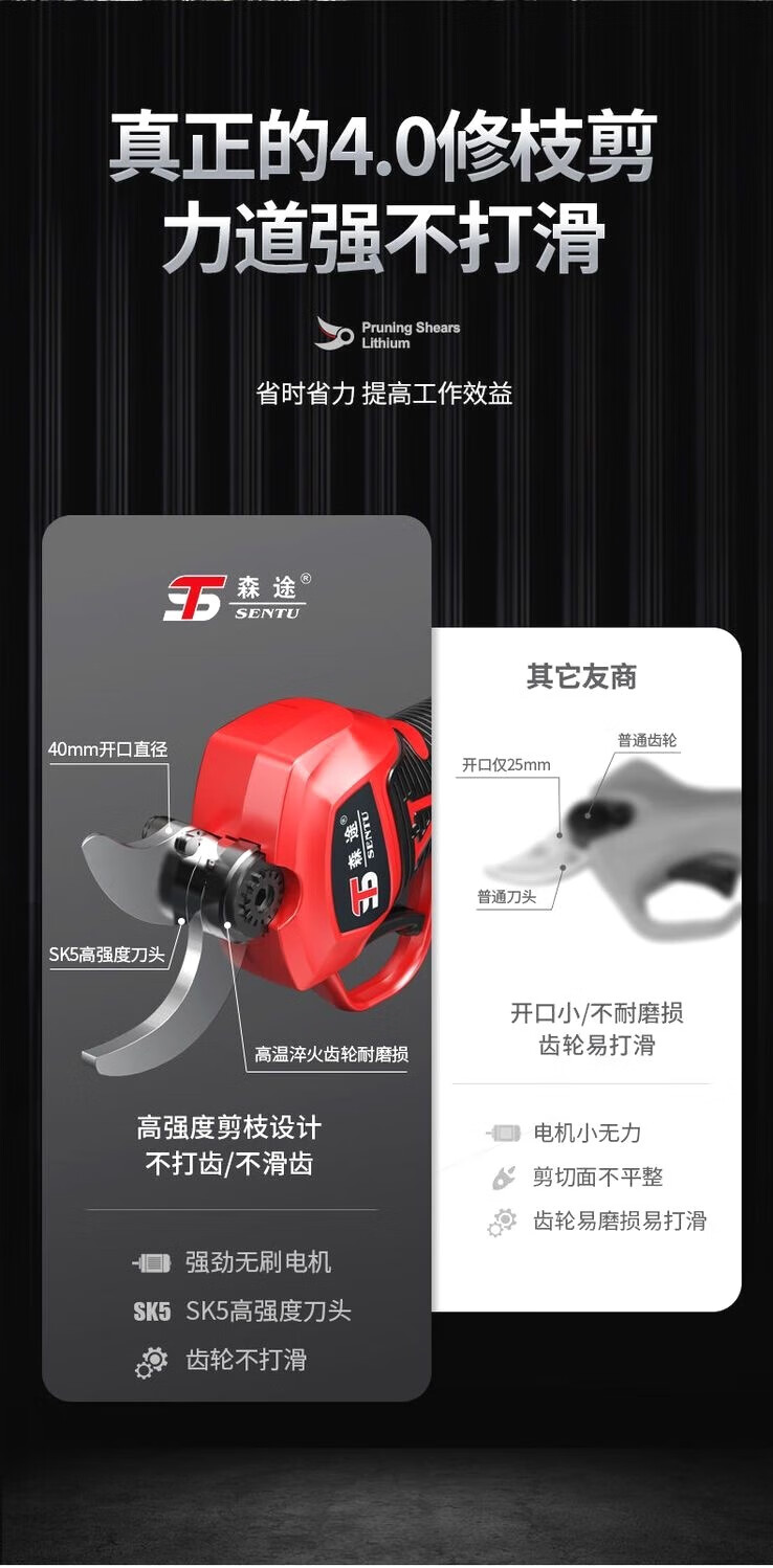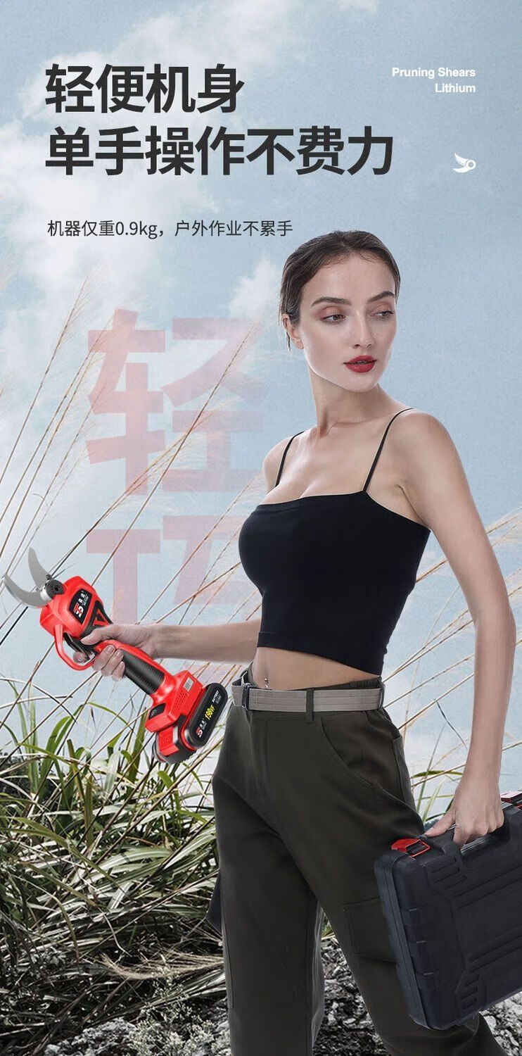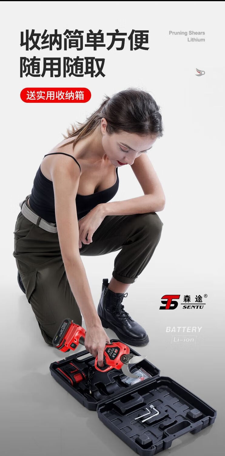 Milan Germany imported German electric pruning shears branch pruning wireless fruit tree shears lithium battery rechargeable garden 4.0 cm upgraded model + single battery + hand saw