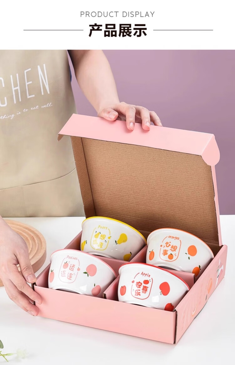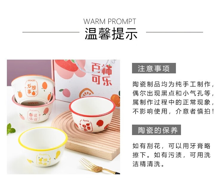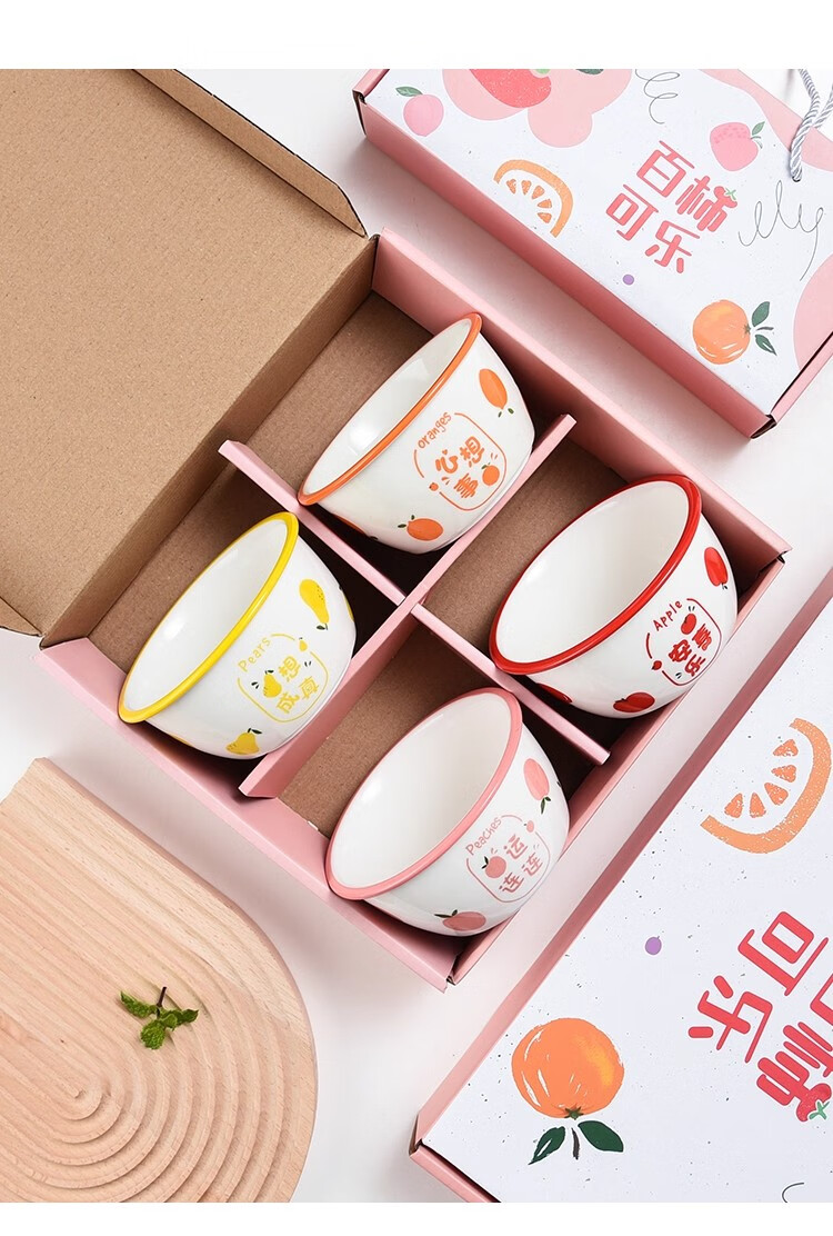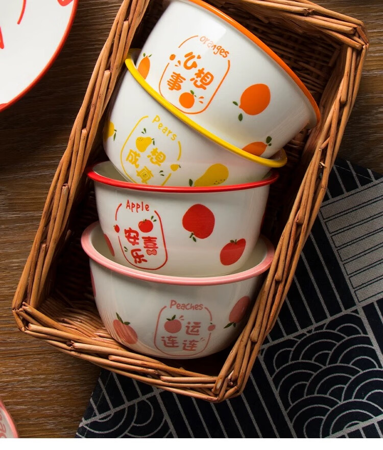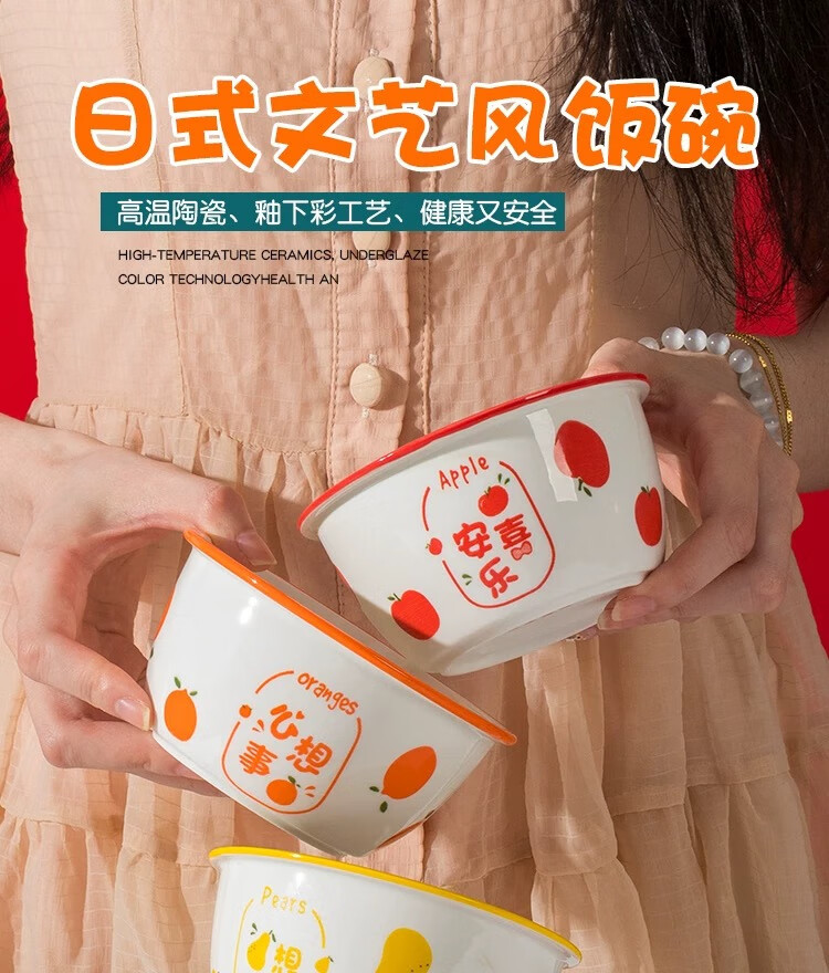 New ceramic tableware Japanese-style creative wide-rimmed bowl for home use, wishing for peace, exquisite and cute rice bowl, wishing for two bowls, random pattern