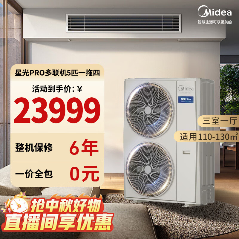 Midea central air conditioning multi-split starlight PRO 6 hp one to four first-level energy efficiency with water pump MDS-120W-E01-XGpro (for details, consult customer service Large 6 hp first-level energy efficiency 160 starlight pro