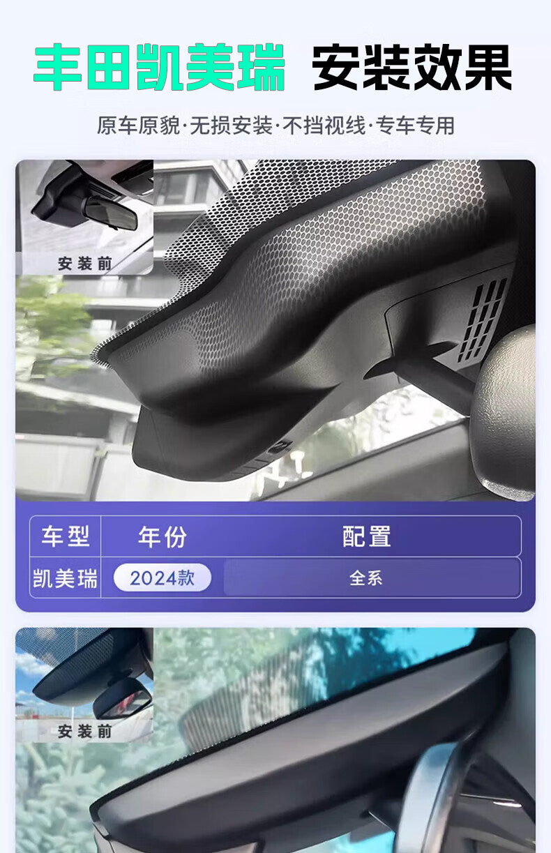 Jinyuzi Toyota 9th generation Camry driving recorder high-definition wire-free original factory front and rear dual recording special car dedicated to the 8th generation 18-23 models 8th generation Camry. When ordering, please note the year and model configuration. SD single lens 1296P+64G