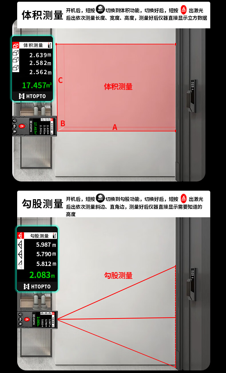 Haotu new product handheld laser rangefinder high-precision infrared measuring instrument electronic ruler distance measuring instrument laser ruler type-c rechargeable silent 70 meters data storage + accuracy correction