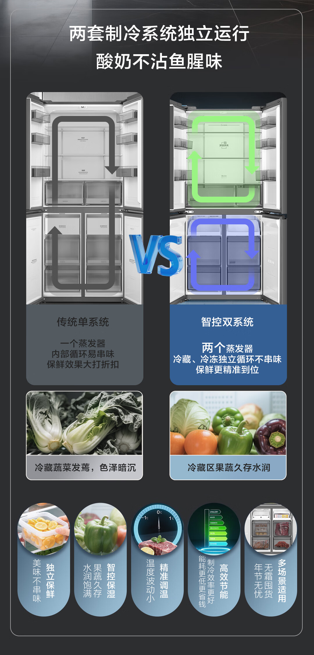 Haier refrigerator produces Tongshuai 575 dual-system cross-section four-door first-class energy-efficient and energy-saving air-cooled frost-free ALP ultra-clean system large-capacity household refrigerator. New product launch + dual system dual cycle + global clean system