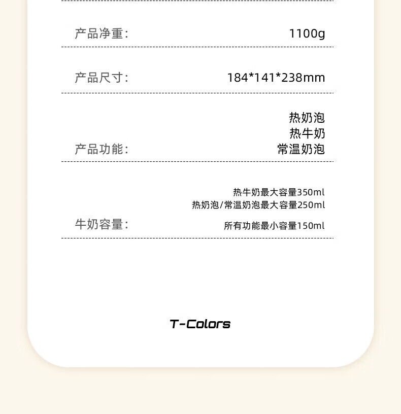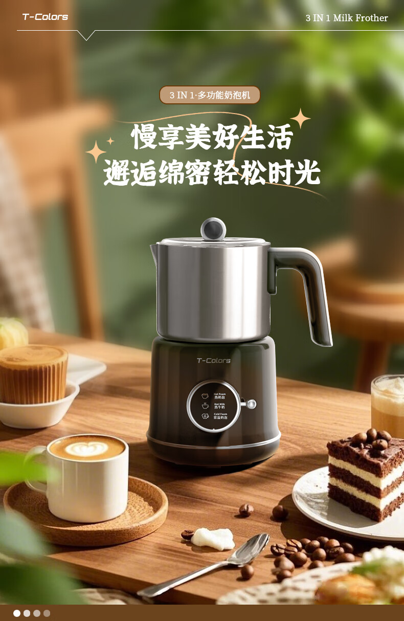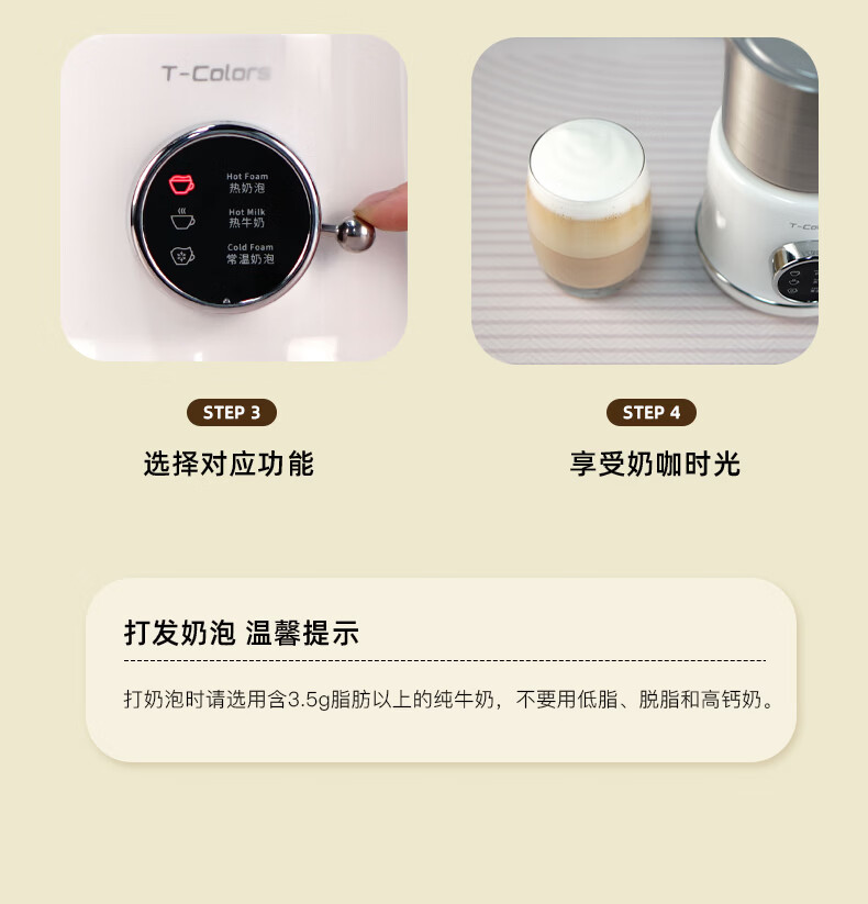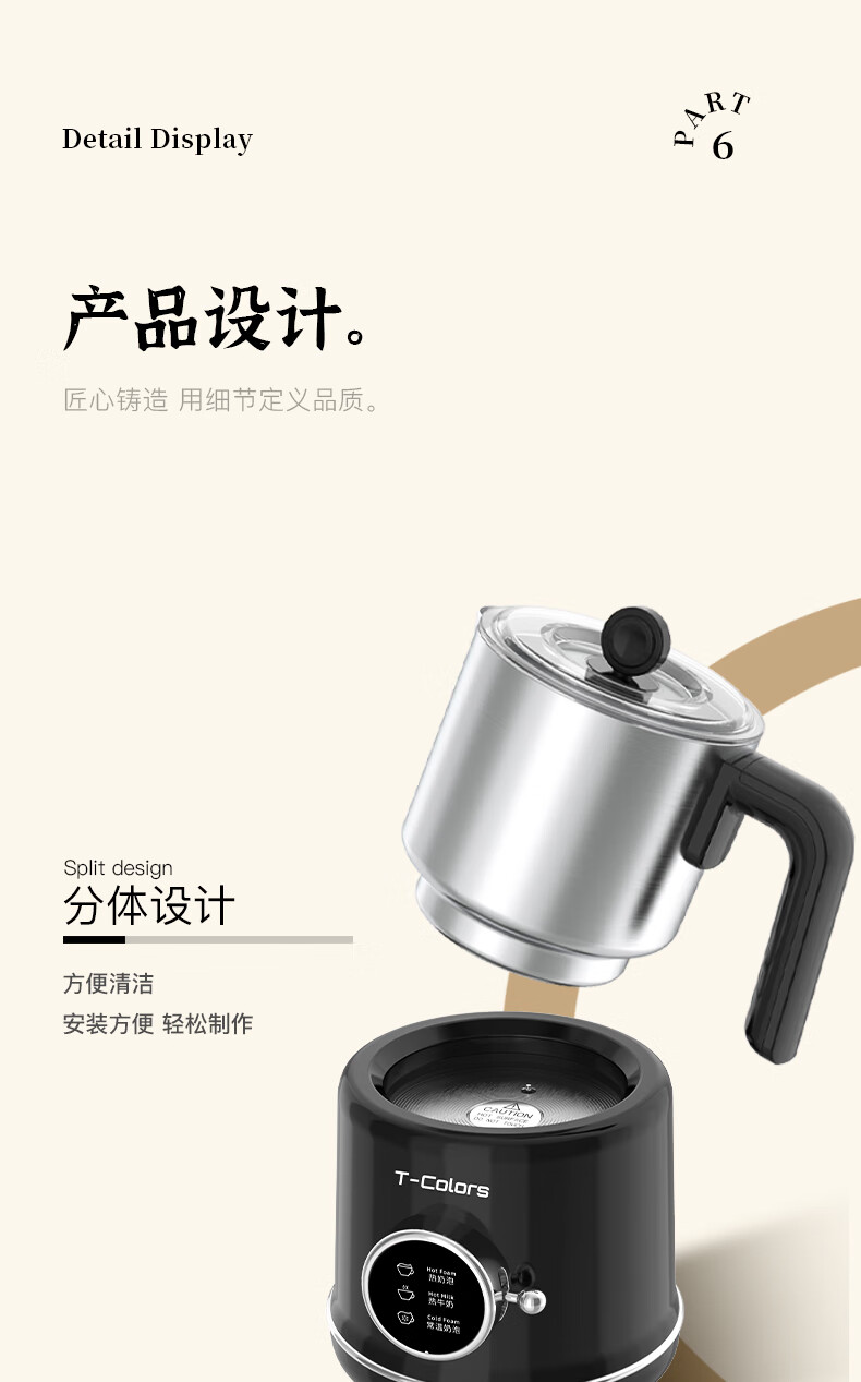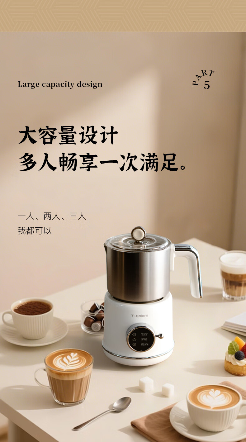 T-Colors electric split milk frother, fully automatic household milk frother, hot and cold milk frother, porcelain white