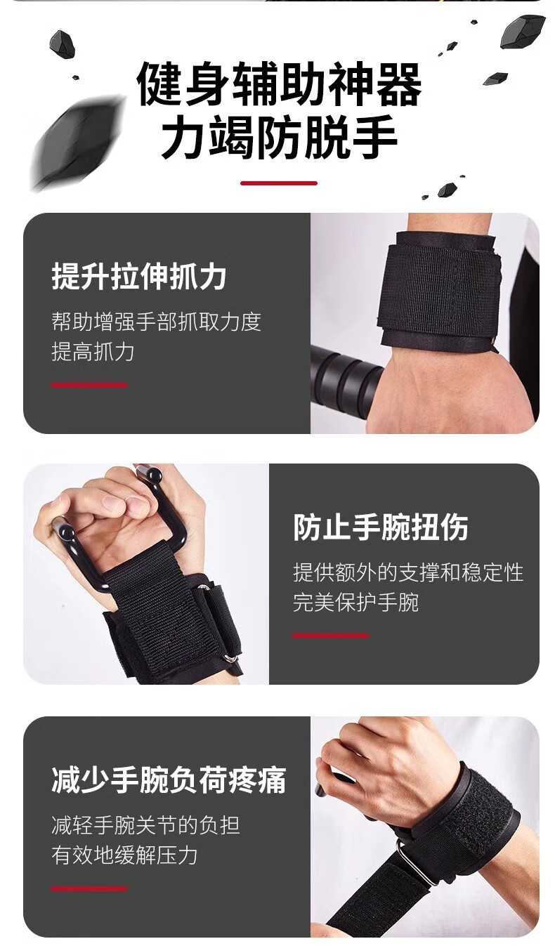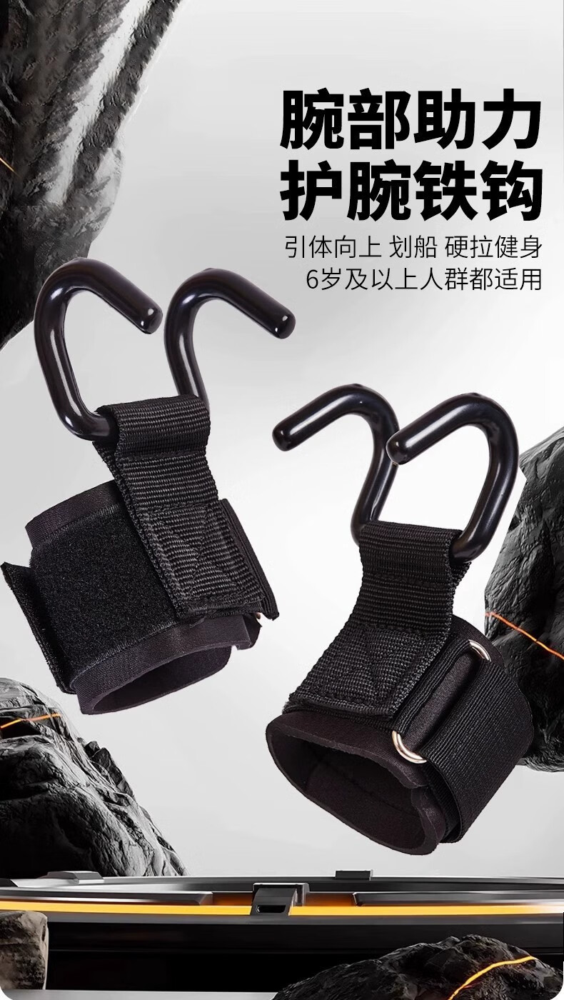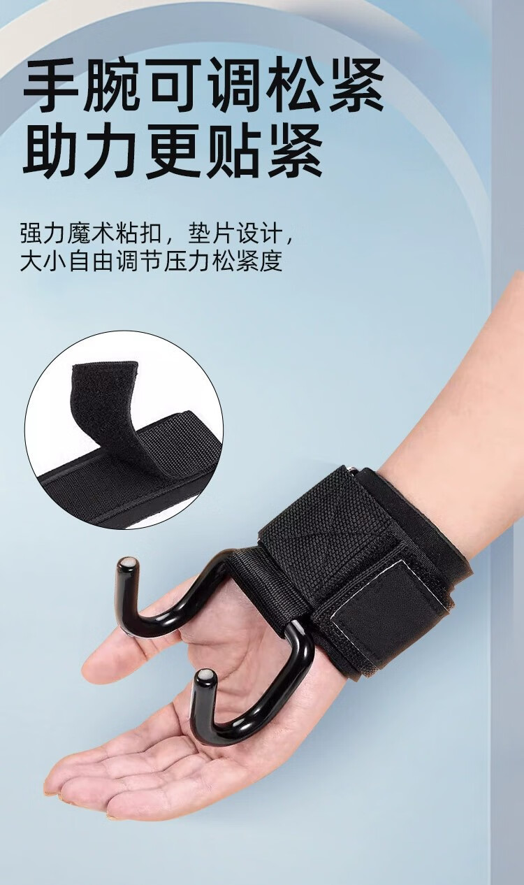 Fitness deadlift booster belt wristband power hook pull-up power hook hanging horizontal bar anti-fallout auxiliary artifact black hook style one pair