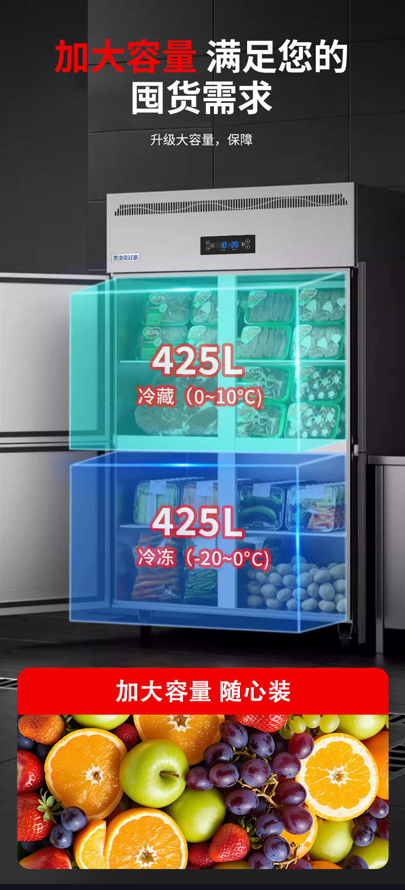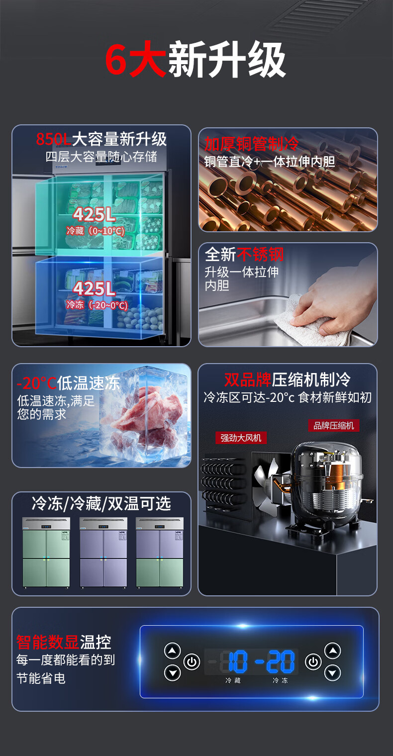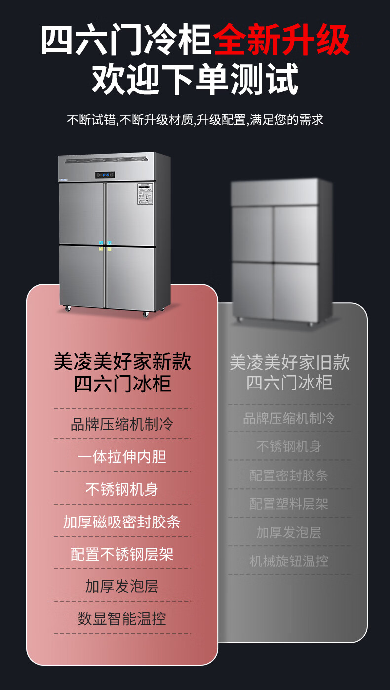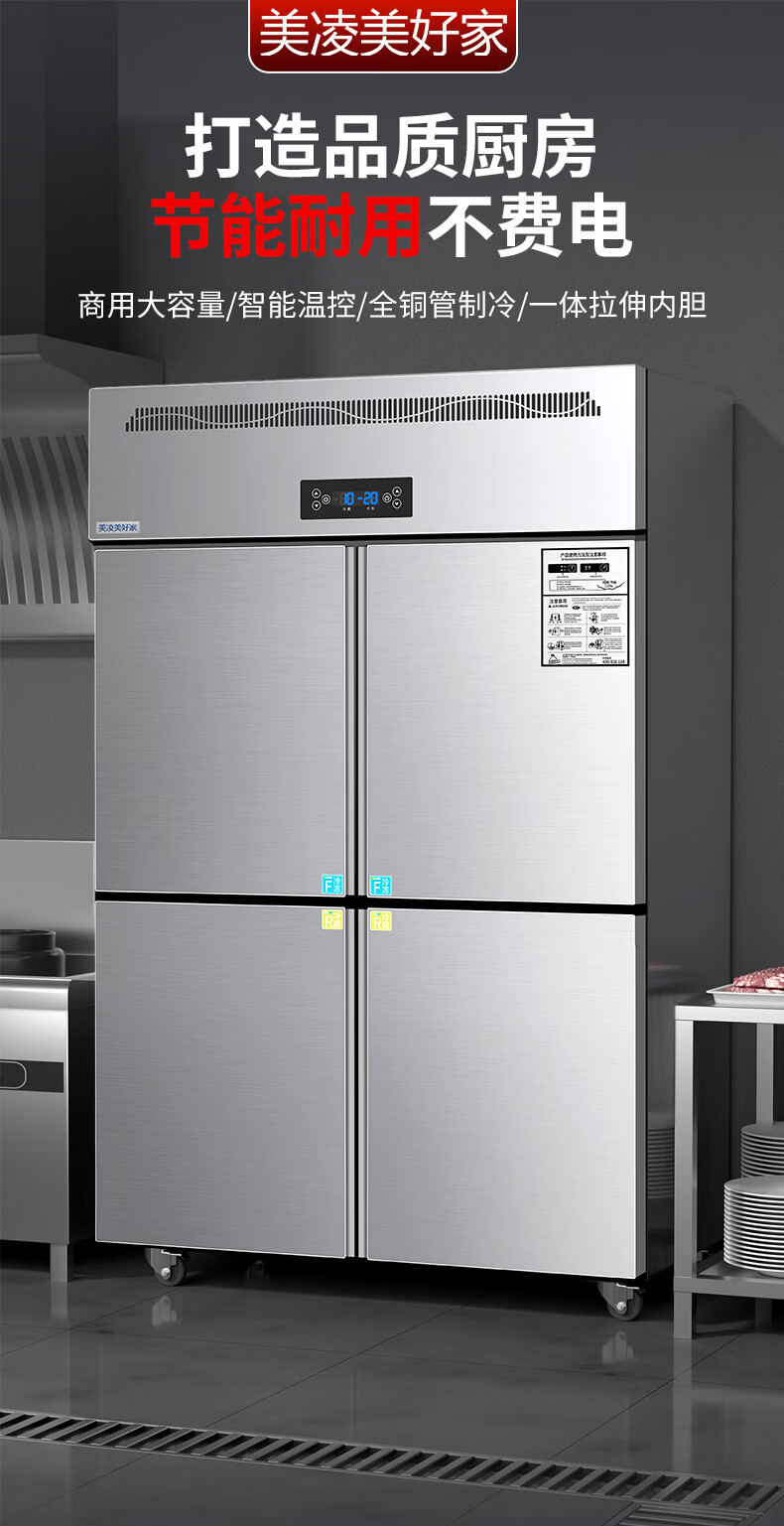 Meiling Beautiful Home has 20% subsidy four-door refrigerator commercial fruit and vegetable six-door fresh cabinet catering kitchen hotel dual-temperature refrigeration and freezing large-capacity stainless steel four-door freezer four-door copper tube luxury model丨upper and lower full refrigeration commercial large capacity丨high-efficiency refrigeration丨brand compressor