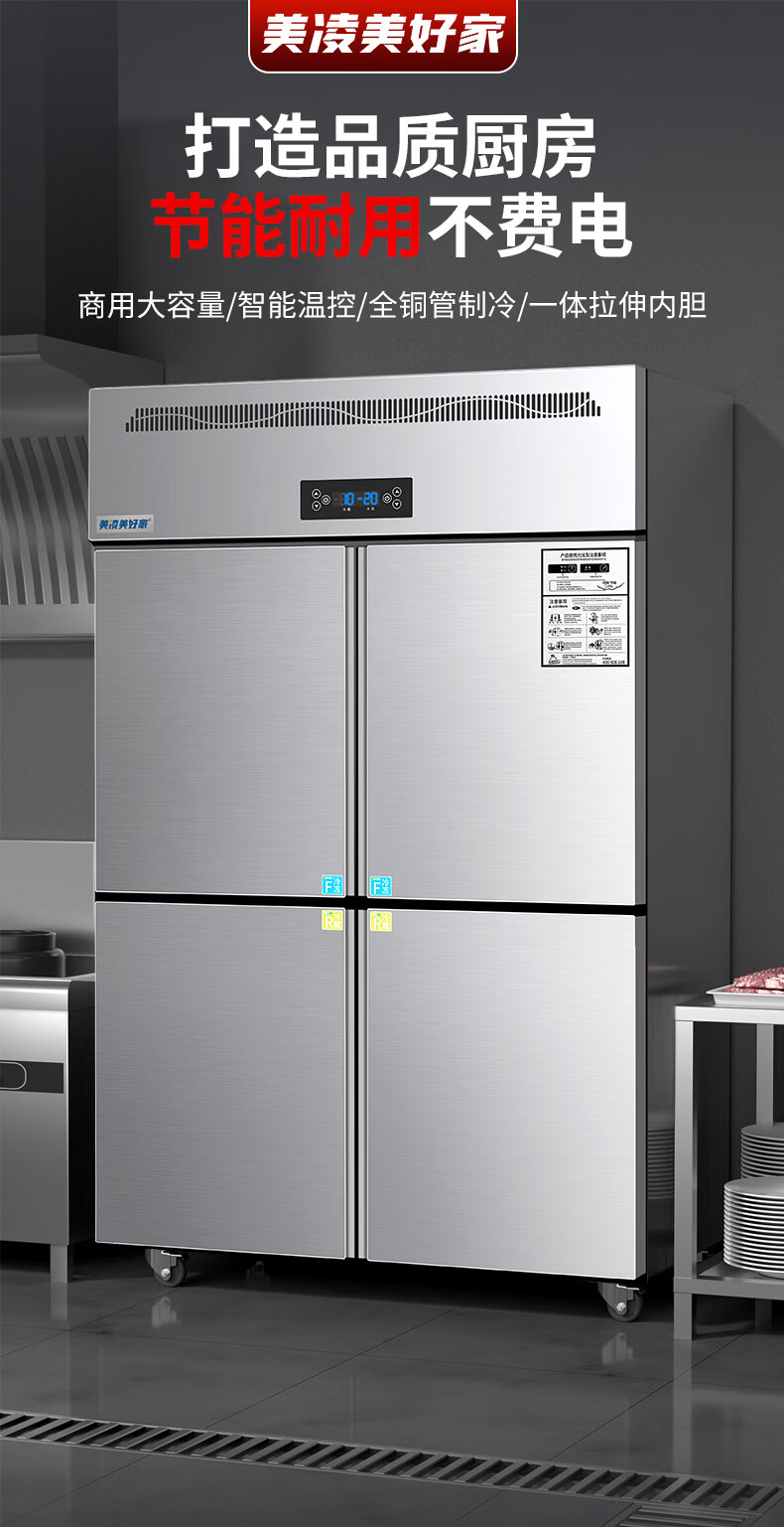 Meiling Beautiful Home has 20% subsidy four-door refrigerator commercial fruit and vegetable six-door fresh cabinet catering kitchen hotel dual-temperature refrigeration and freezing large-capacity stainless steel four-door freezer four-door capacity upgraded model丨upper refrigeration and lower freezer丨all steel and all copper-20 C commercial large capacity丨high-efficiency refrigeration丨brand compressor