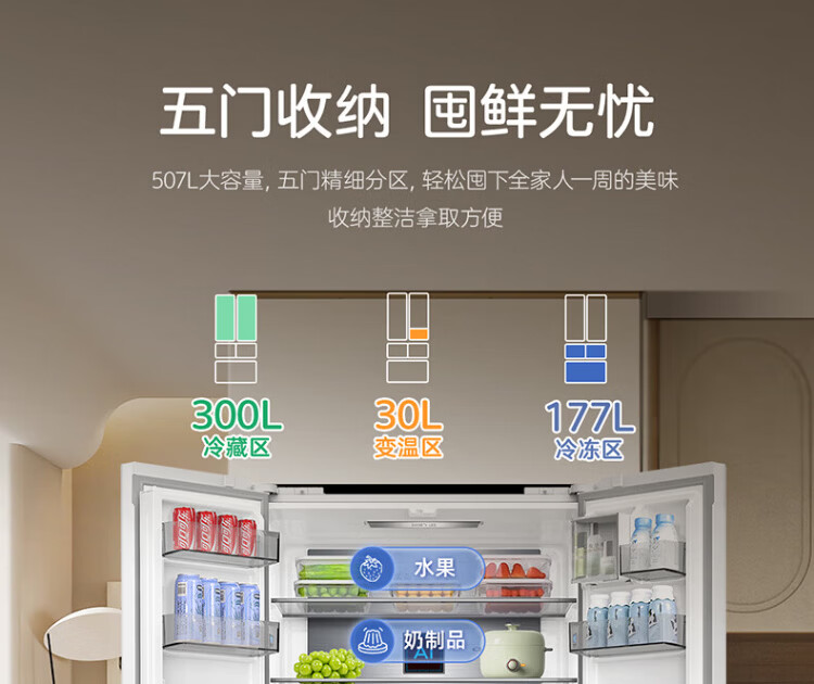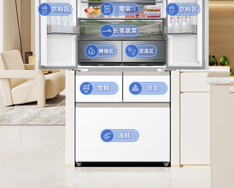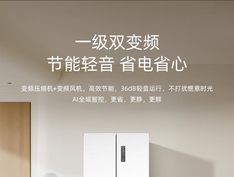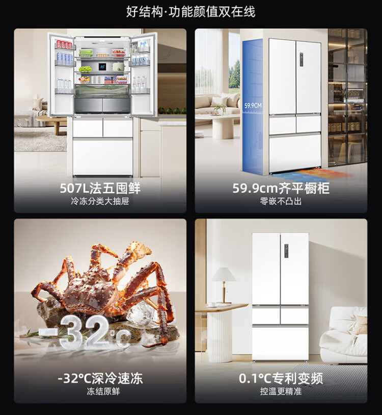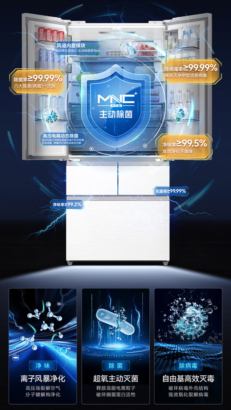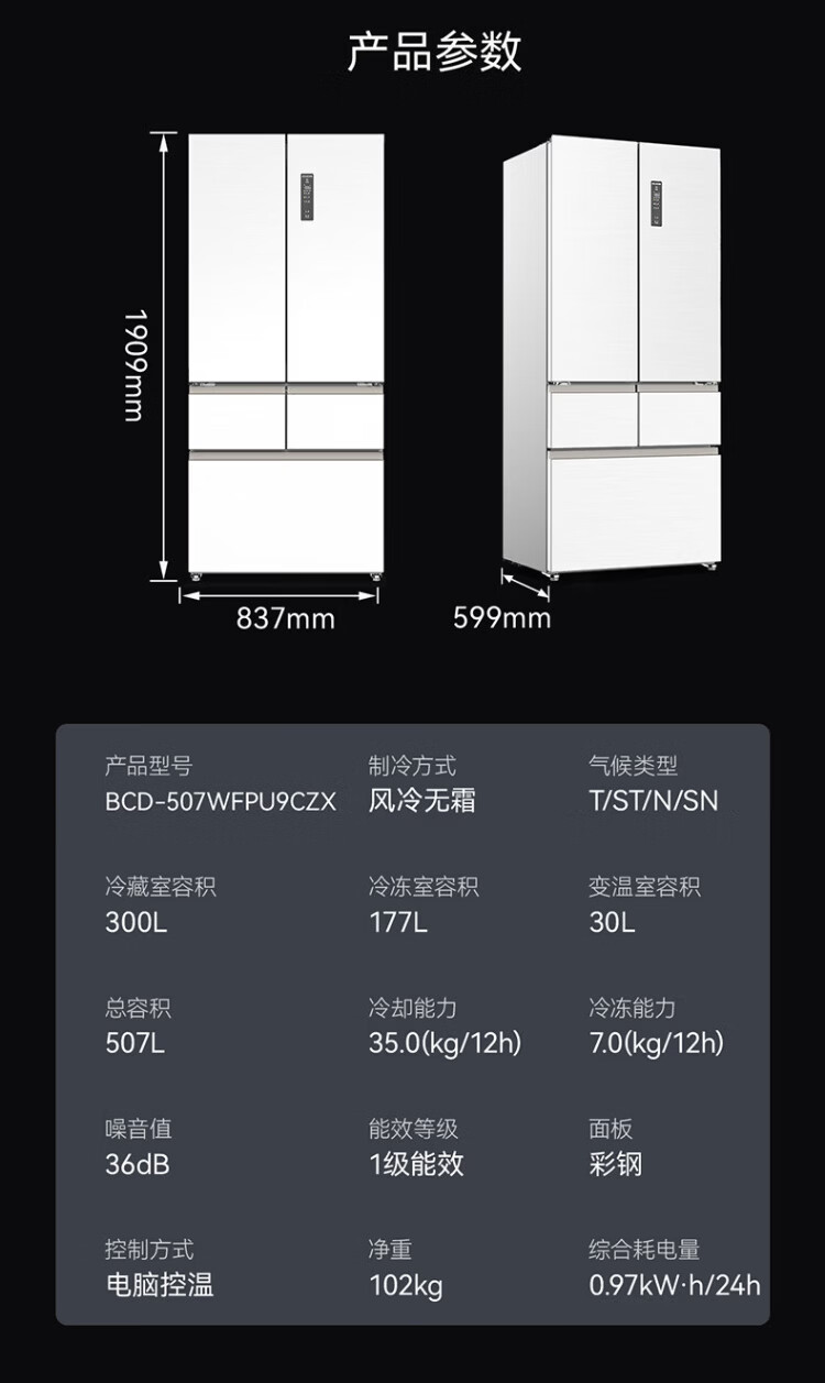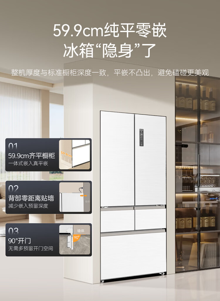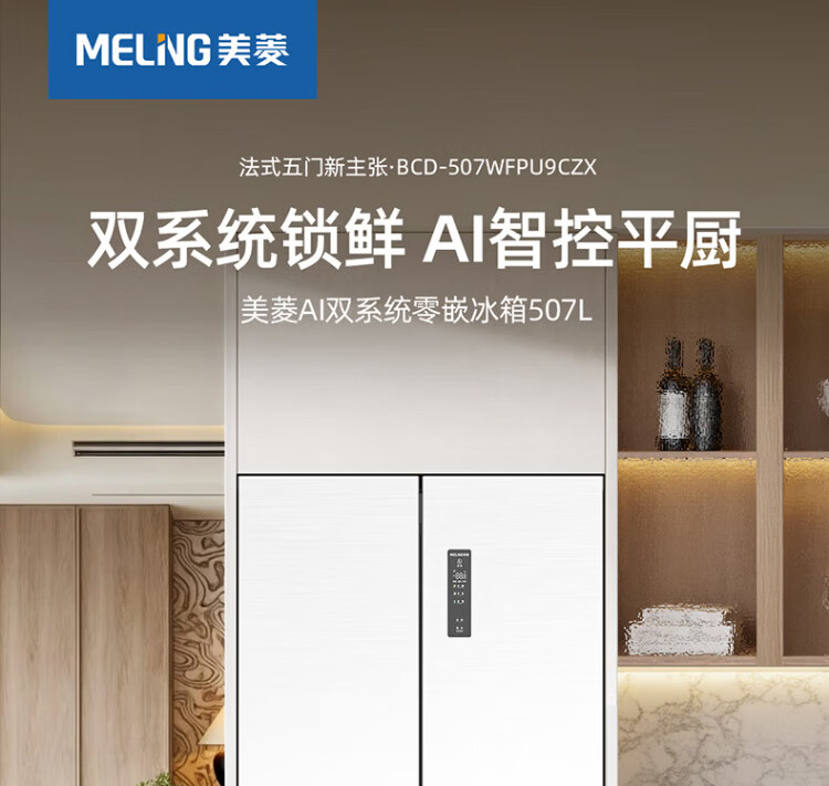MeiLing AI smart refrigerator 507 liter French door thin zero-flat embedded dual system dual cycle active sterilization and deodorization first-level air cooling subsidy white refrigerator AI refrigerator BCD-507WFPU9CZX-white