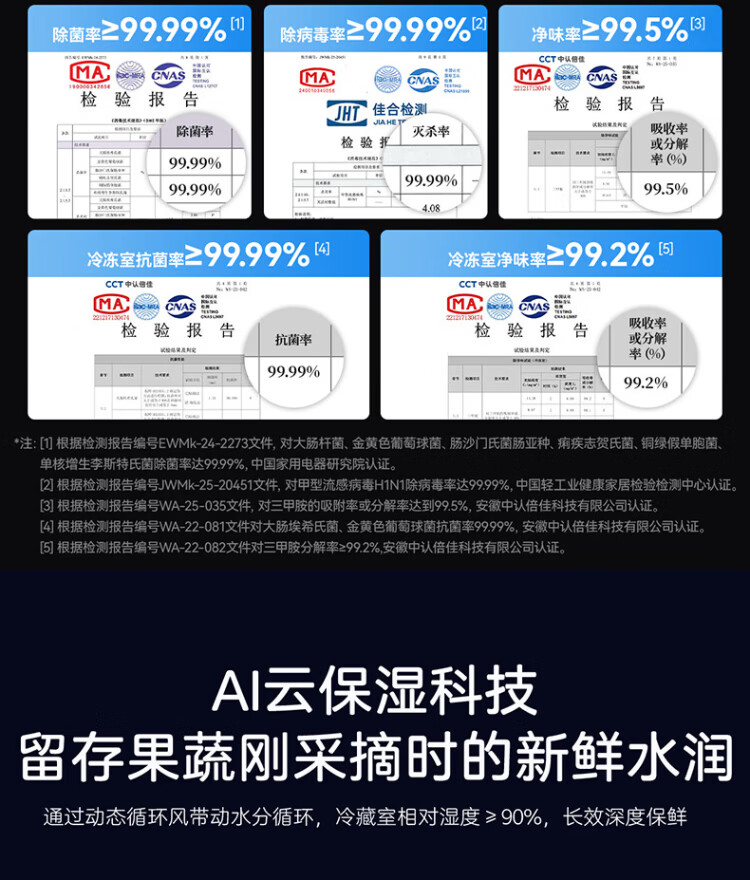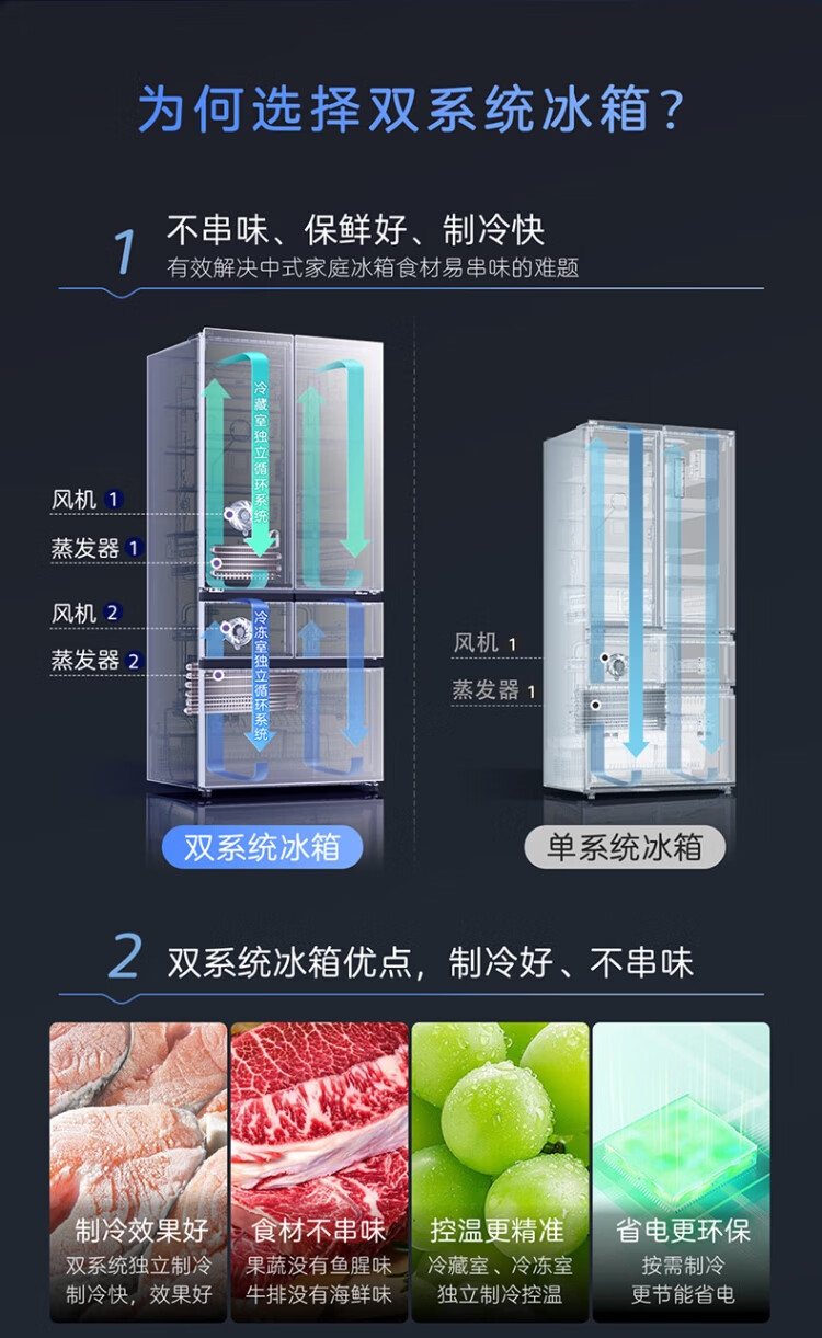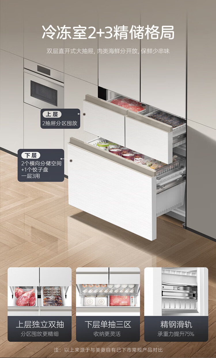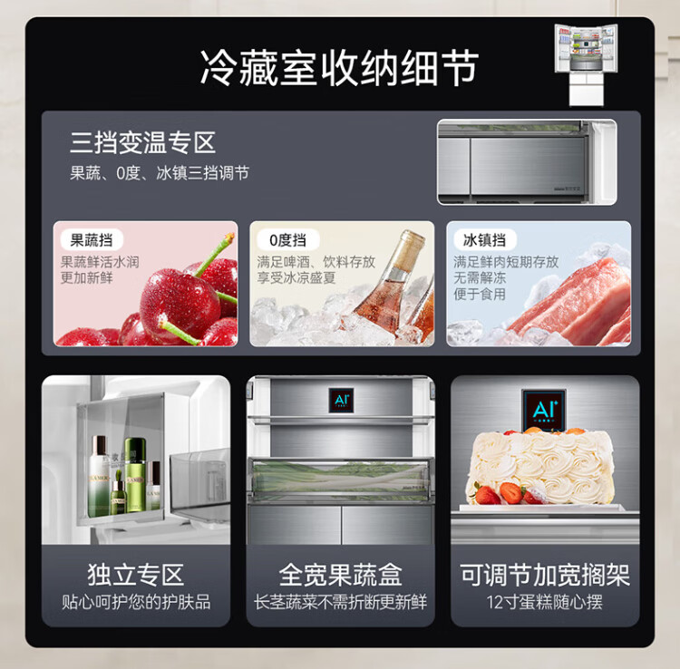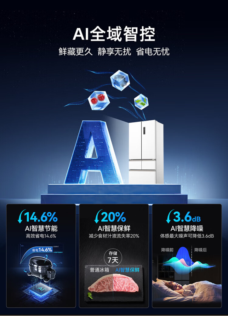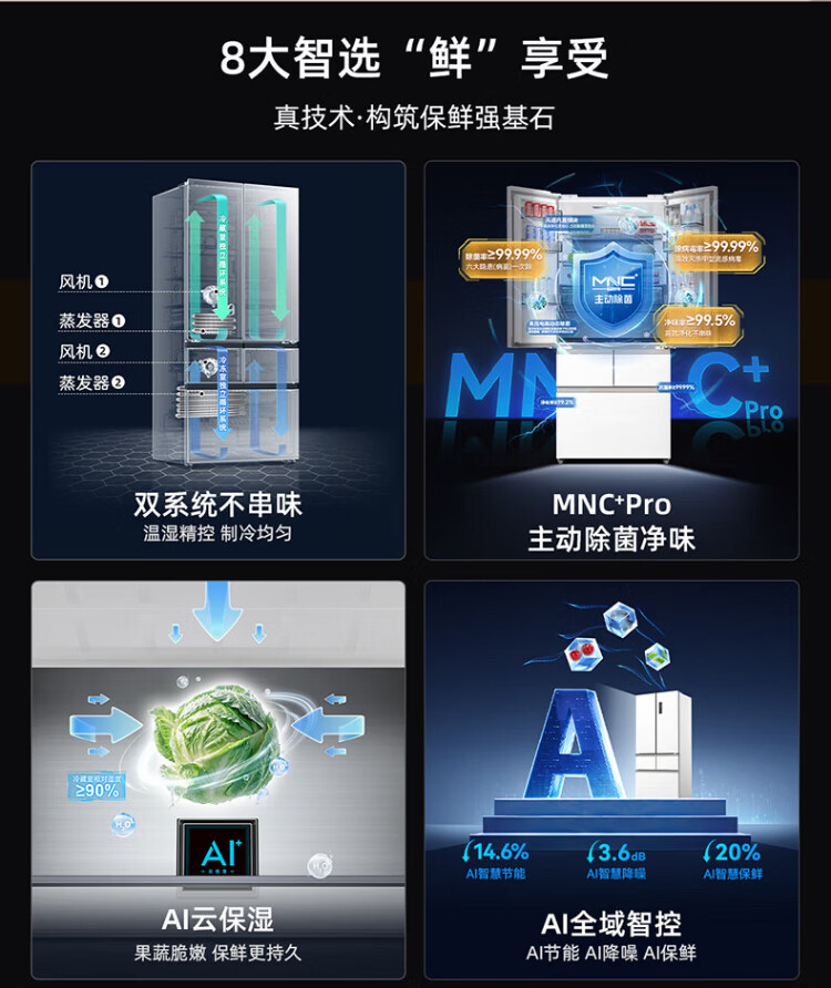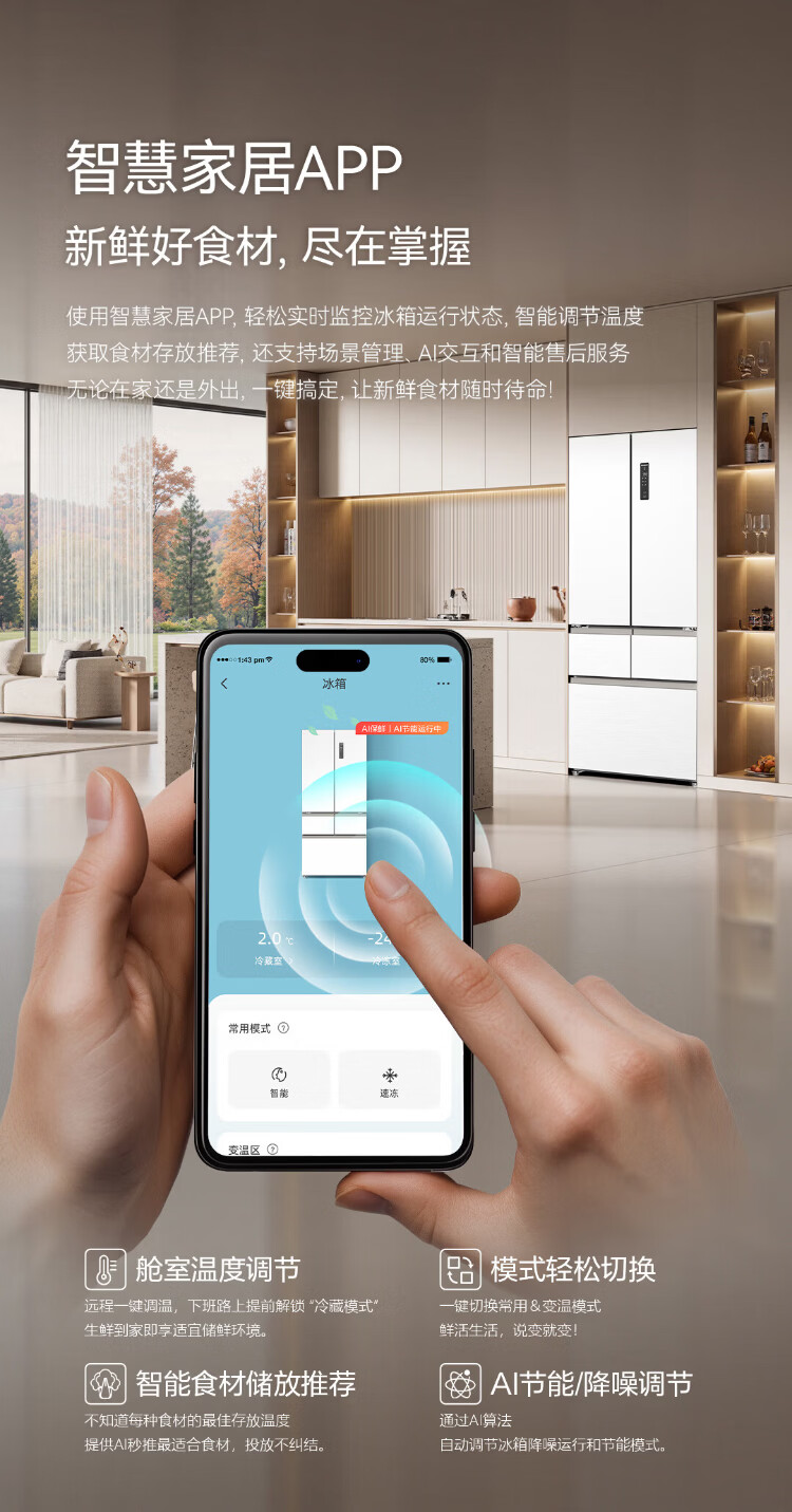 MeiLing AI smart refrigerator 507 liter French door thin zero-flat embedded dual system dual cycle active sterilization and deodorization first-level air cooling subsidy white refrigerator AI refrigerator BCD-507WFPU9CZX-white