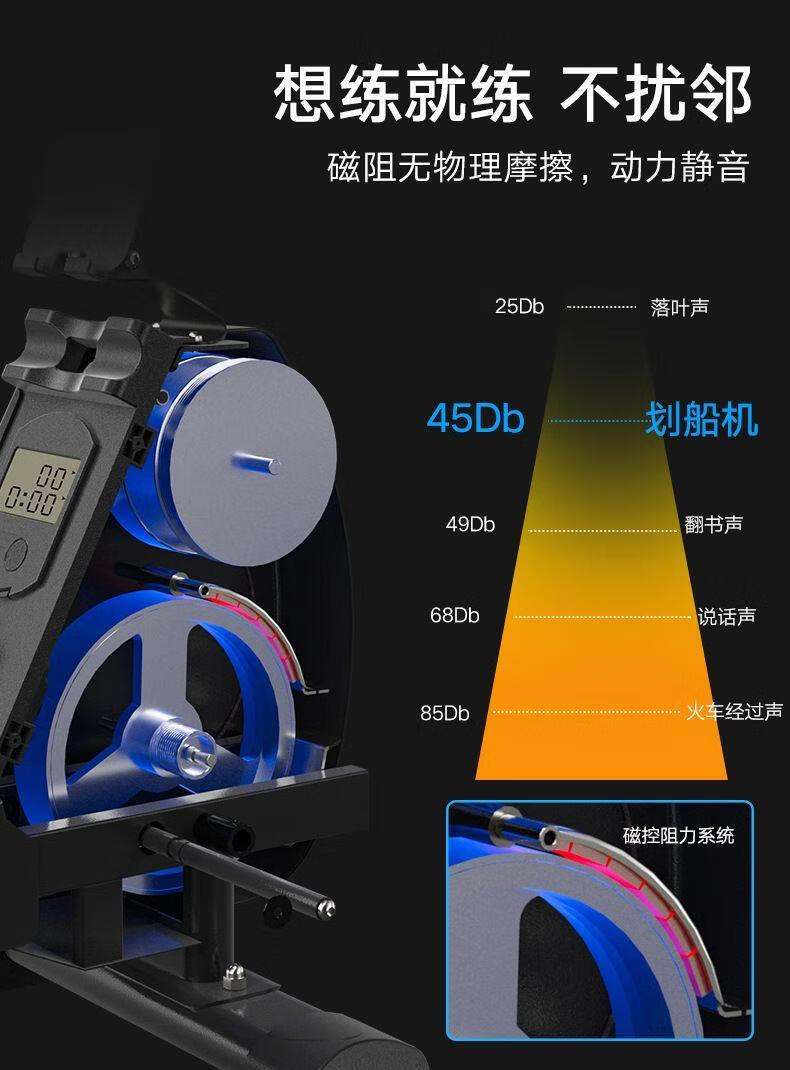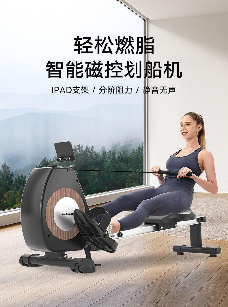 Rowing machine home fitness equipment indoor magnetic control silent folding magnetic control resistance paddling exercise waist and abdomen black wood grain magnetic control silent rowing machine