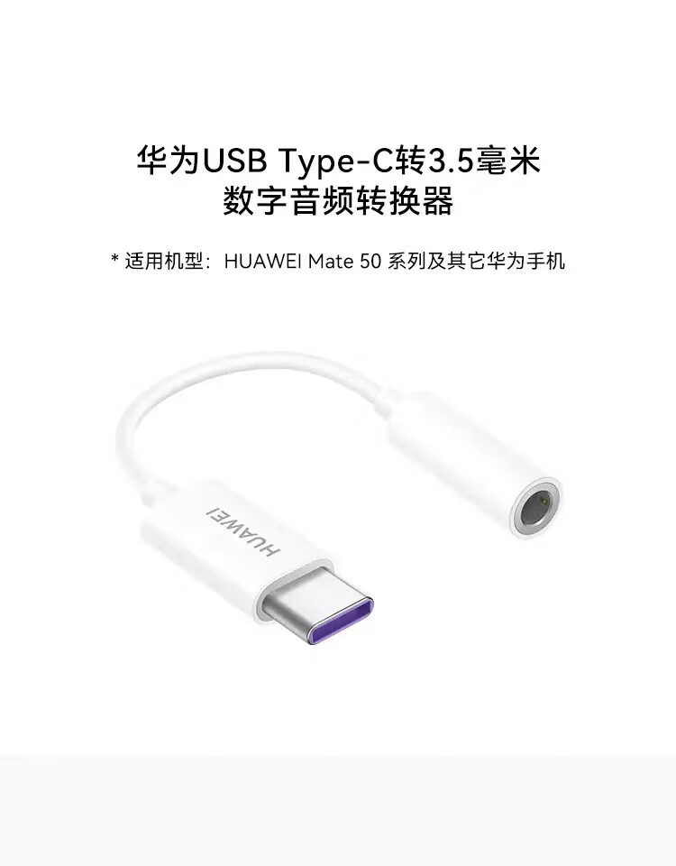 Huawei (HUAWEI) original CM50 adapter Type-C headphone to 3.5mm Mate60Pro+/Mate50/40Pro/p50/p60Pro (disassembly and simple installation) CM50 digital audio adapter