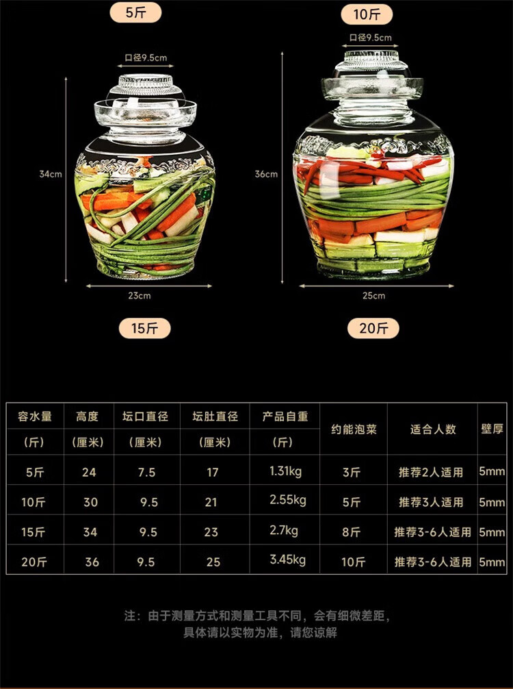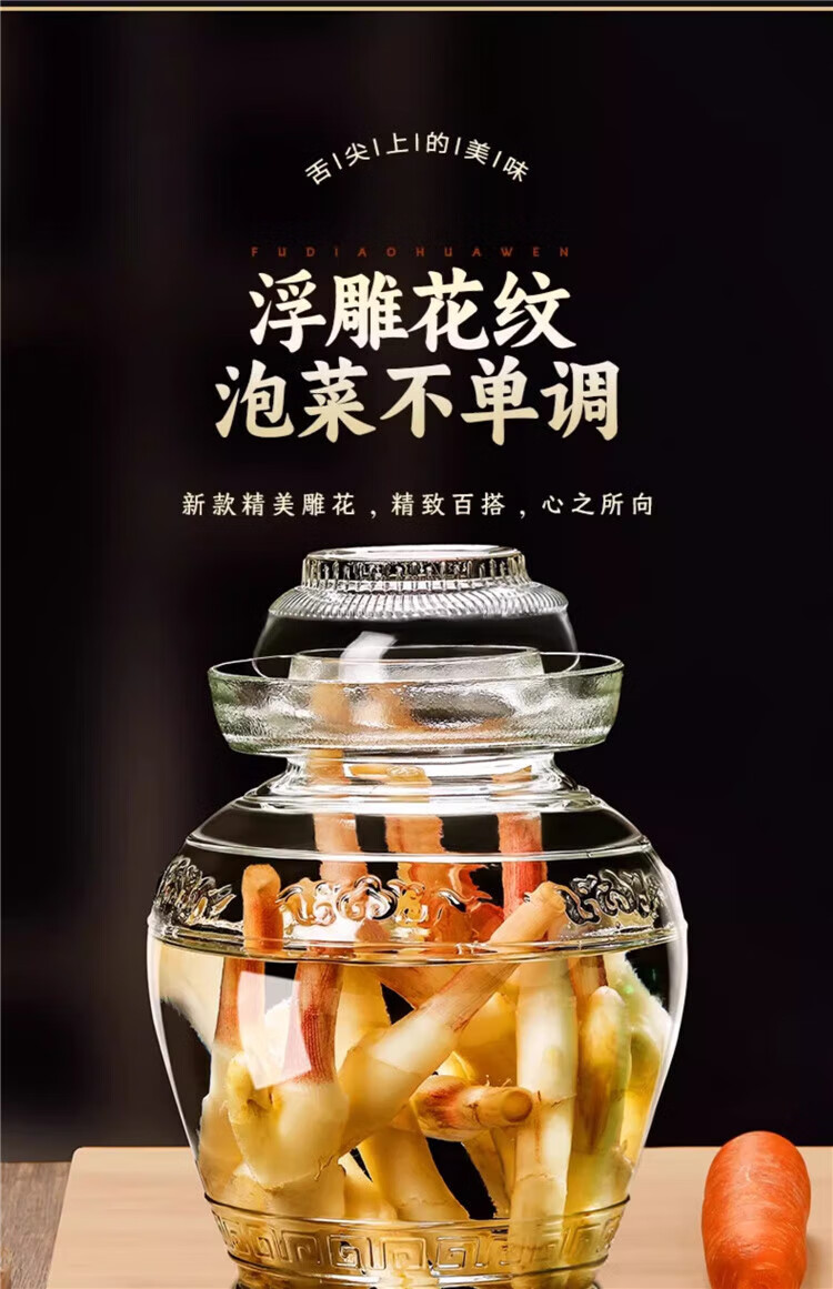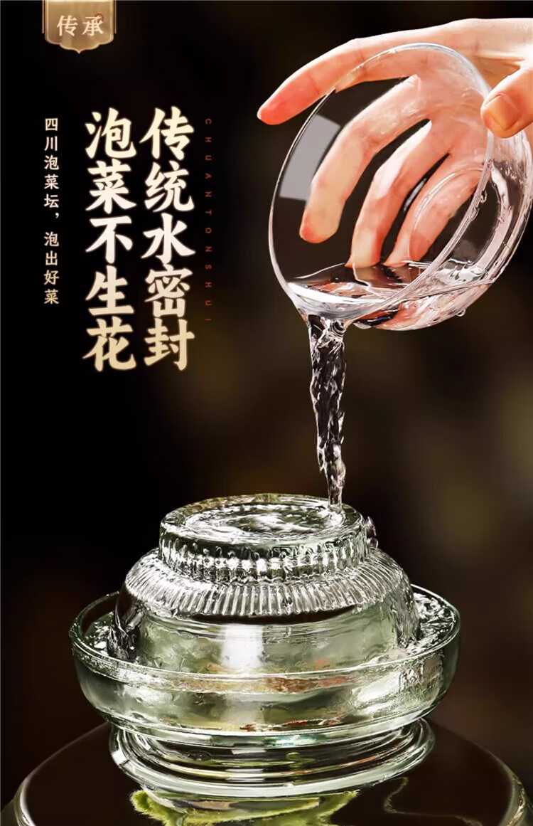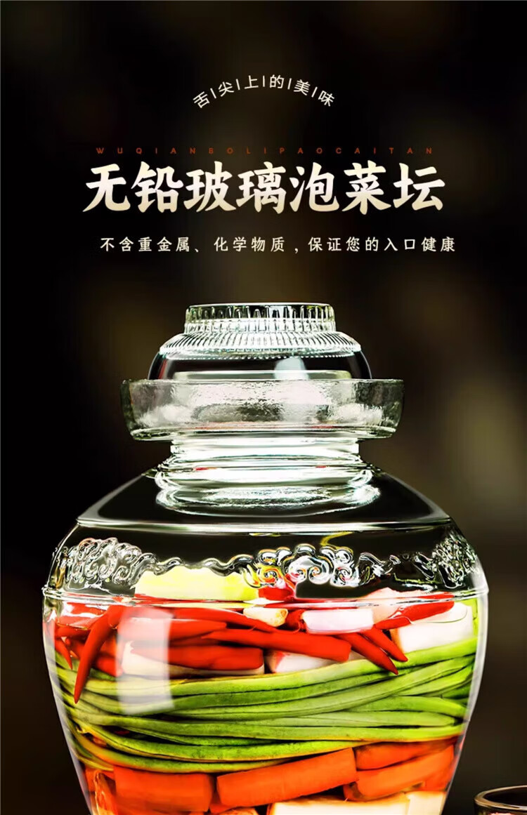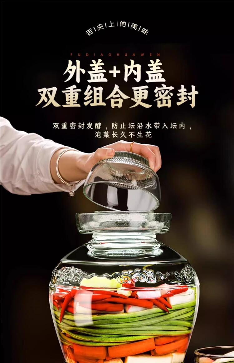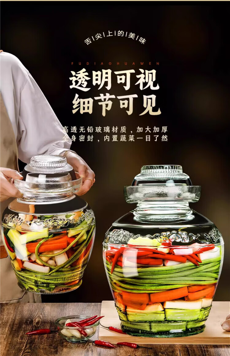 Pickle Jar Household Glass Thickened Pickle Jar Sealed Pickle Jar Pickling Capacity Sichuan Pickle Pickle Water Capacity 15 catties Inner Cover Pickle Cotton Brush 7.