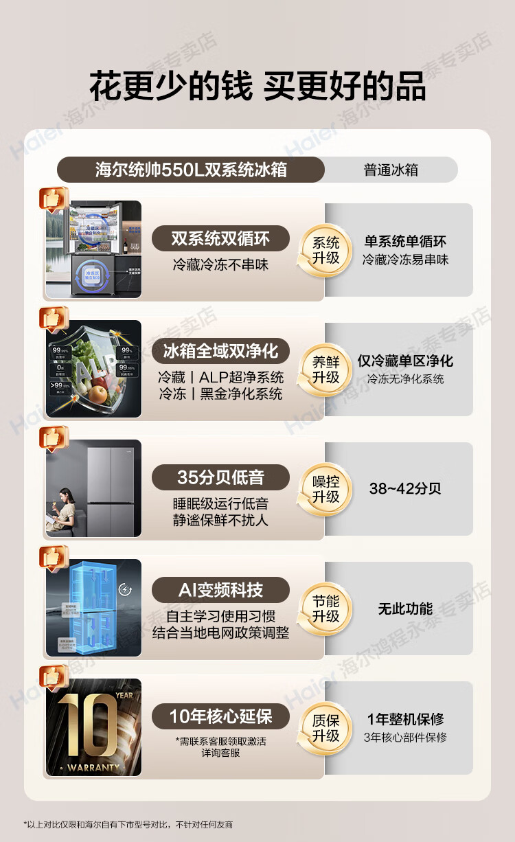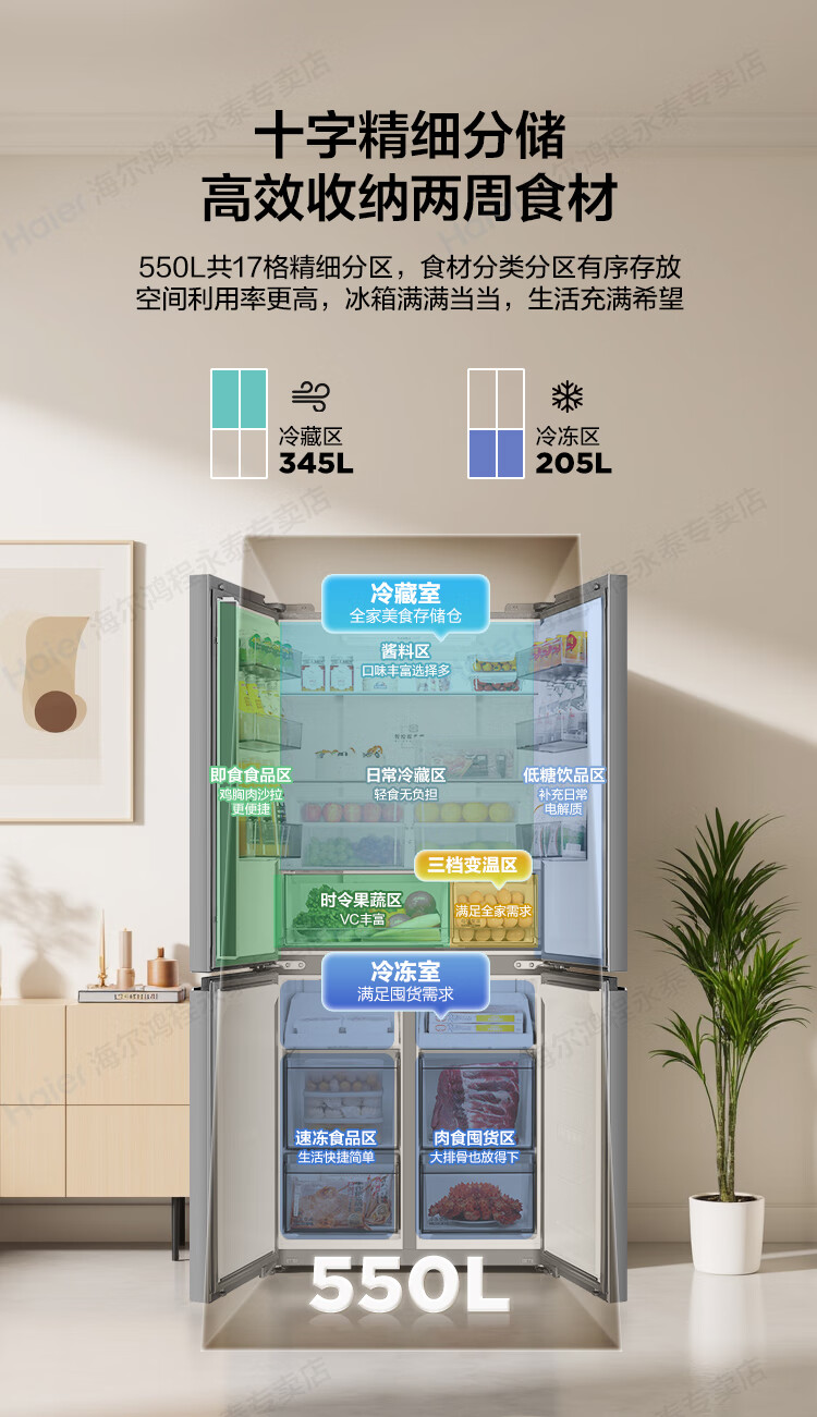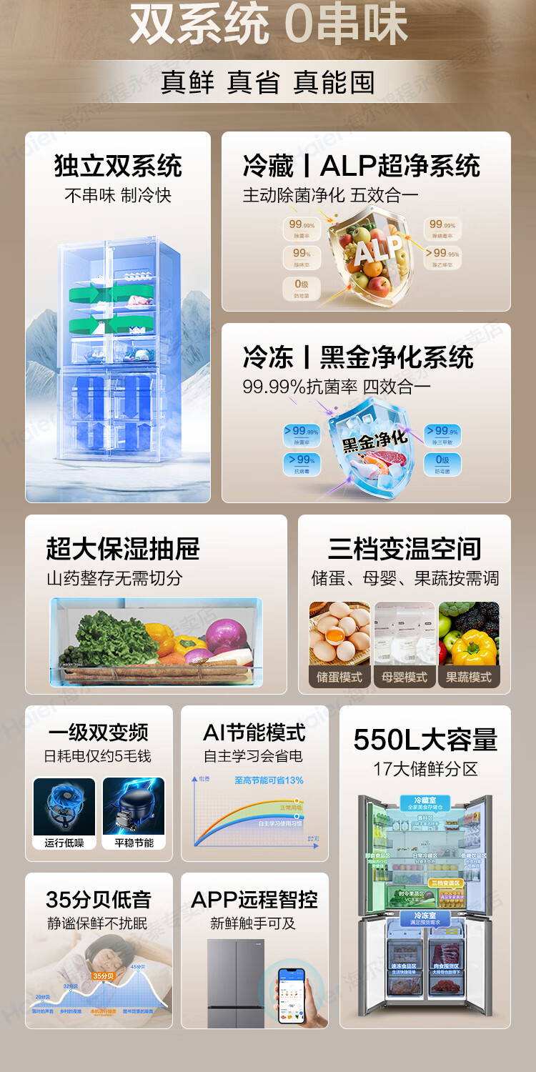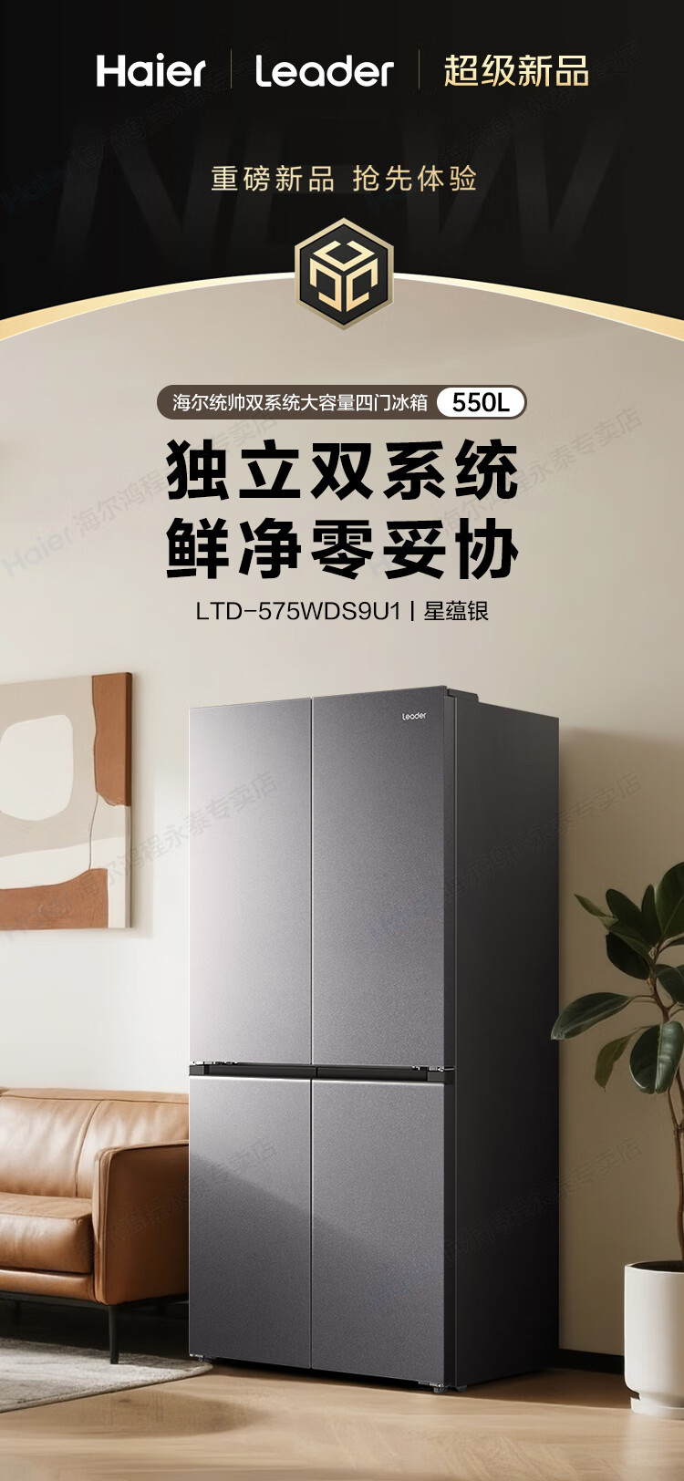 Haier produces refrigerator 575T dual system four-door cross door first-class energy efficiency dual frequency conversion dual cycle air-cooled frost-free household appliances super large capacity Leader series refrigerator 575T type + independent dual system dual cycle + ALP active purification and sterilization