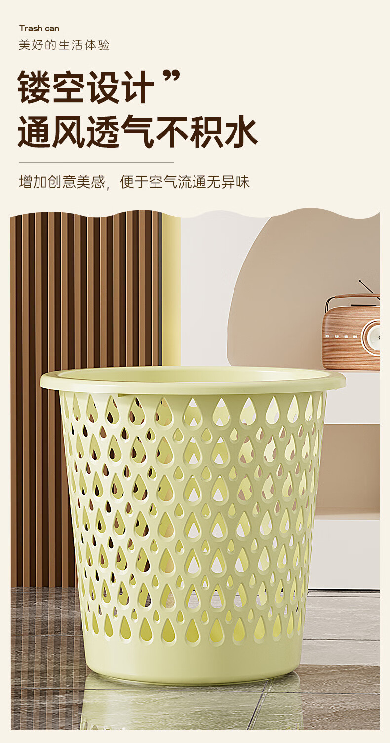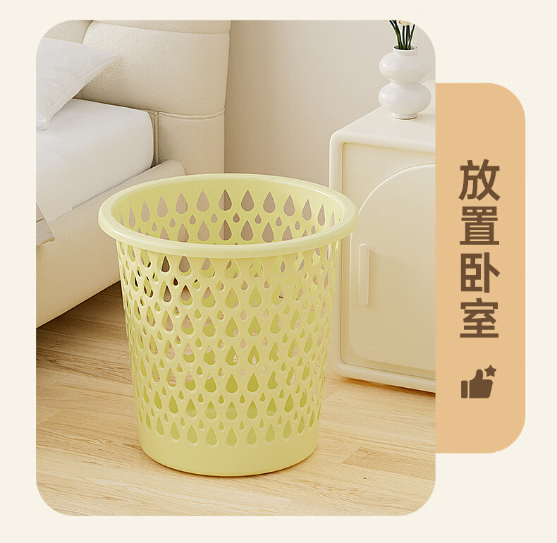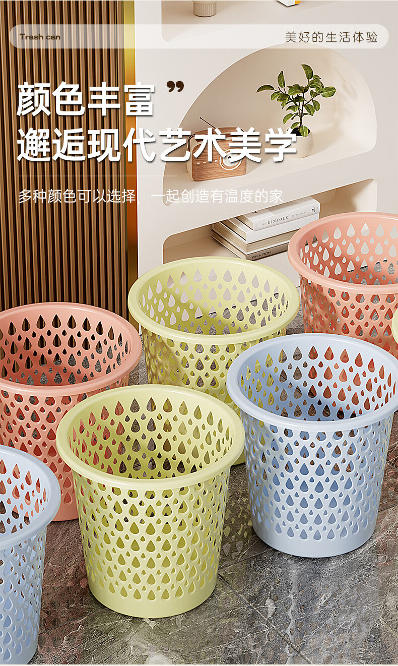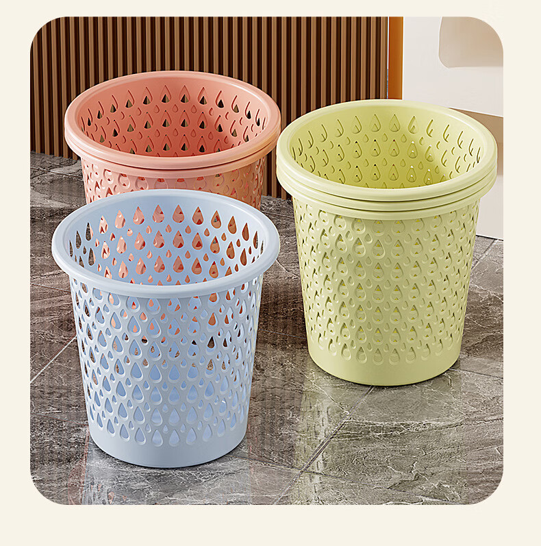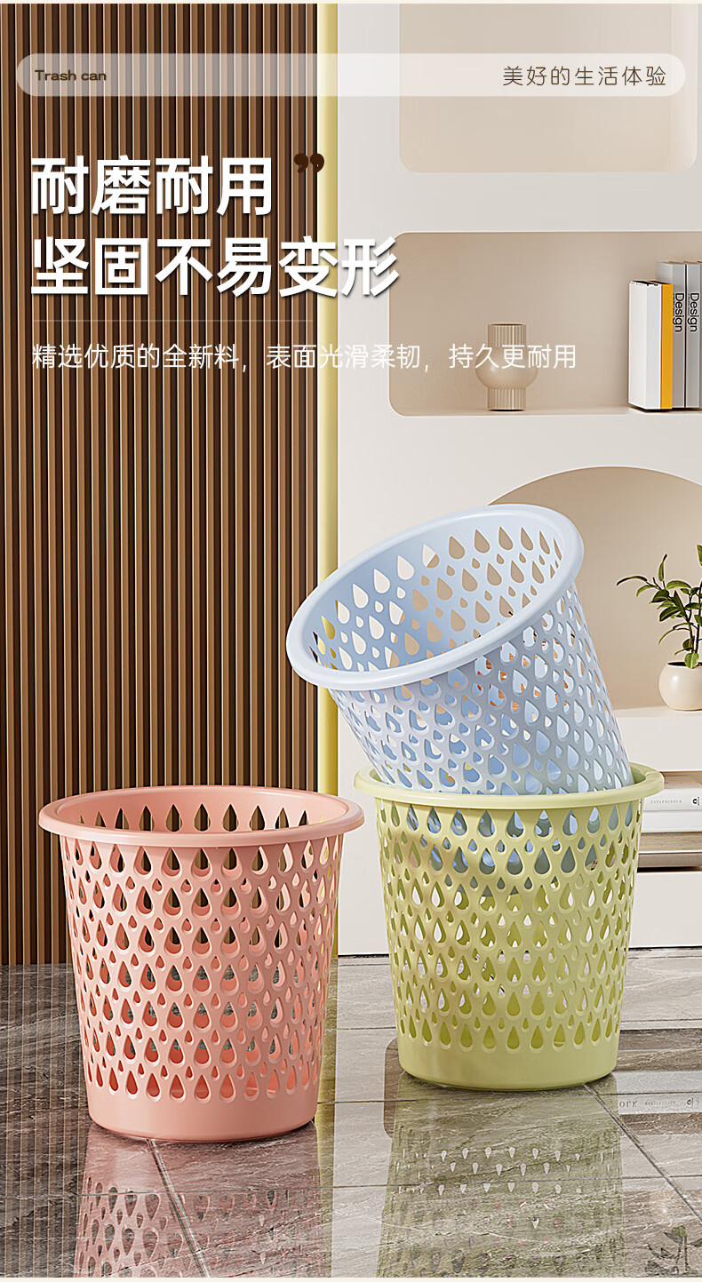 2025 New Trash Can Home Living Room Office Paper Basket Thick Plastic Hollow Dormitory Trash Basket Hot Style Green One