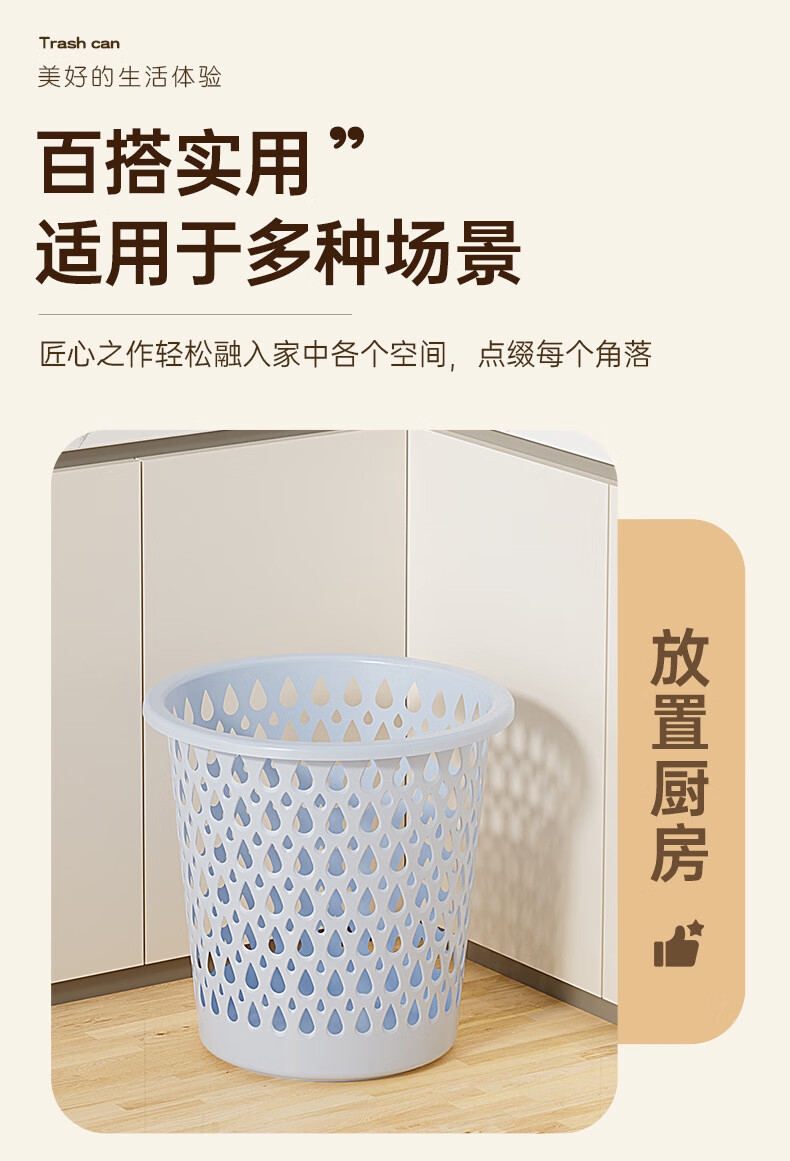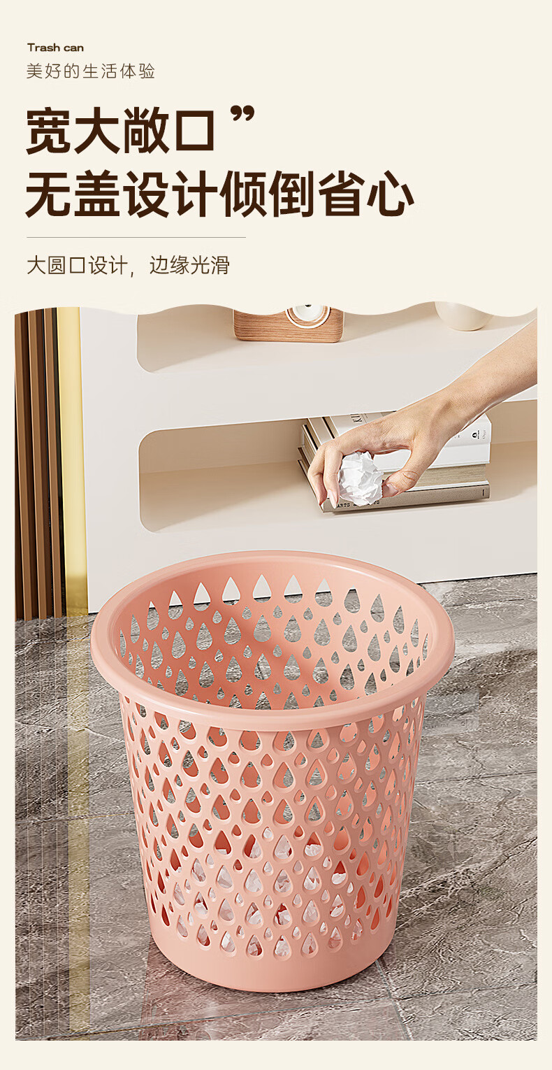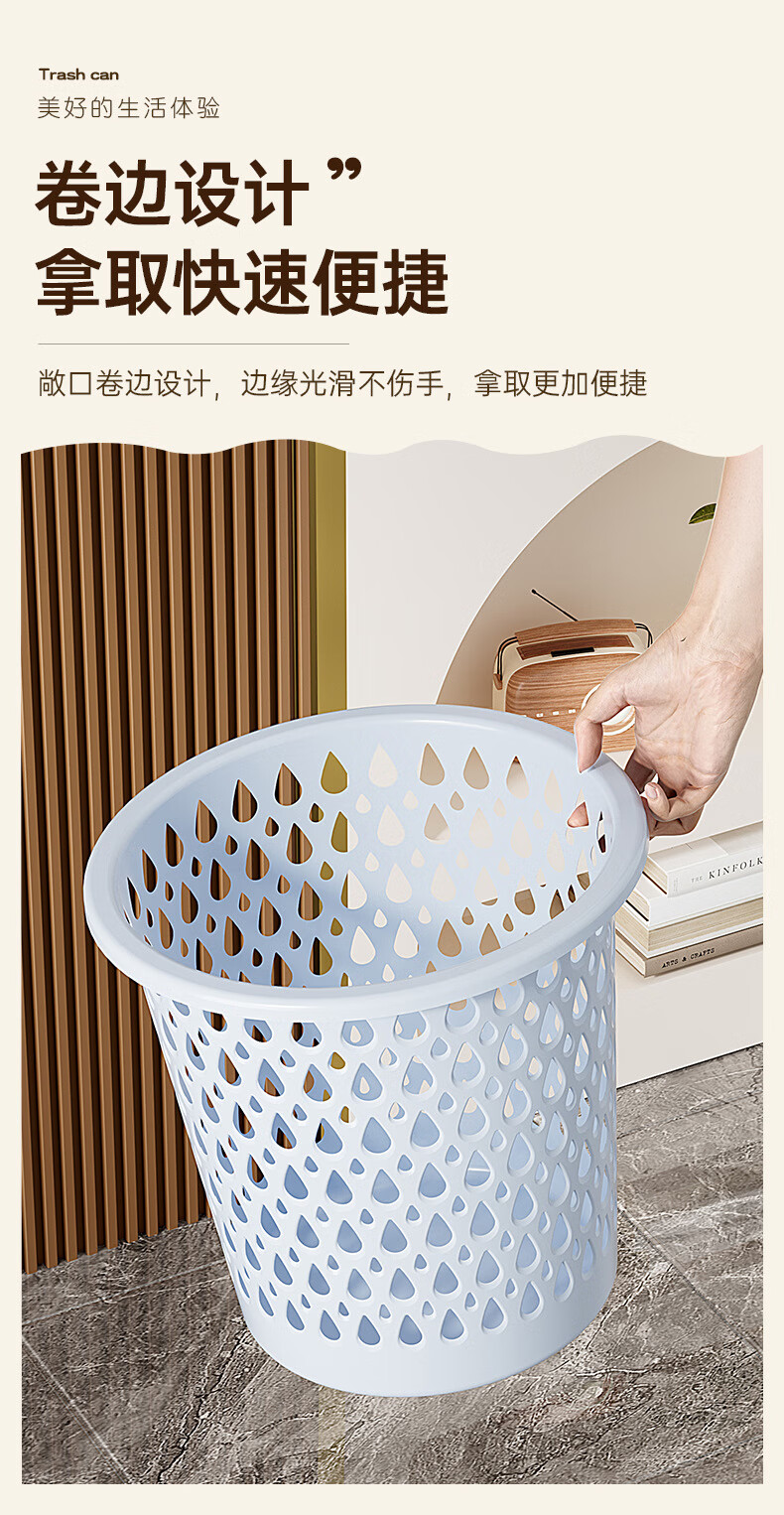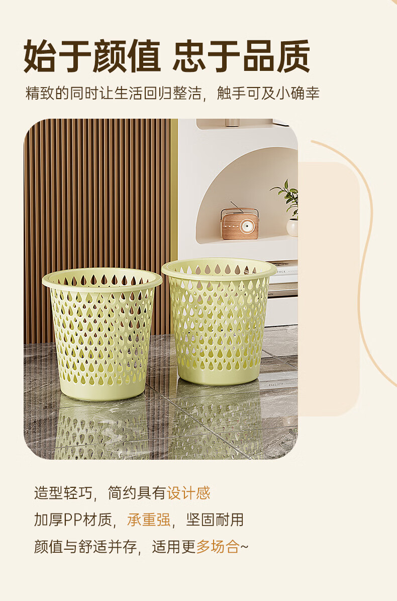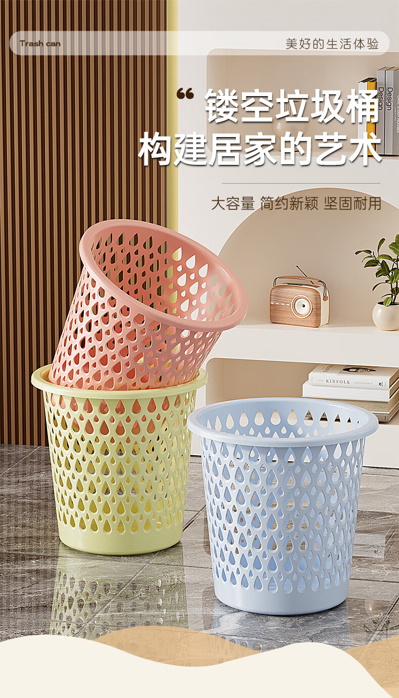 2025 New Trash Can Home Living Room Office Paper Basket Thick Plastic Hollow Dormitory Trash Basket Hot Style Green One