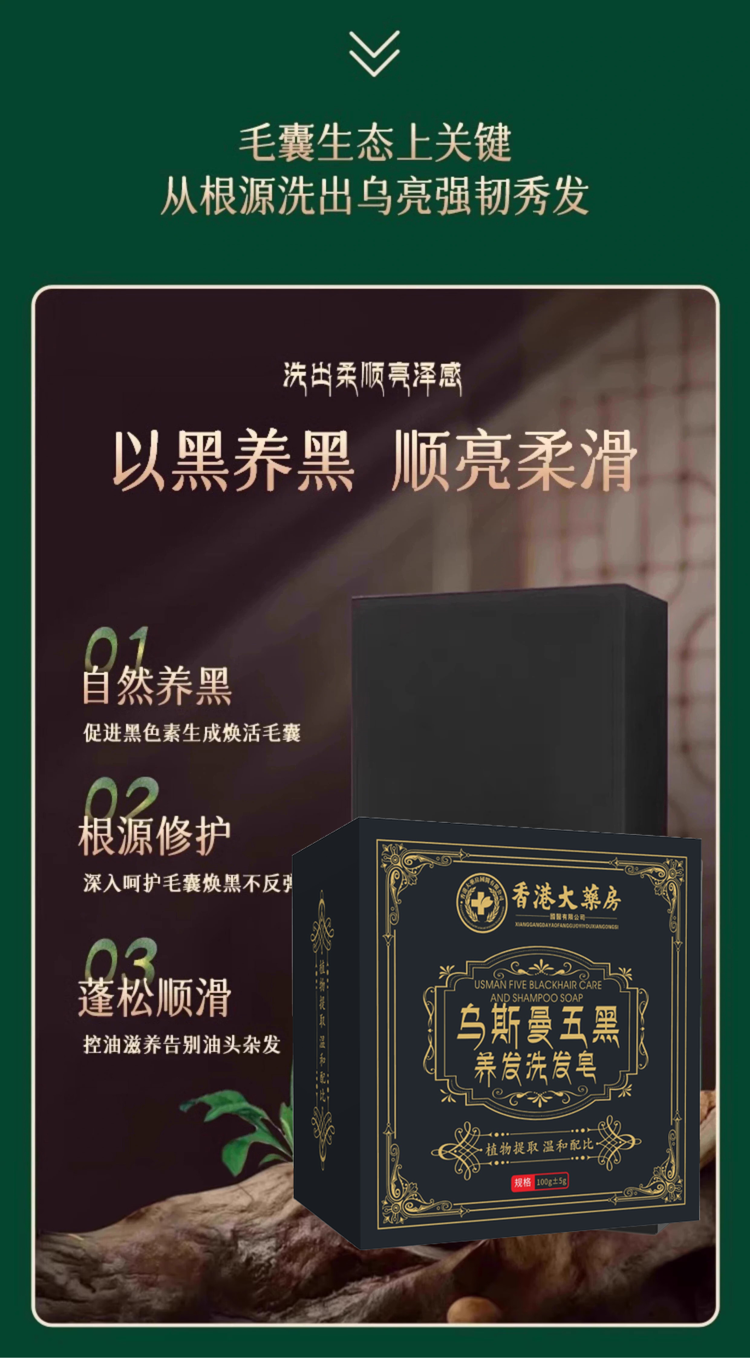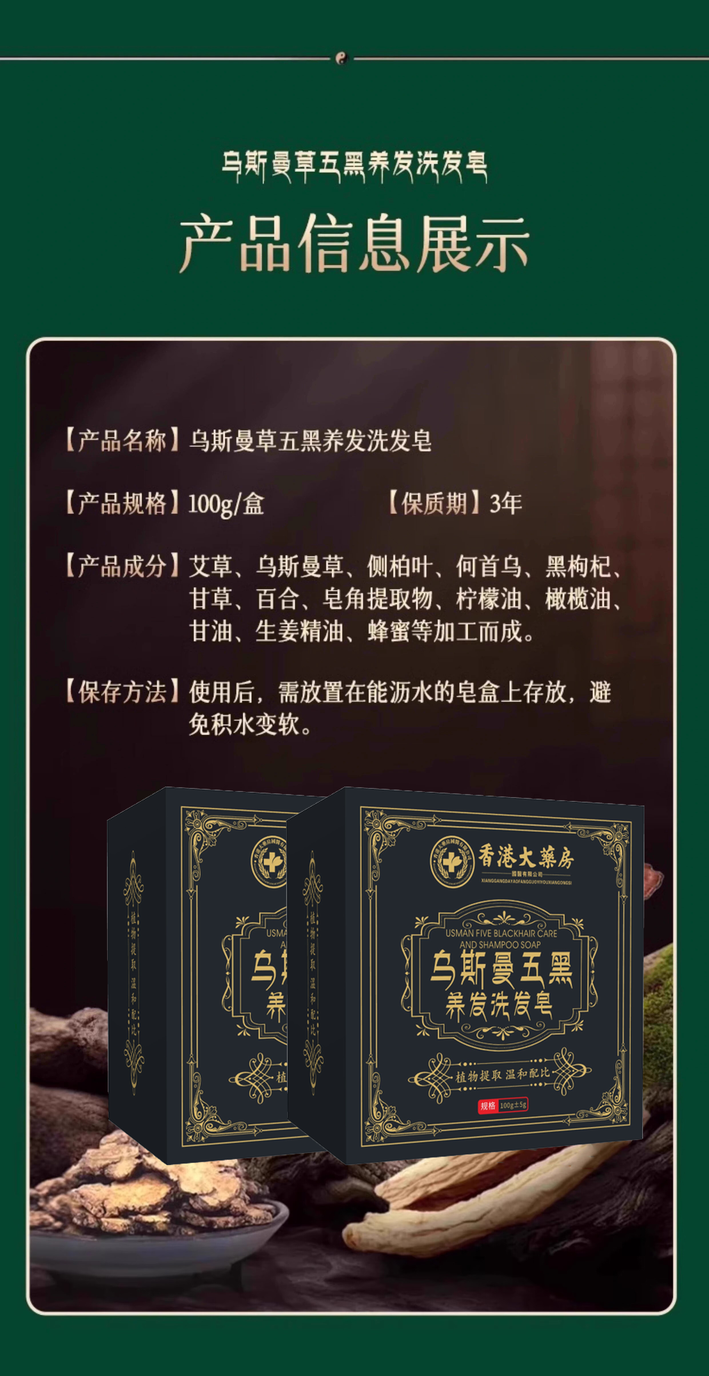 Hong Kong Pharmacy One Wash Natural Black Xinjiang Usman Grass Shampoo Soap Polygonum Multiflorum Leaf Chinese Medicine Handmade Shampoo Soap y 1 Box Trial Pack Gentle Cleansing Does Not Harm the Scalp
