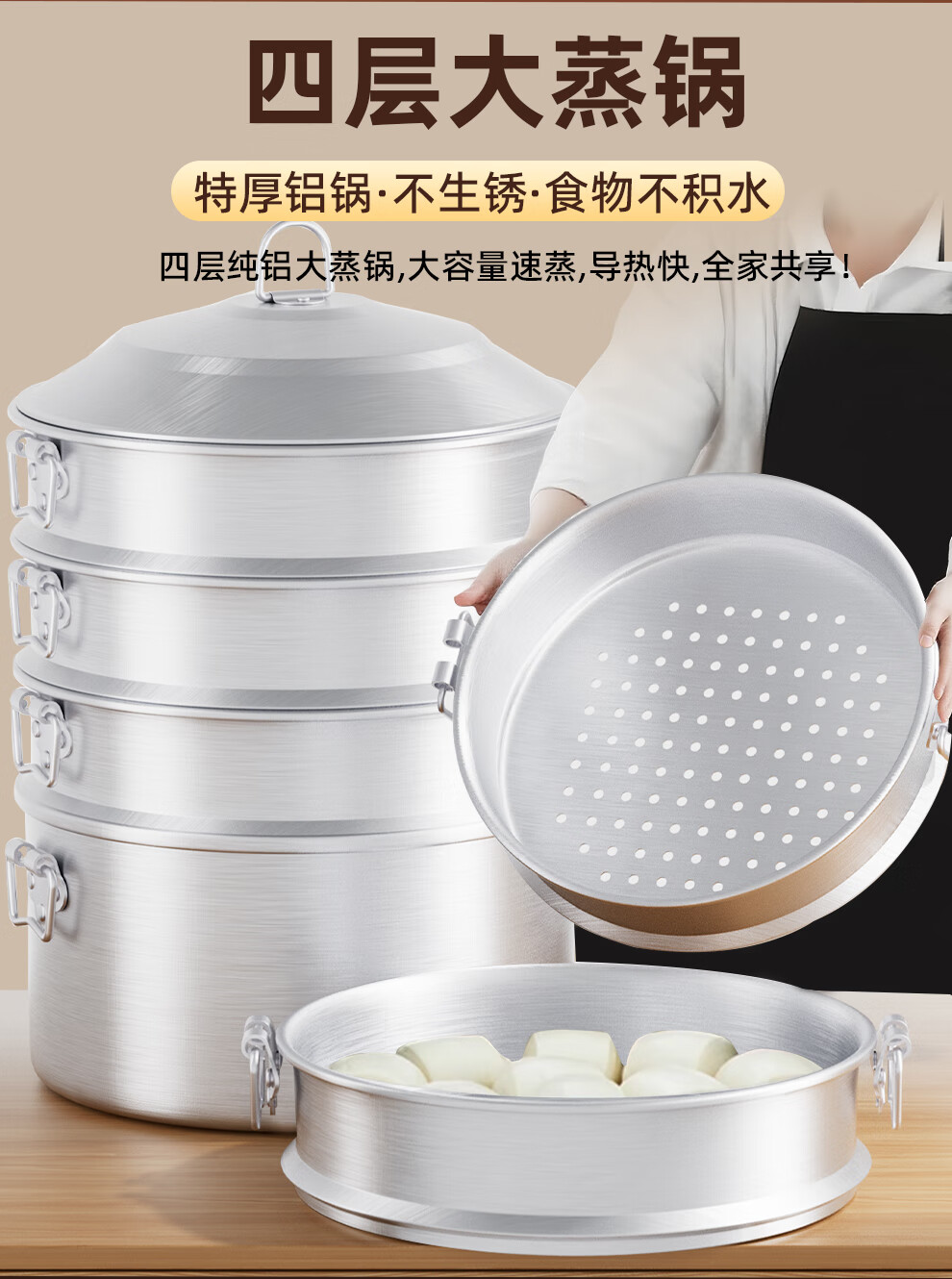 Yuniao multi-layer pure aluminum large steamer, thickened four-layer steamer, steamed buns, steamed buns, steamed fish, three-layer large-capacity aluminum pot, stew pot, old-fashioned large aluminum pot, four layers 28cm