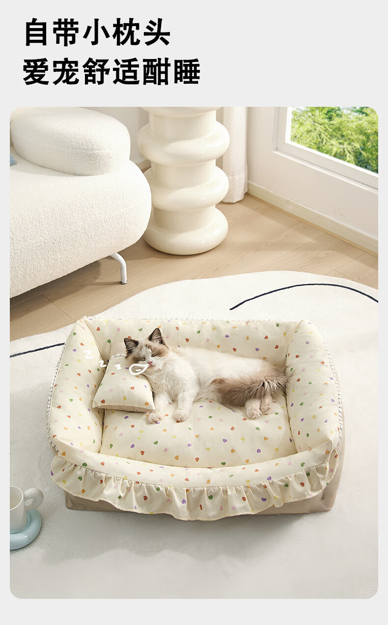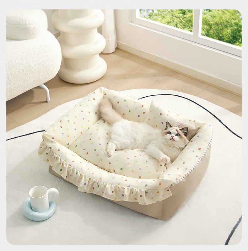 Jin Riman Princess Sofa Cat Dog House Pet Sleeping Warm Mattress All-in-One for Play and Sleep Removable and Washable Cute Princess Bed Dog House 52*37cm