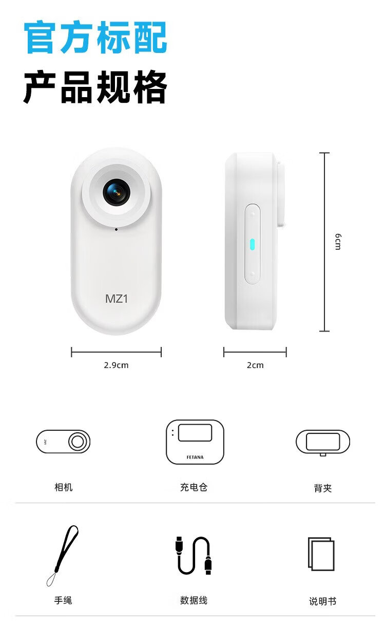 FETANA Thumb Action Camera HD Anti-Shake Pocket Camera vlog Travel Handheld Cycling Motorcycle Driving Recorder Helmet Chest Magnetic Body Camera First View MZ1 Black Magnetic Suit Charging Case + Back Clip + Magnetic Halter 128G Memory Card