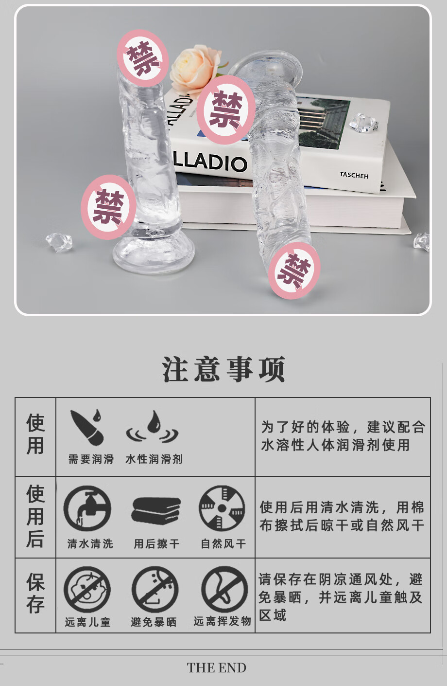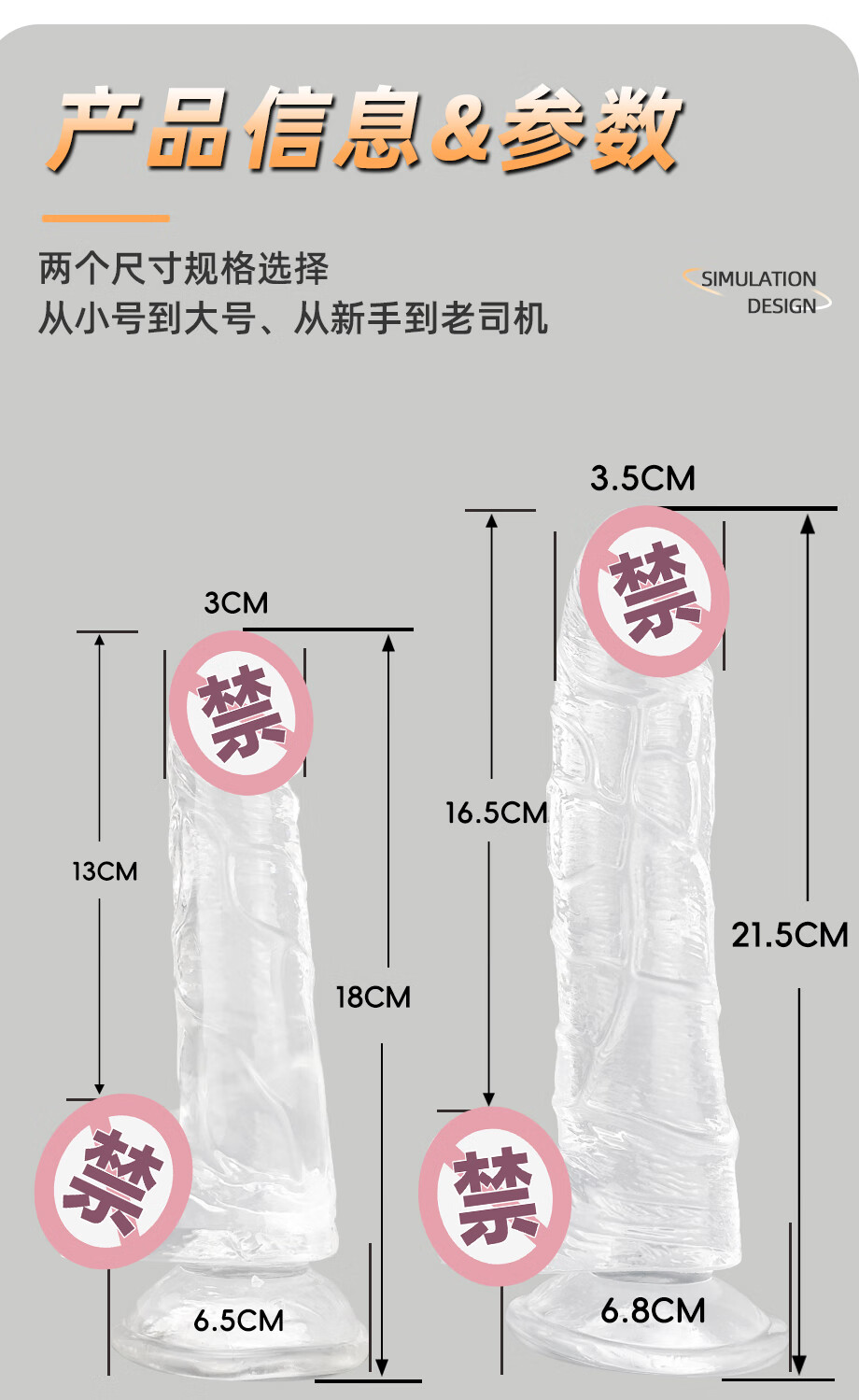 SNAILAGE dildo female special masturbation device female penis transparent crystal rod toy vagina pleasure device sex toy large size transparent (thickness 3.5cm, total length 21.5cm)