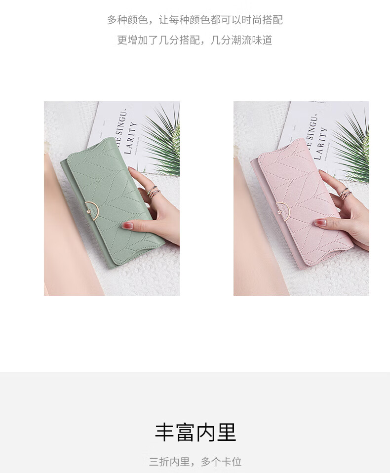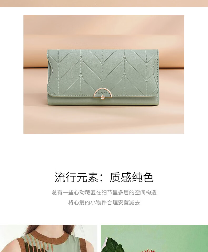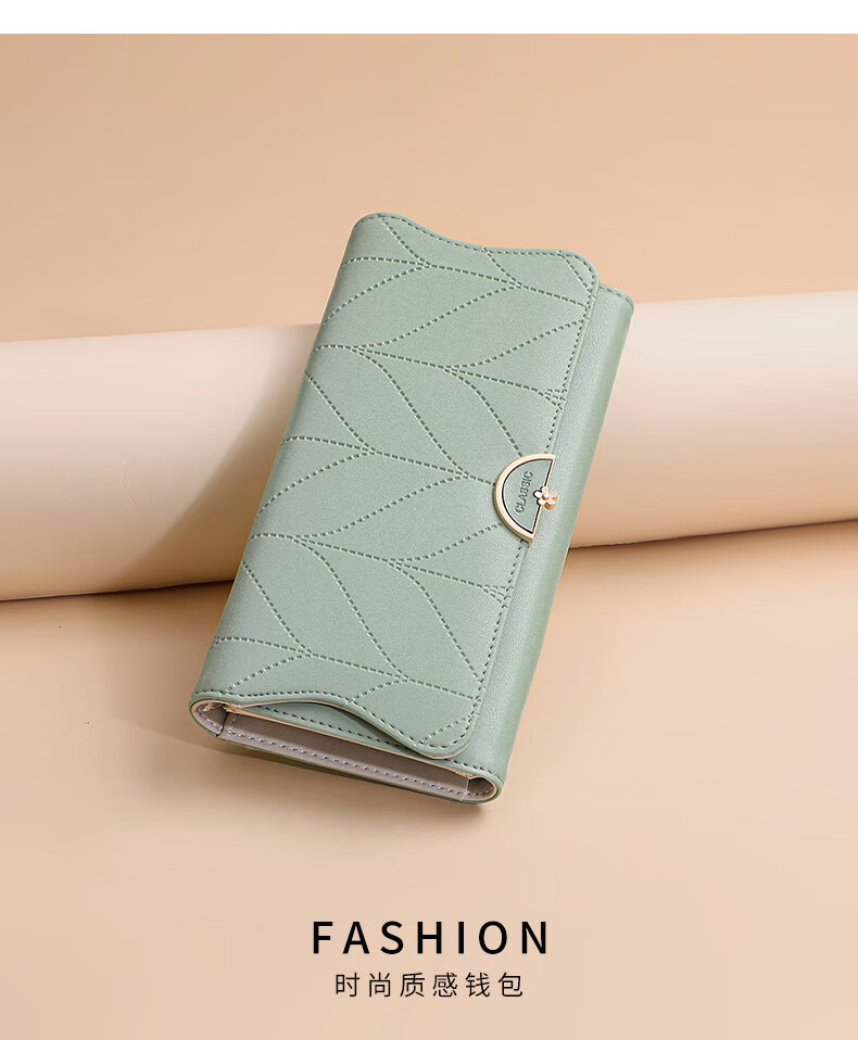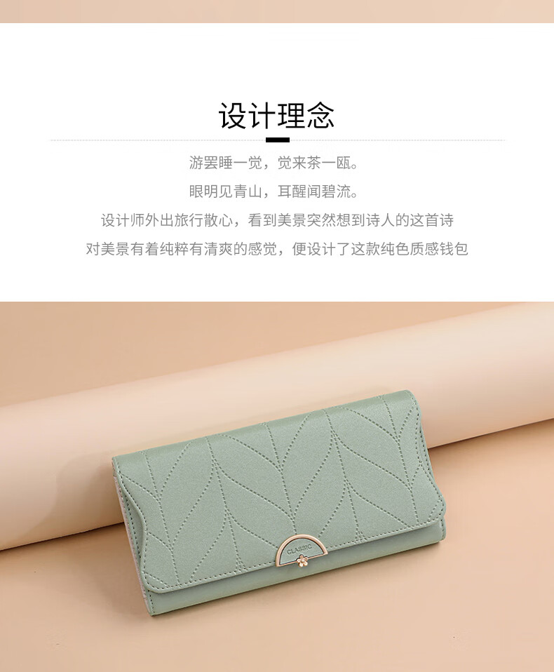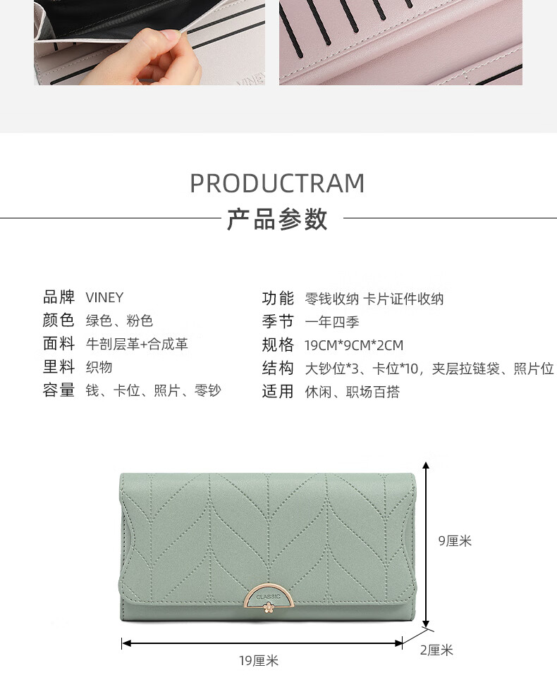 Viney cowhide women's wallet large capacity wallet long light luxury wallet foreign style student coin purse multi-card slot clutch bag matcha green fashion brand high-end versatile casual