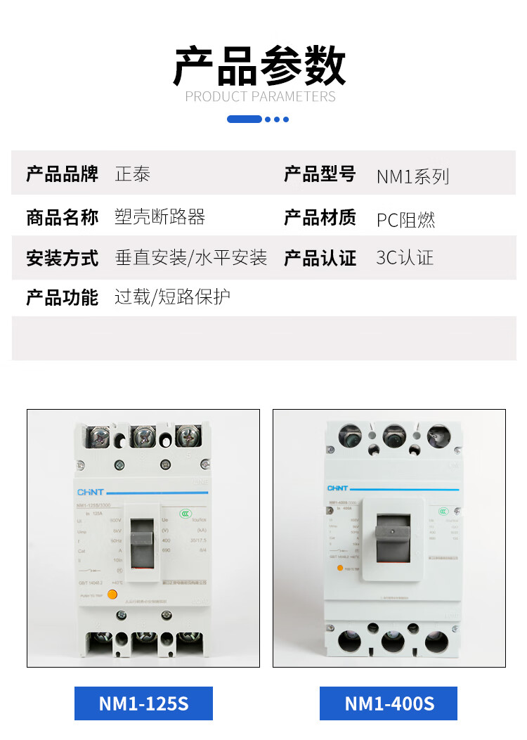 Chint molded case circuit breaker NM1-63S 125S 250S 400S 630S 800A 125 NM163S/330010A