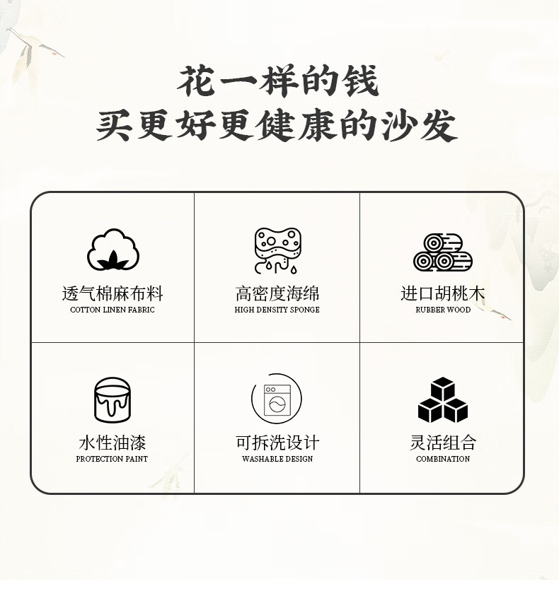 Woodisen walnut solid wood sofa home living room storage sofa small apartment winter and summer dual-use straight sofa with carvings 2.1 meters straight three-seat single sofa - no cushions