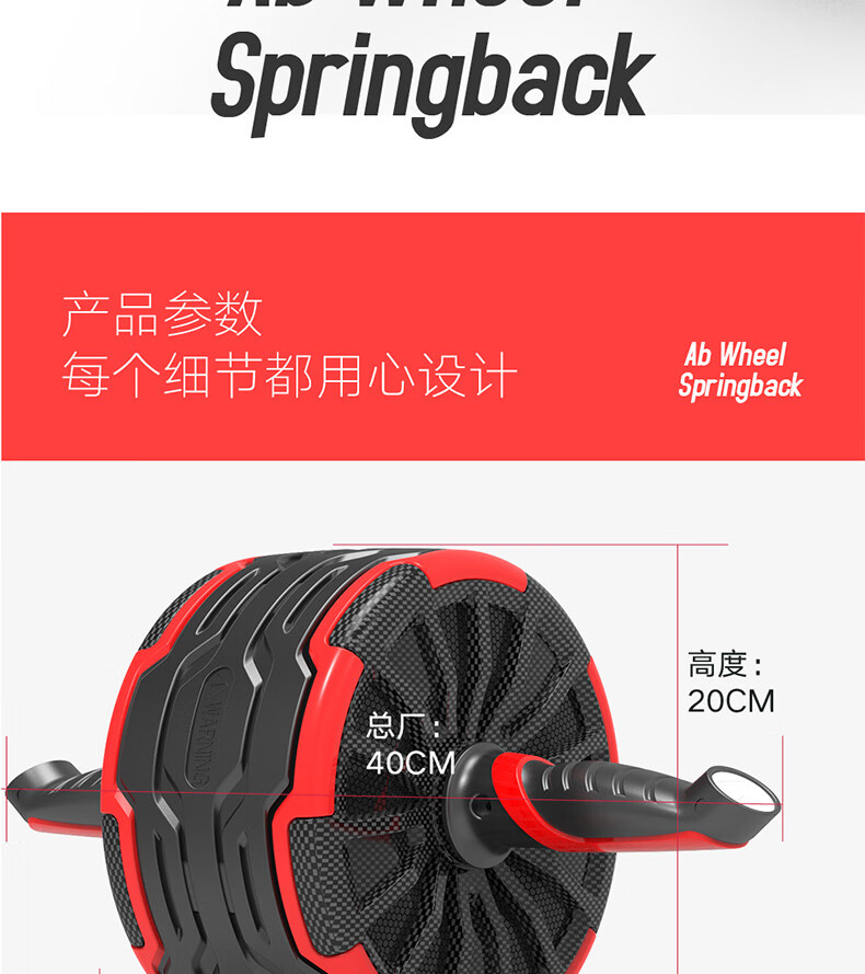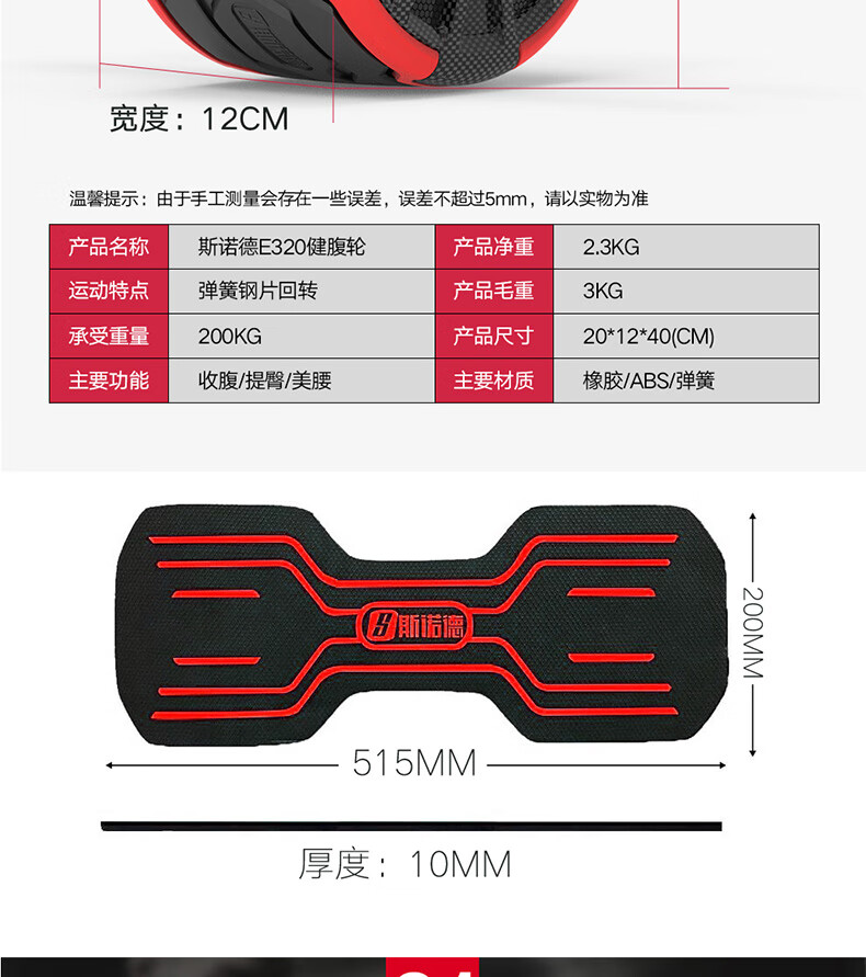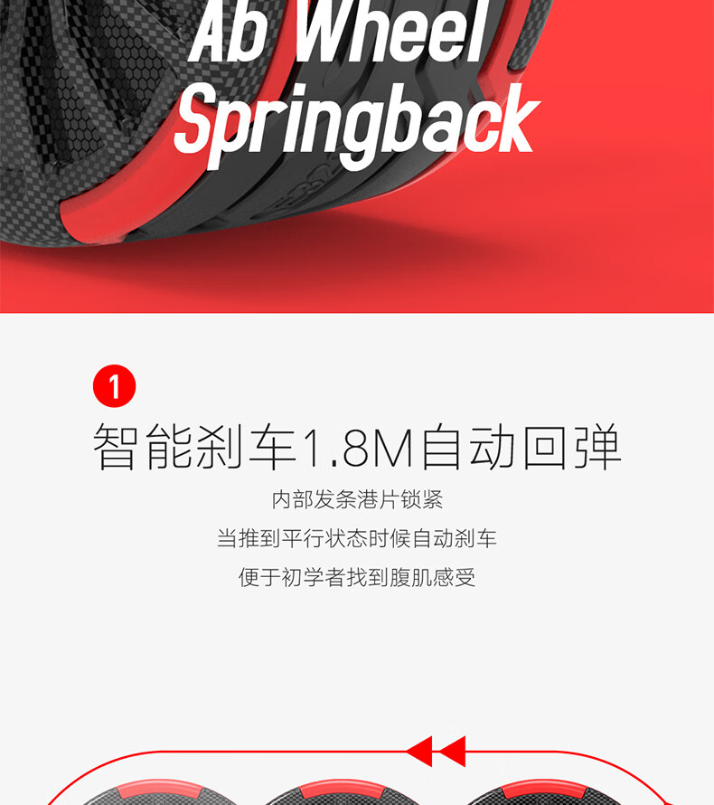 Snode abdominal wheel abdominal muscle wheel household roller giant wheel automatic rebound home fitness equipment E320 Chinese red_steel spring rebound_automatic rebound