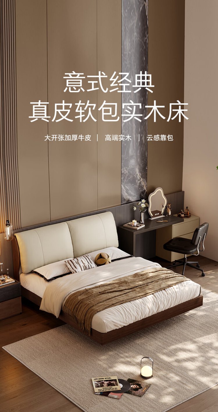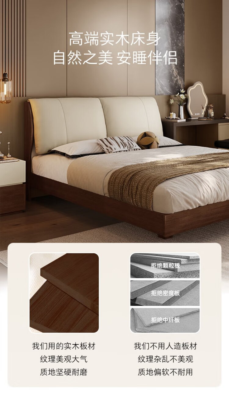 Gujia Home Jingdong Exclusive Furniture Italian Solid Wood Bed Medieval Style Double Bed Natural Rubber Wood Soft Covered Bed 9269 Coco Black Flagship Tall Style 1.8*2 Meters