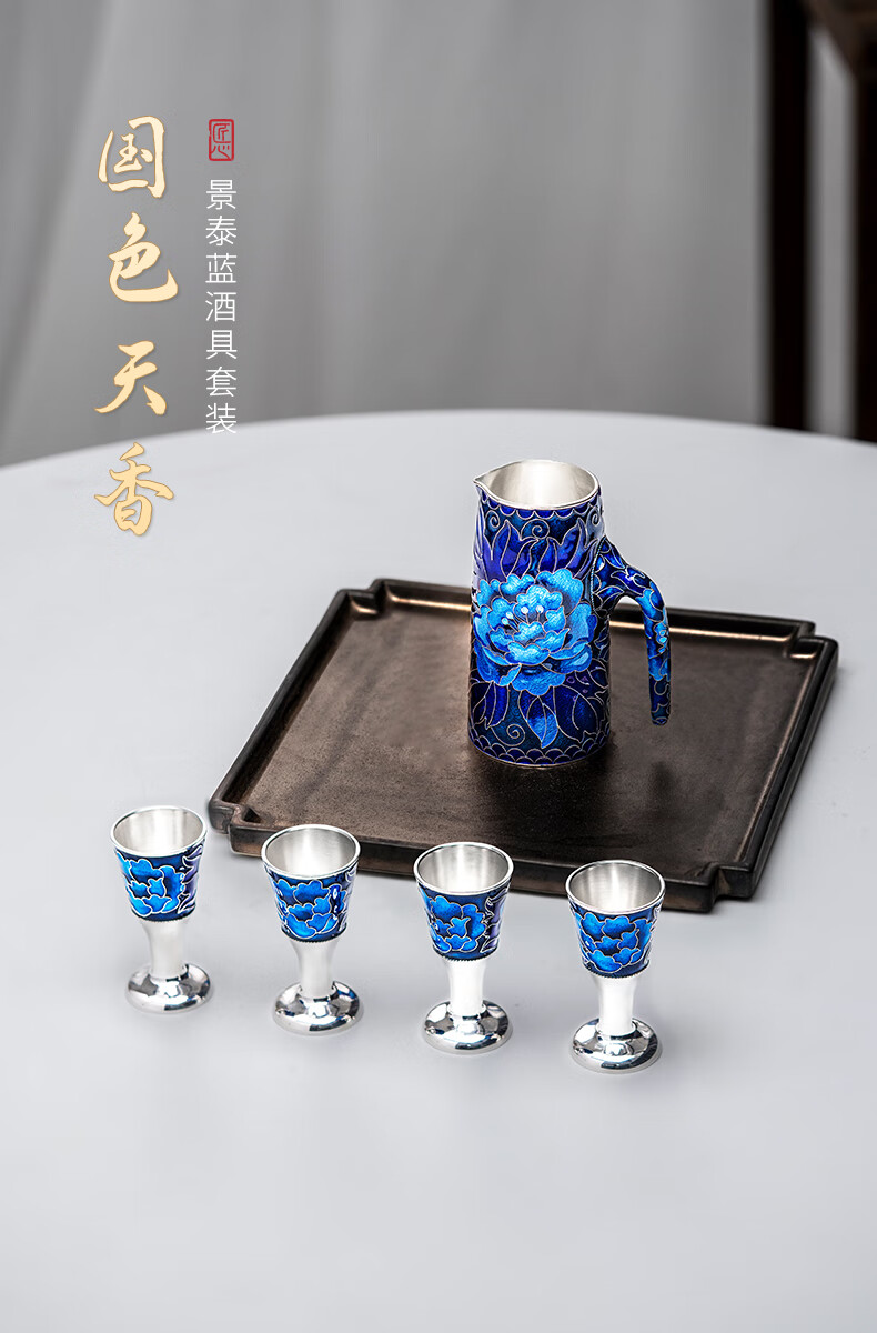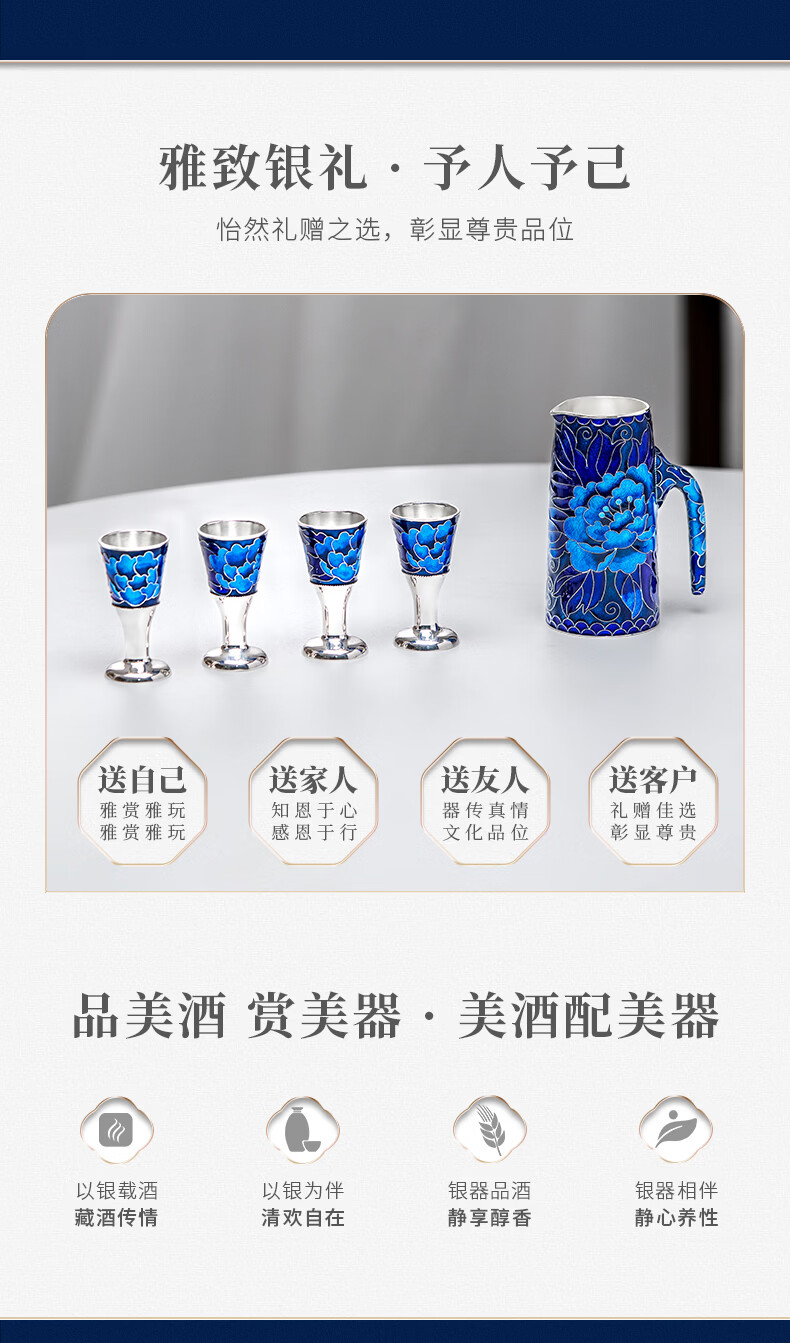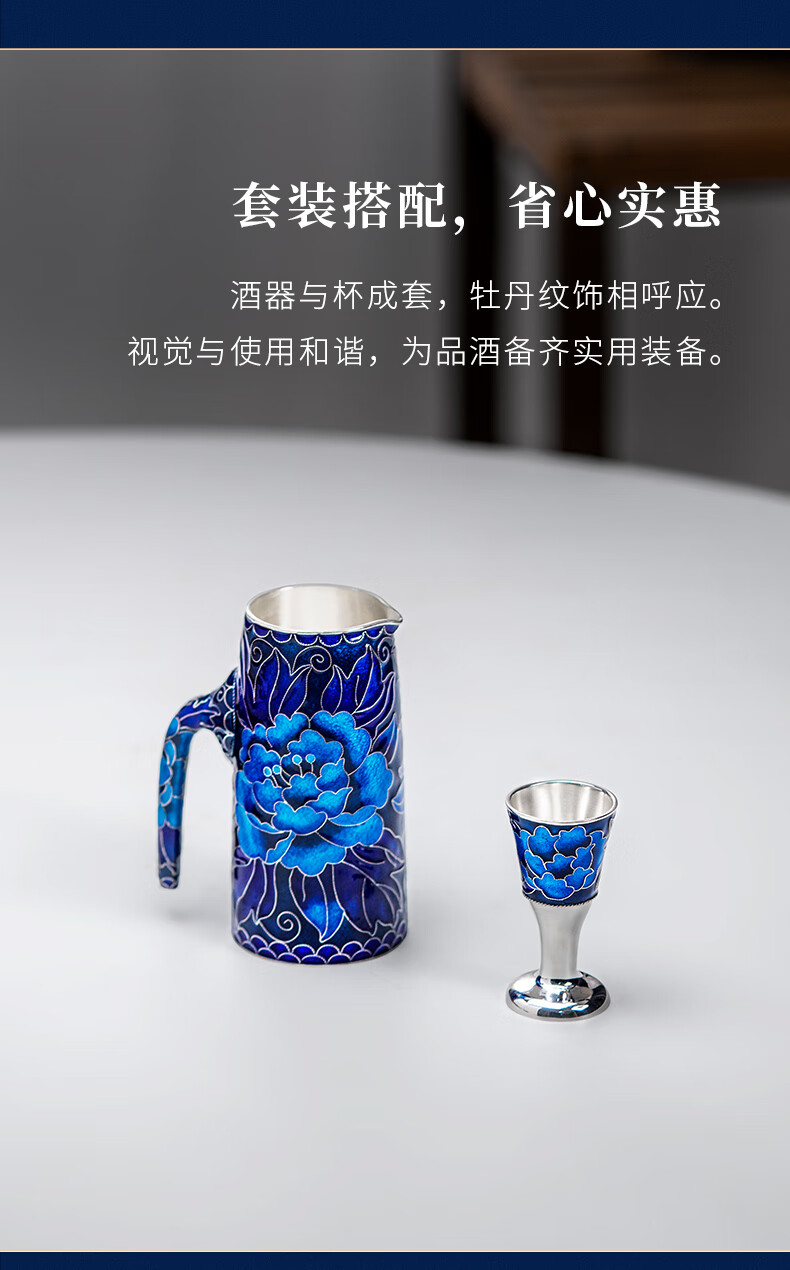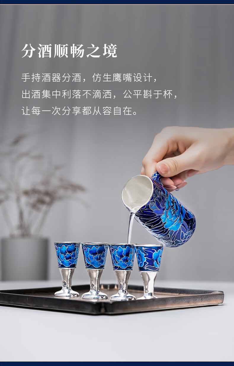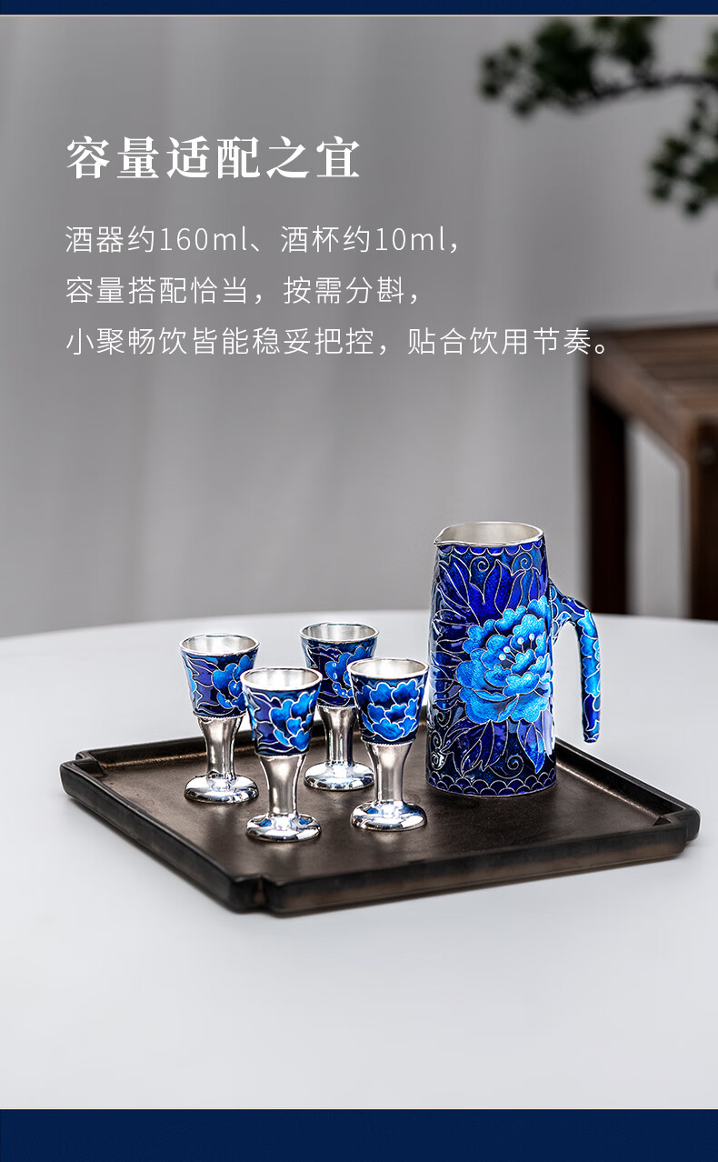 Guiyintang cloisonne filigree sterling silver wine set original peony pure silver 999 points wine set silverware high-end wine set gift set 1 pot 1 cup + certificate + gift box