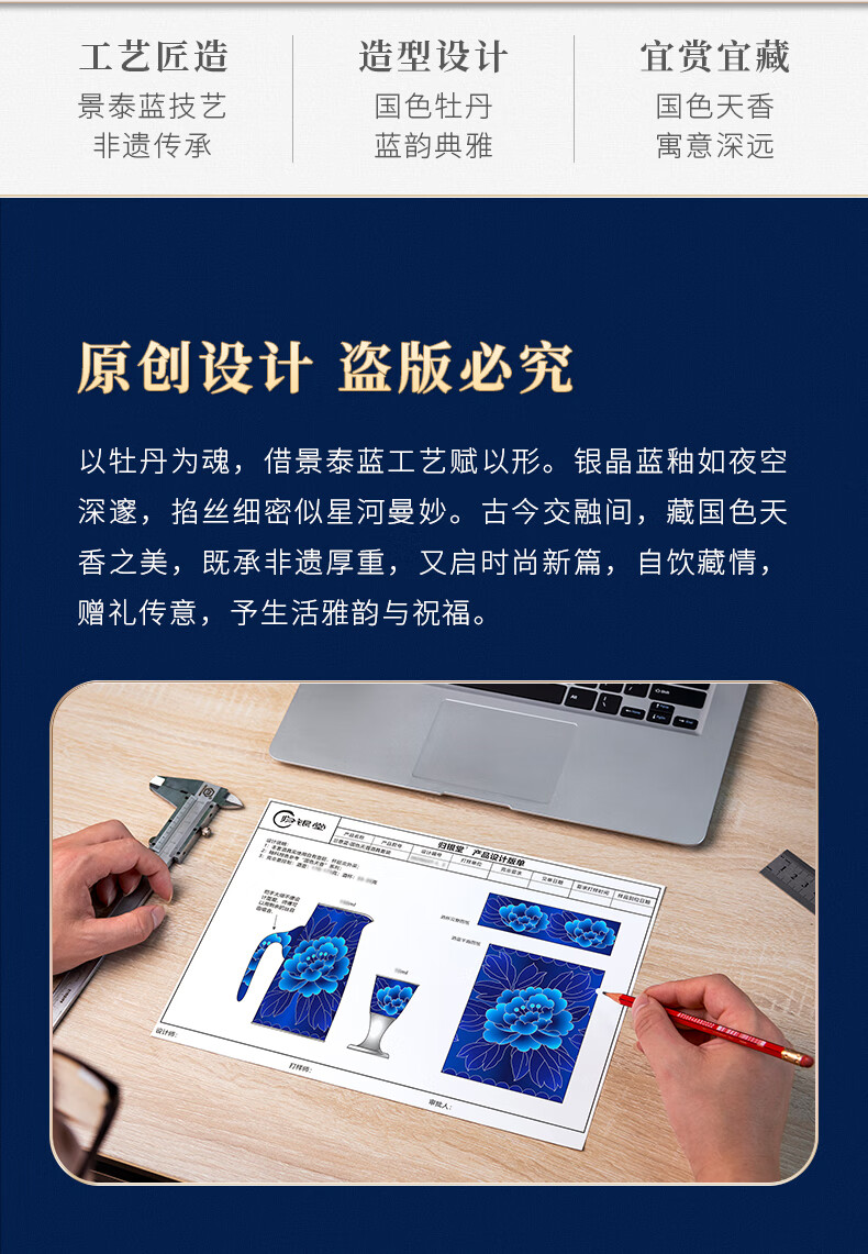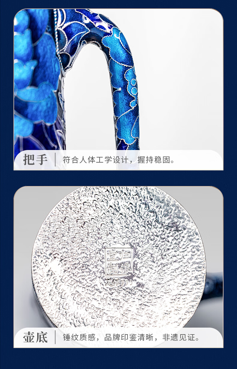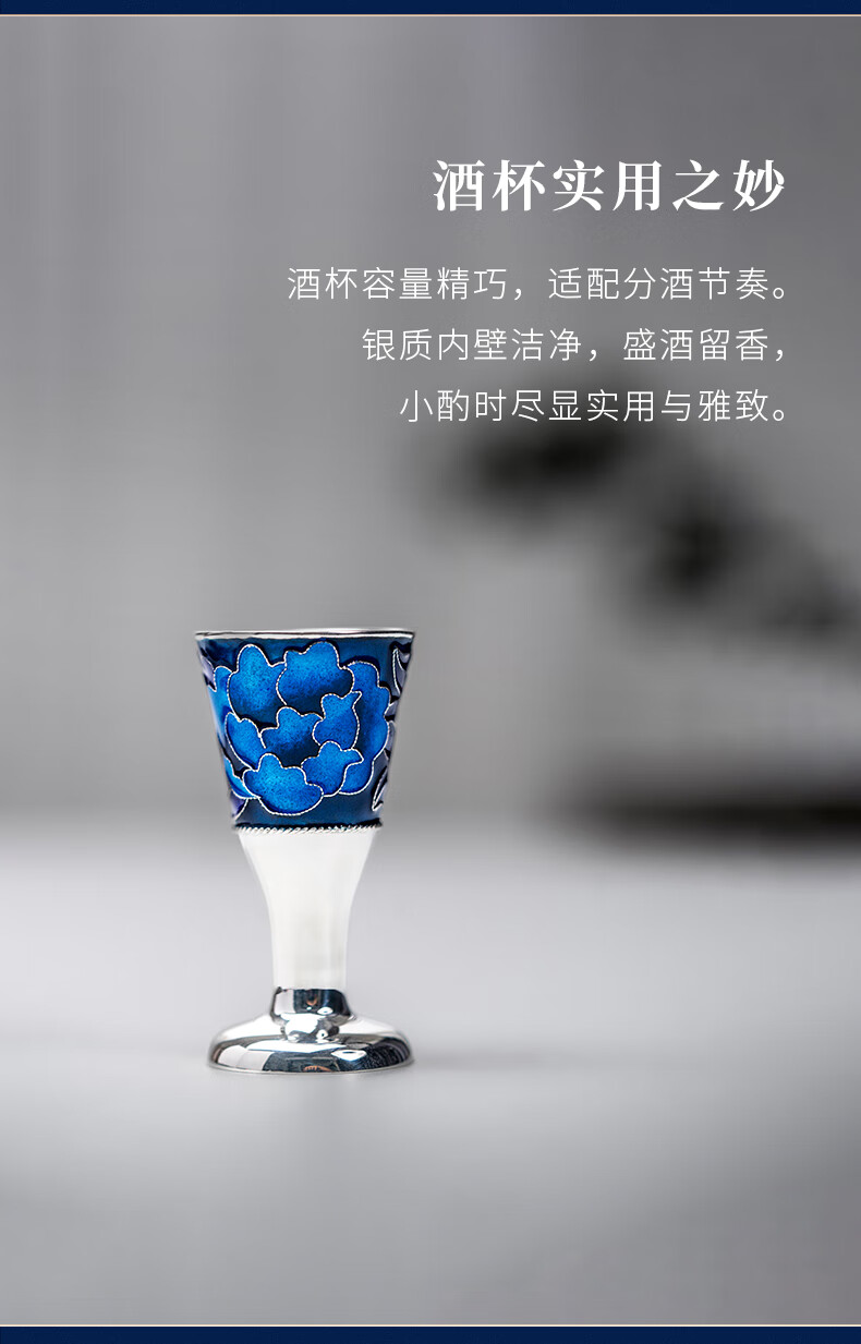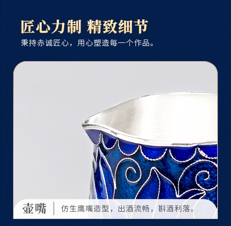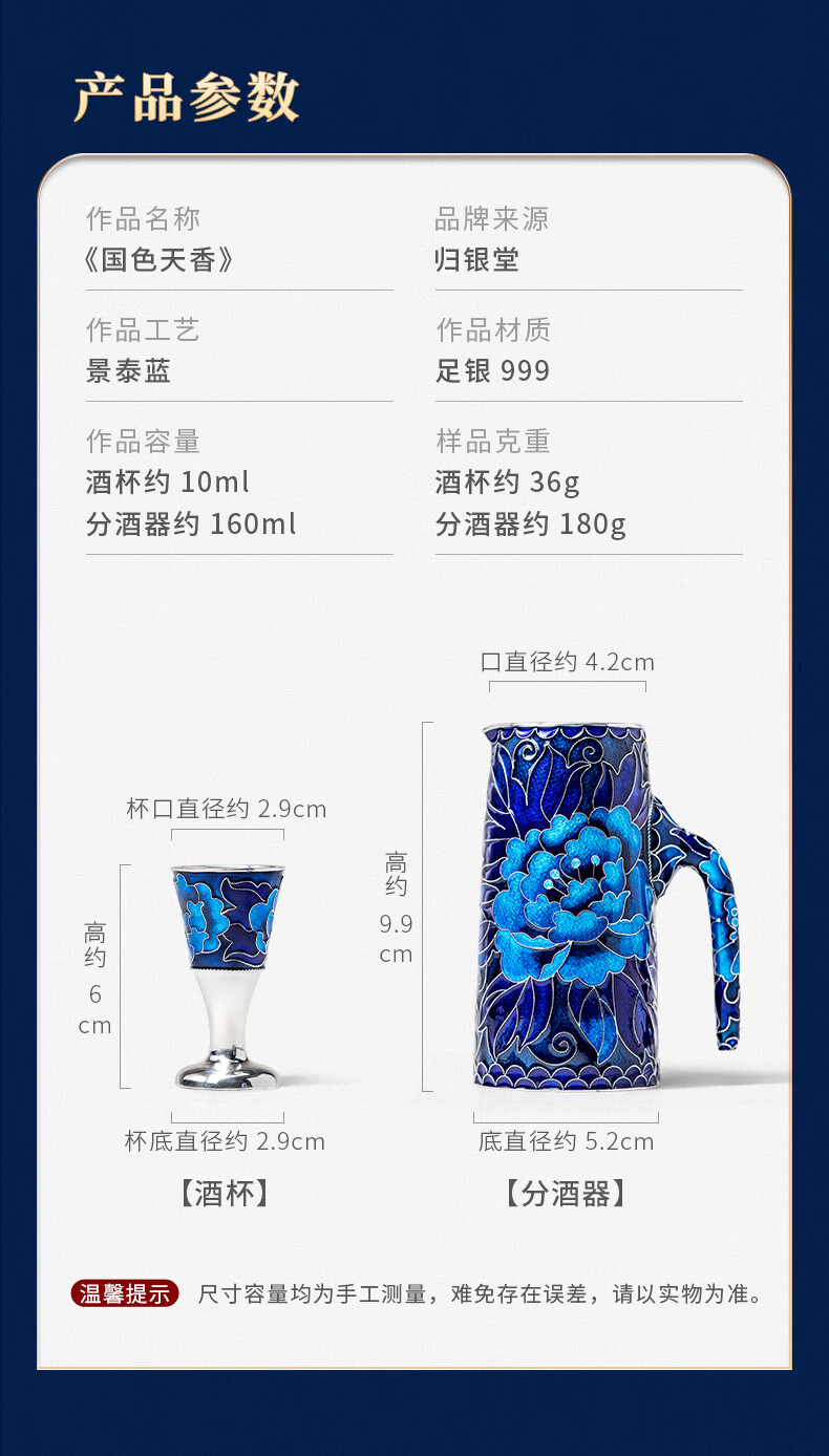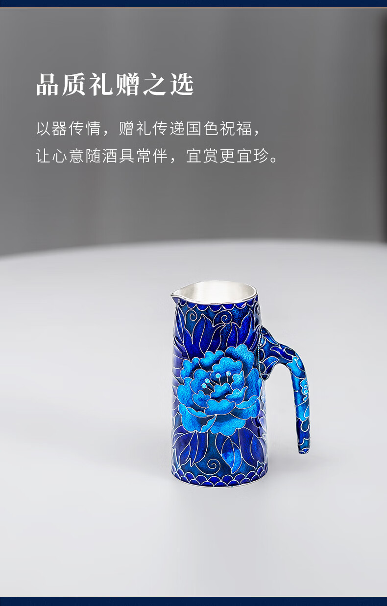 Guiyintang cloisonne filigree sterling silver wine set original peony pure silver 999 points wine set silverware high-end wine set gift set 1 pot 1 cup + certificate + gift box