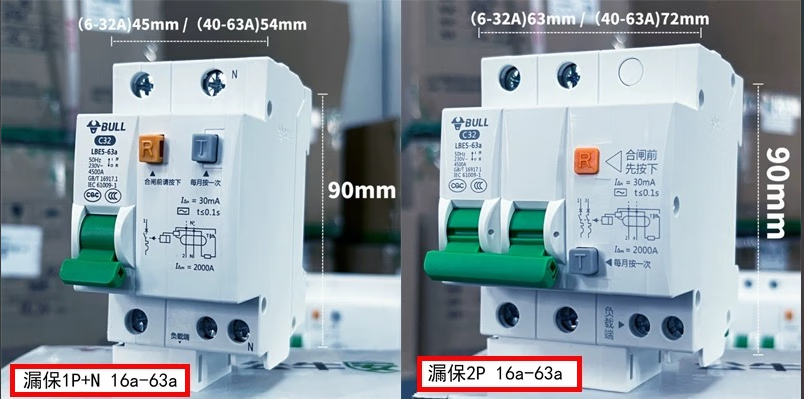 Bull 63a air switch with leakage protector 32a air conditioner water heater household 2p circuit breaker leakage protection air switch 32A 1P+N