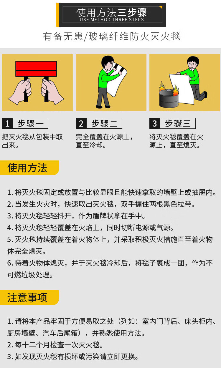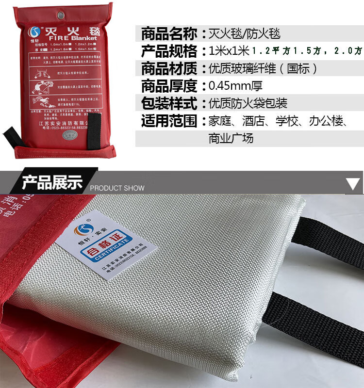 Fiberglass fire blanket fire extinguishing blanket fire certified catering kitchen household 2*2m national standard flame retardant cloth bagged 2m*2.m fire extinguishing blanket