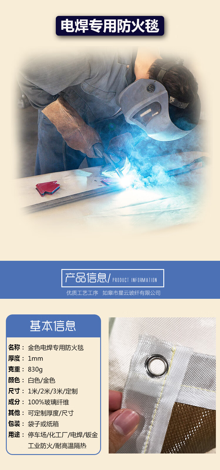 1.0mm thick welding blanket welding blanket fire extinguishing blanket golden yellow special for welding fire retardant and high temperature resistant 1mm golden yellow 1.5 meters 2 meters_temperature resistance 550 degrees